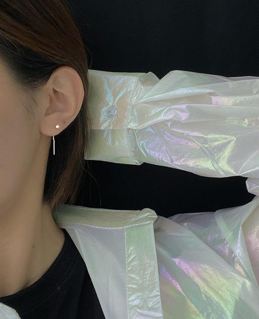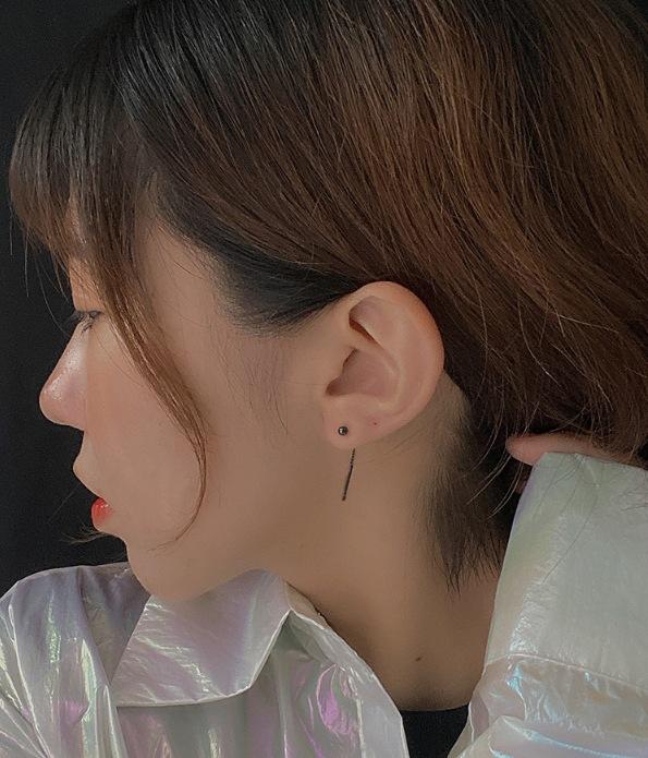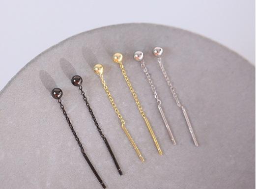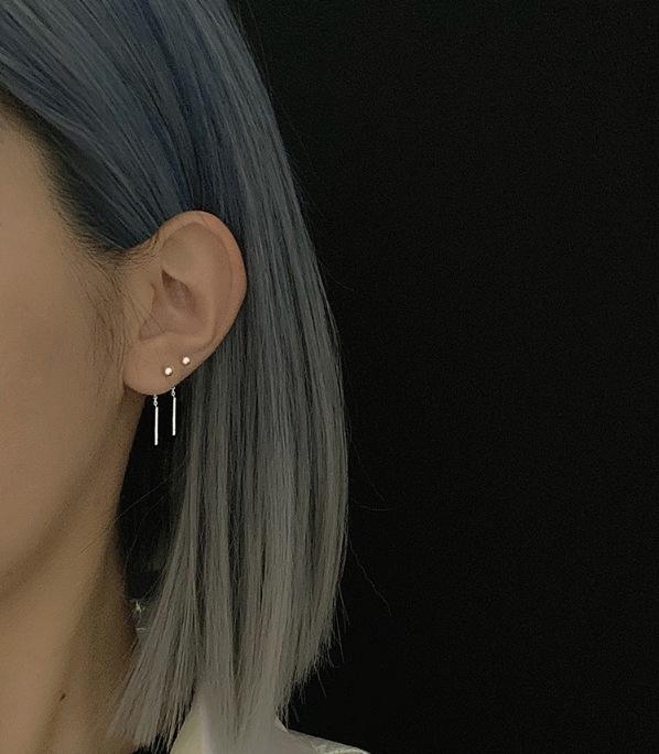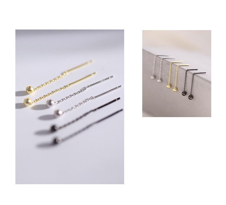 Aguja de Plata 925 Simple Frijol de Plata Lindo Pequeño Cuentas Redondas Línea de Oreja Agujeros de Oreja Aretes Aretes Palito para Oreja para Mujer