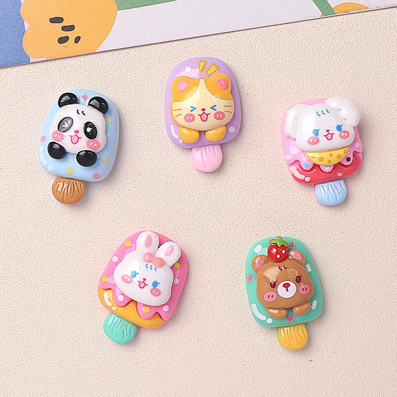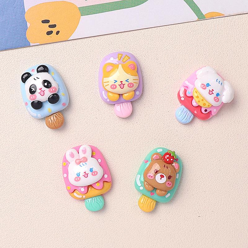 Accesorios de resina hechos a mano con forma de helado de cinco caras brillantes de dibujos animados para hacer tú mismo, horquillas para el pelo, carcasas para teléfono móvil, tazas de agua y sombreros.