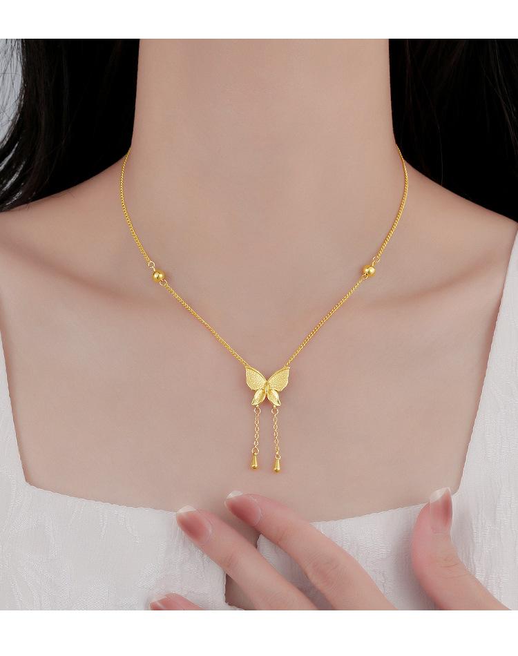 2024 Nuevo Collar de Borla de Mariposa Oro Elegante Colgante de Princesa Fugitiva Cadena de Clavícula de Lujo Ligero