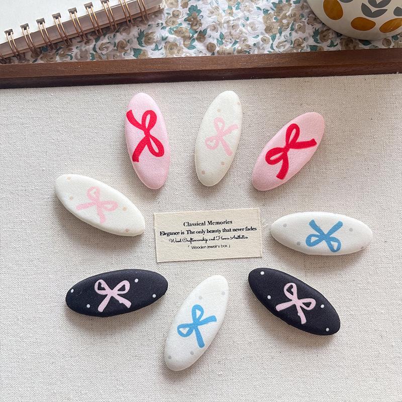 Nuevo Pasador de Pelo de Lazo de Tela Estilo Coreano Lazo Ovalado Estampado Clip para Flequillo Clip Lateral Clip de Pelo Accesorios para el Cabello