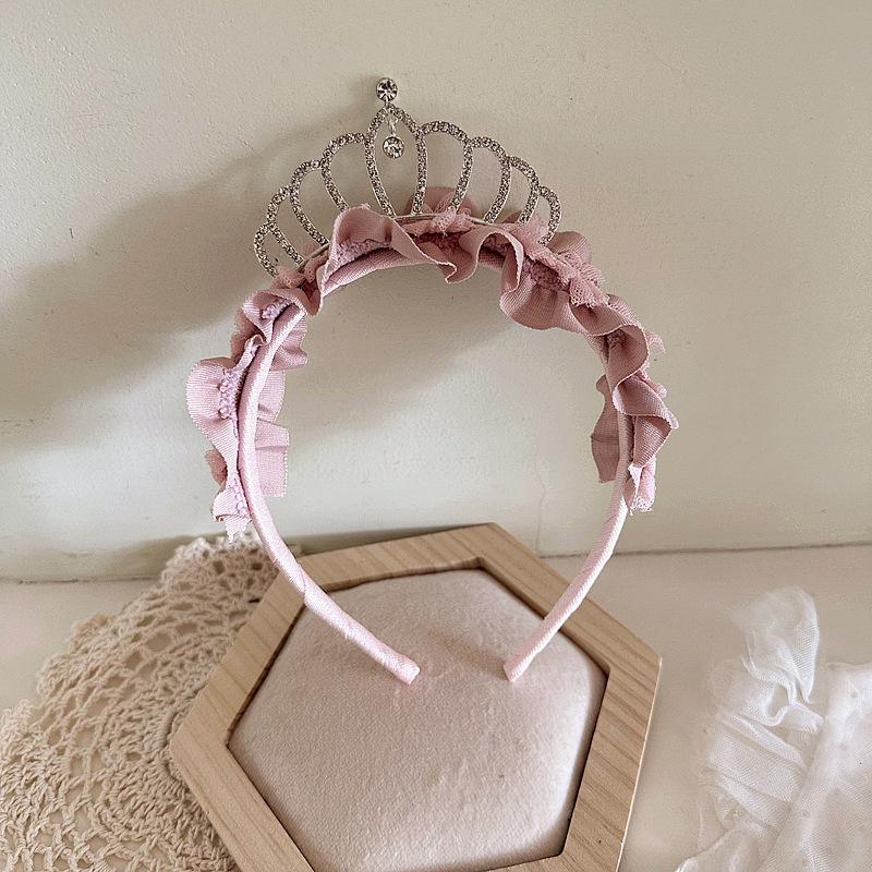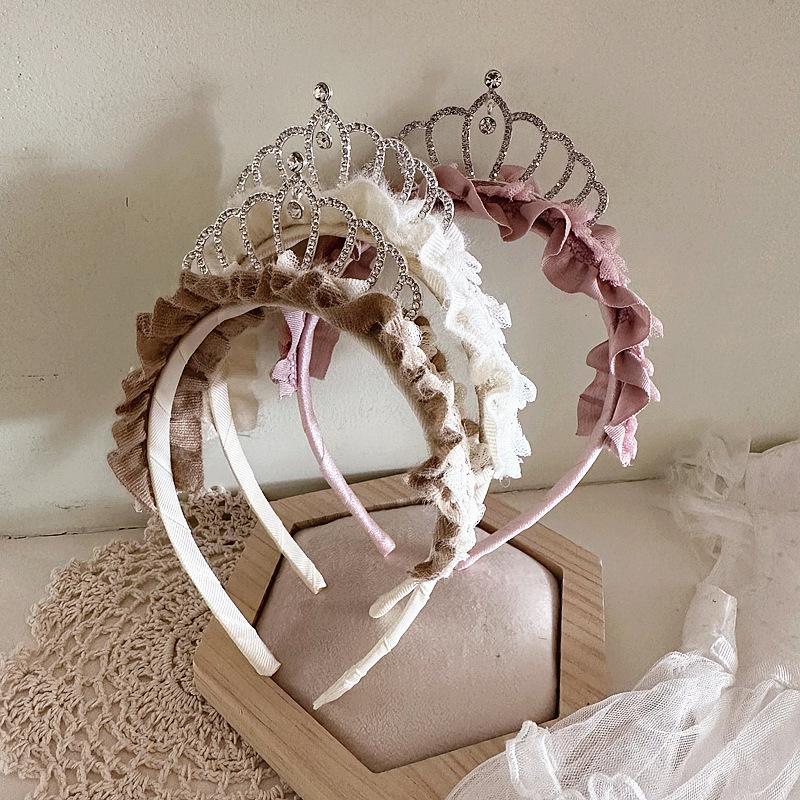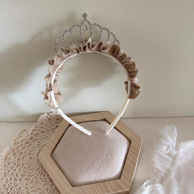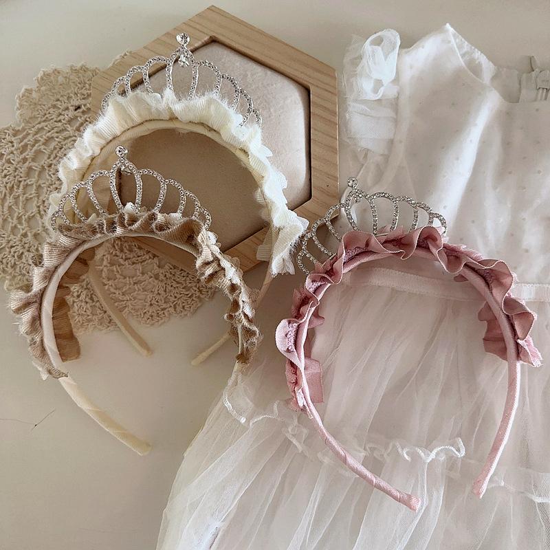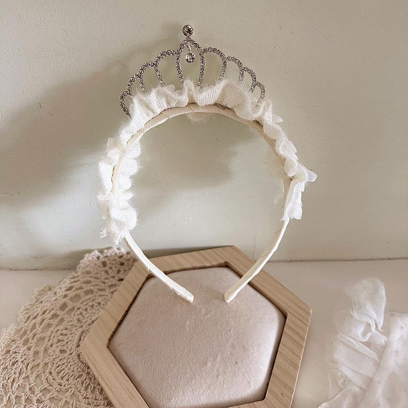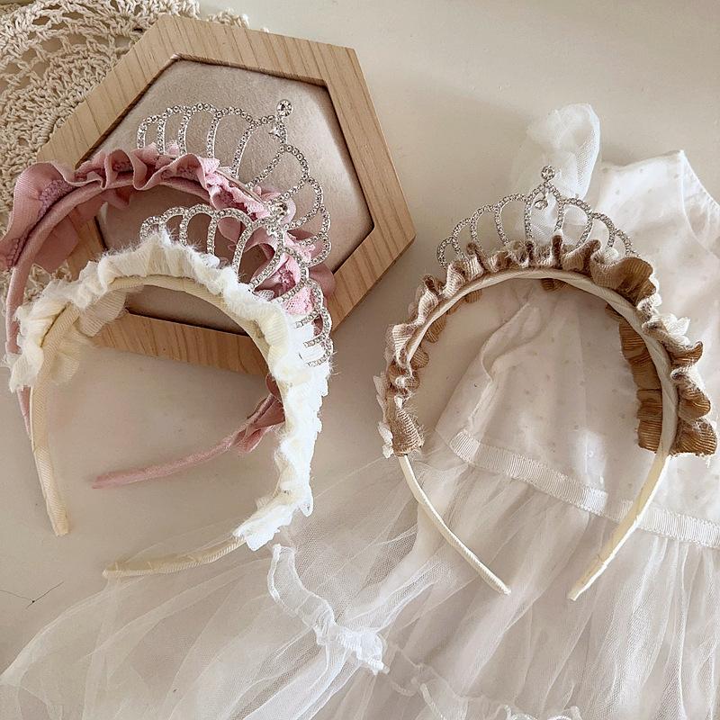 Nueva diadema de temperamento para niños estilo princesa Sweet Lady con corona de diamantes y encaje plisado, hebilla para la cabeza, accesorios para el cabello