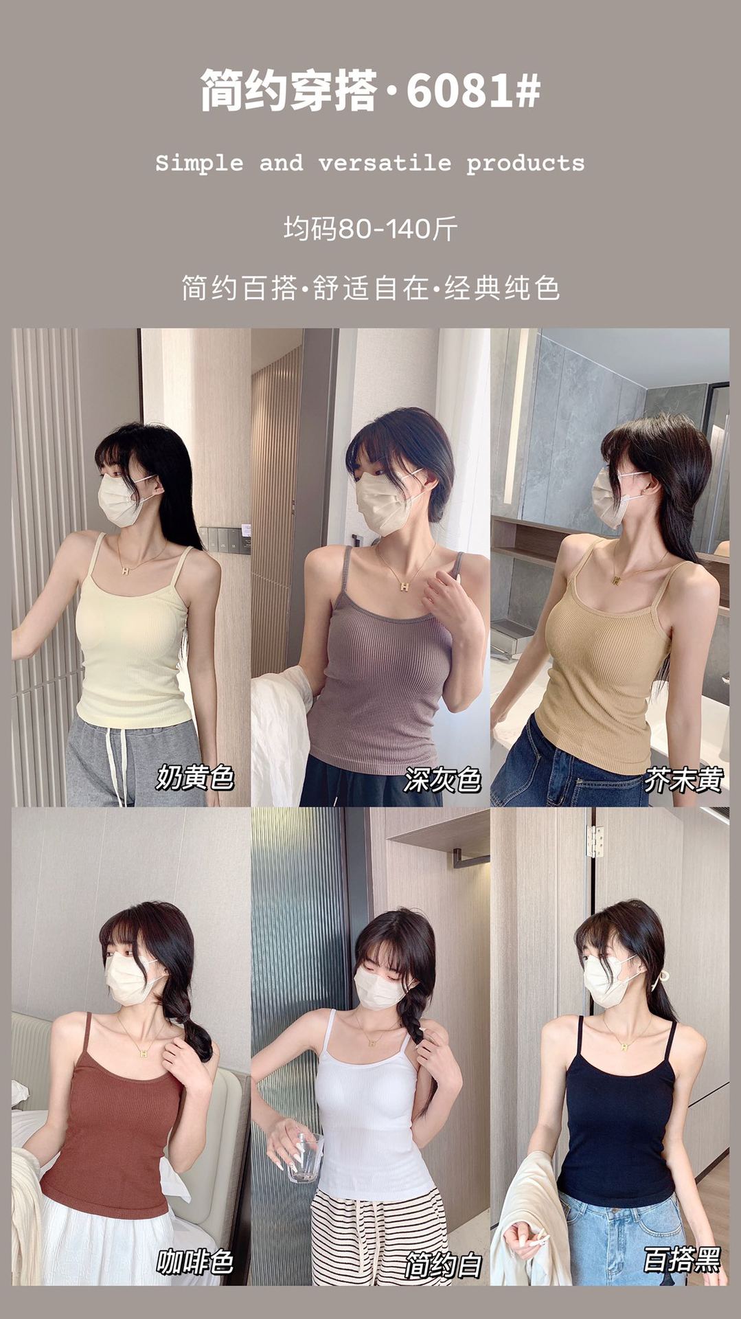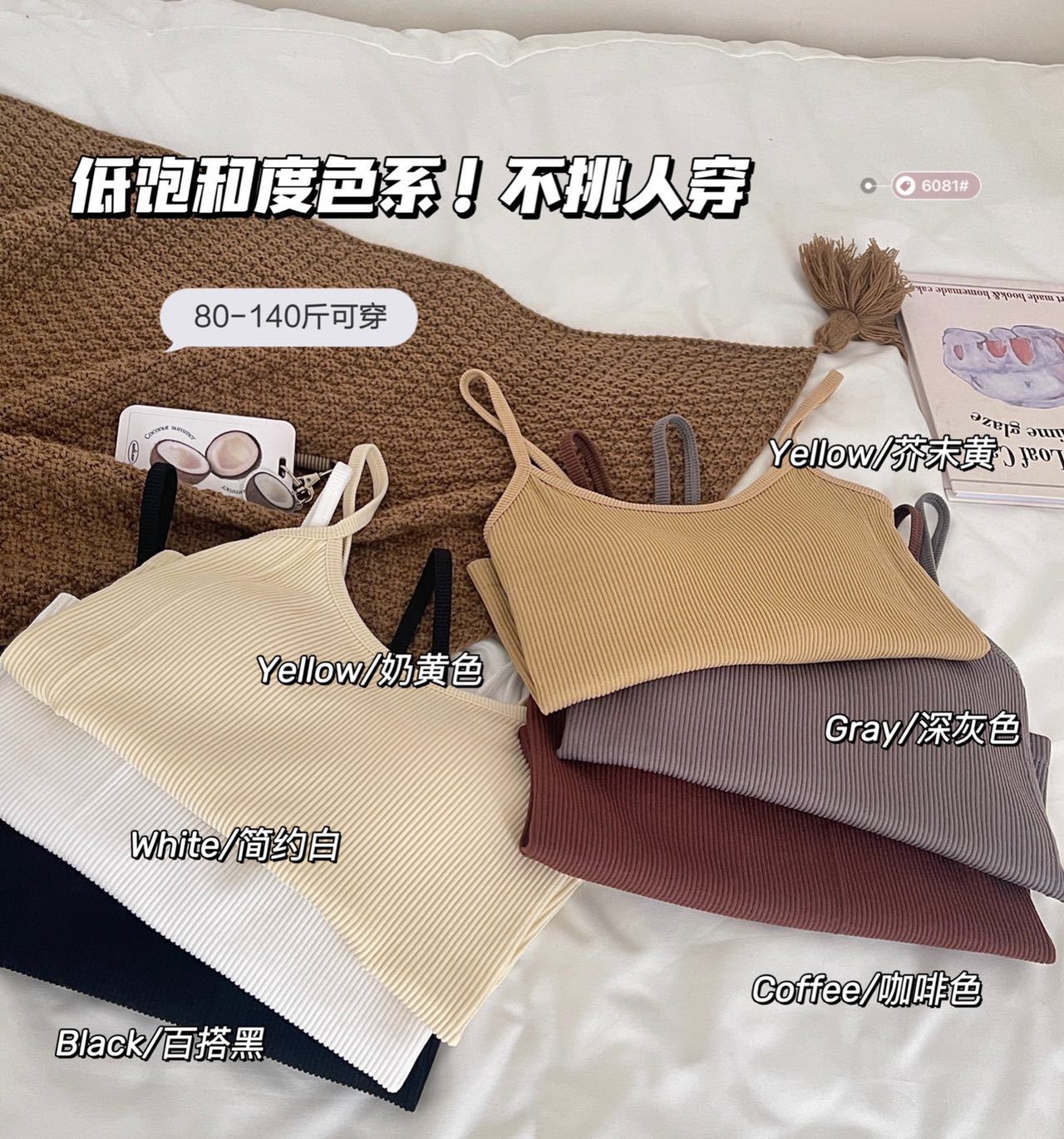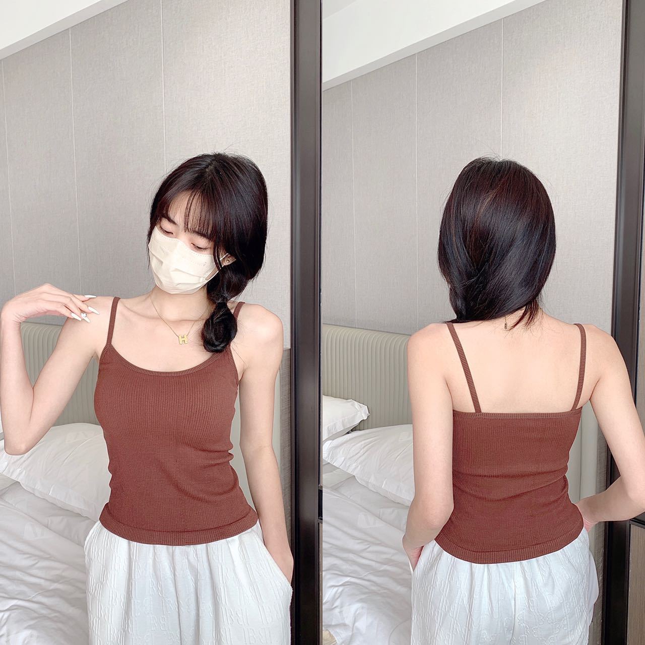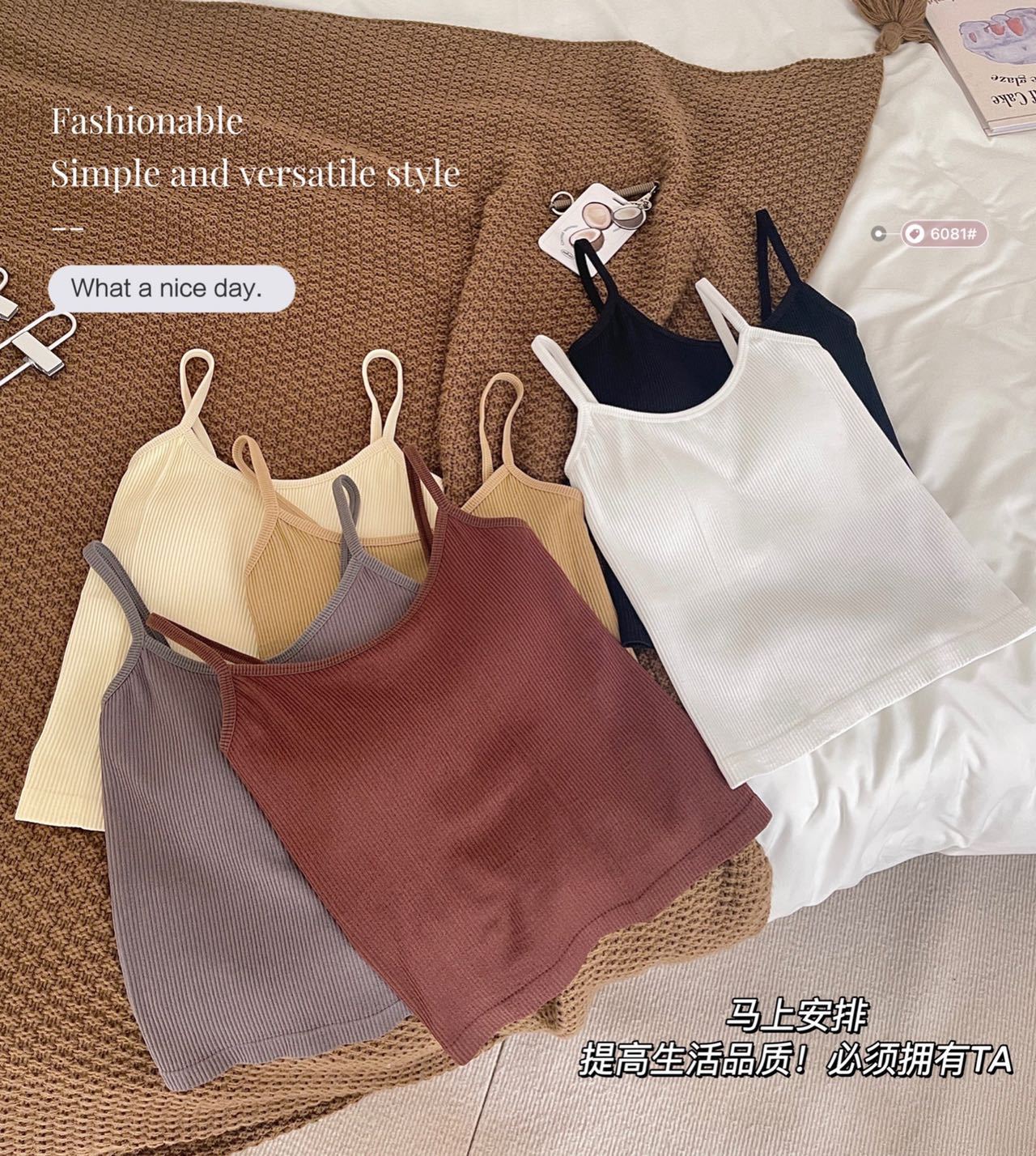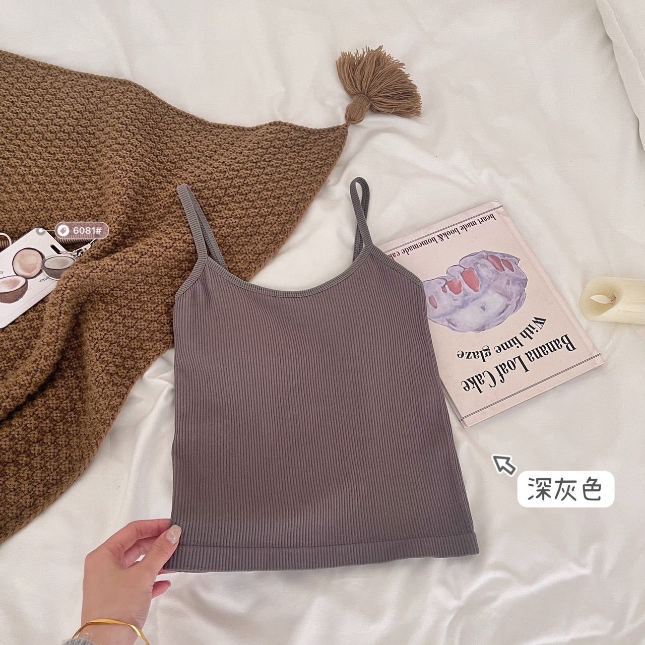 Camisola de hilo nueva de primavera y verano para mujer, de color liso, para uso interior y exterior, top cómodo, base para mujer.