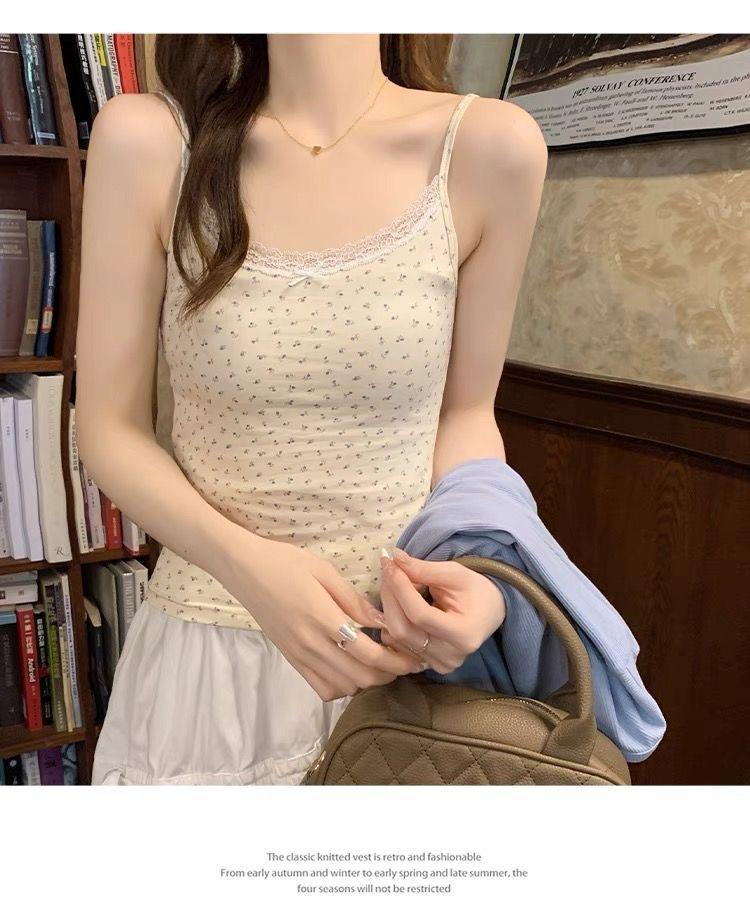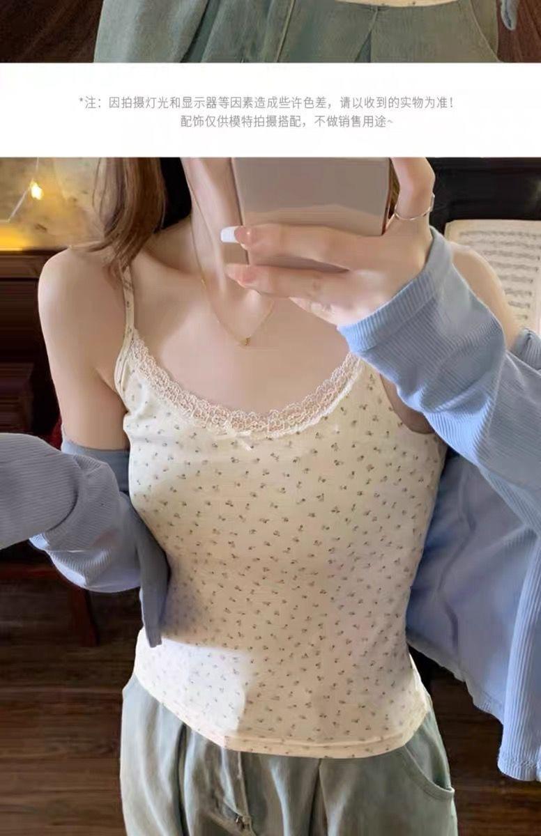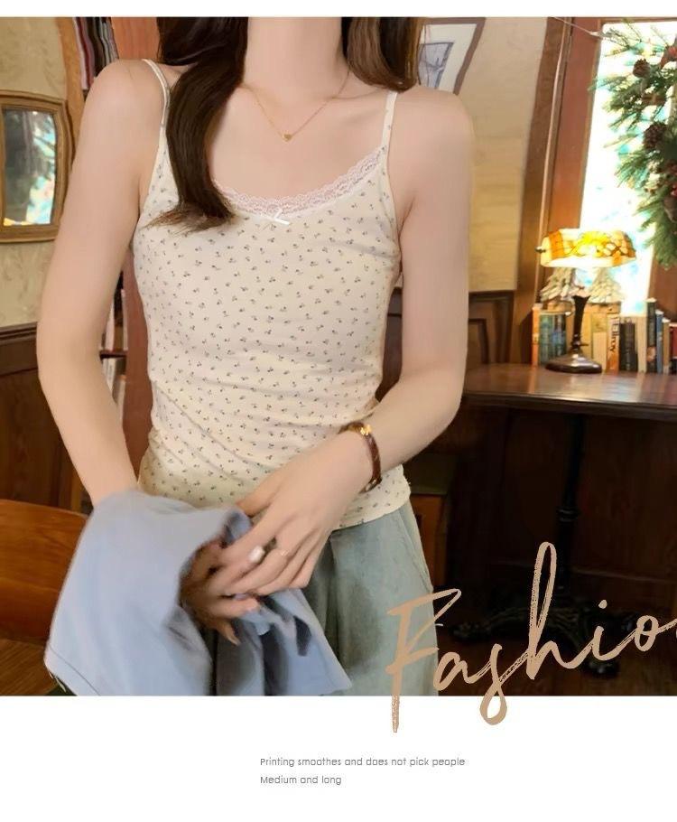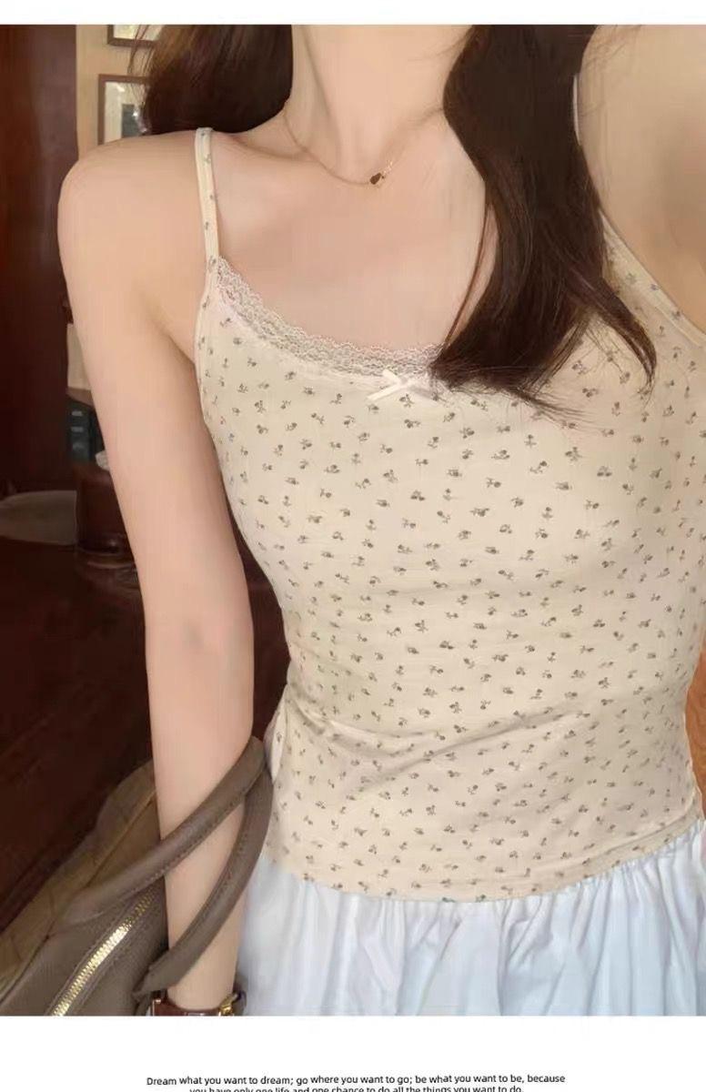 Camisola de encaje Pure Desire Sweet Girl para mujer, chaleco con almohadilla en el pecho, base interior entallada, top floral fino de verano