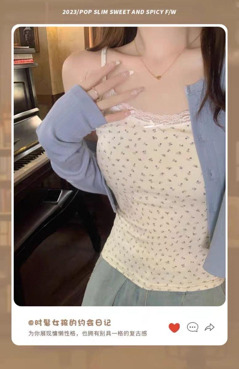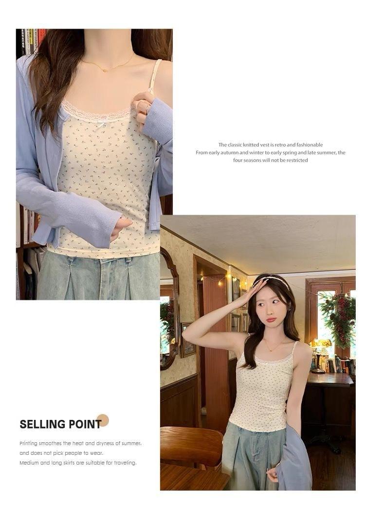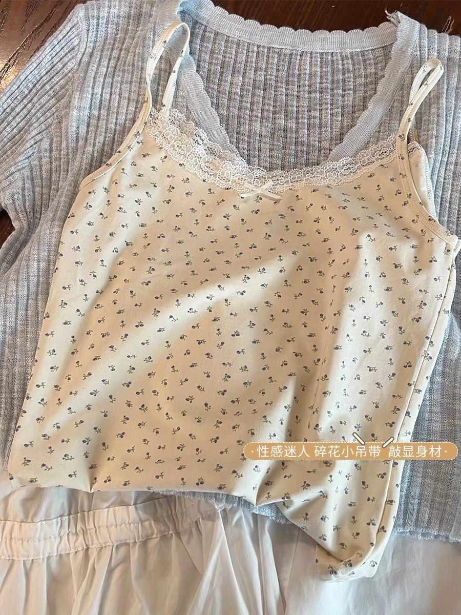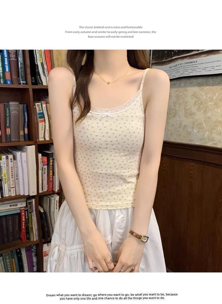 Camisola de encaje Pure Desire Sweet Girl para mujer, chaleco con almohadilla en el pecho, base interior entallada, top floral fino de verano