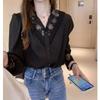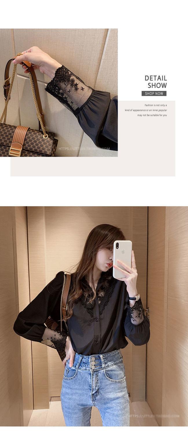 Camisa de encaje con parte inferior para mujer, primavera y otoño, nuevo diseño, estilo occidental, con costuras de gasa.