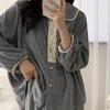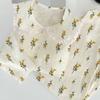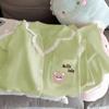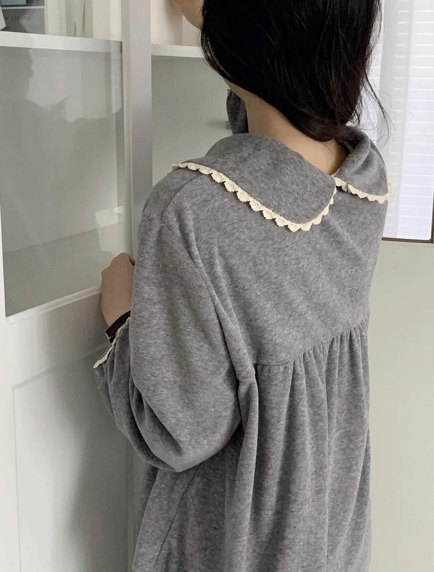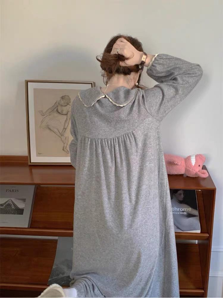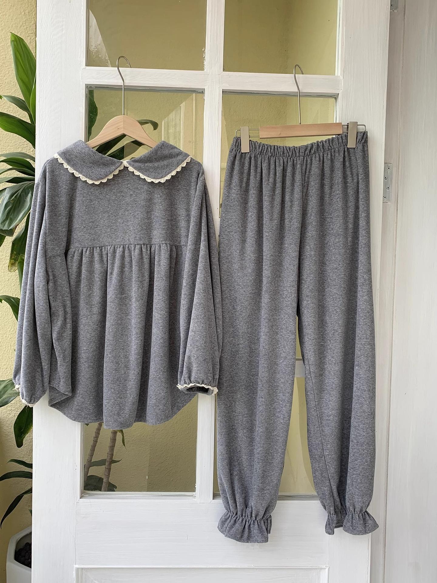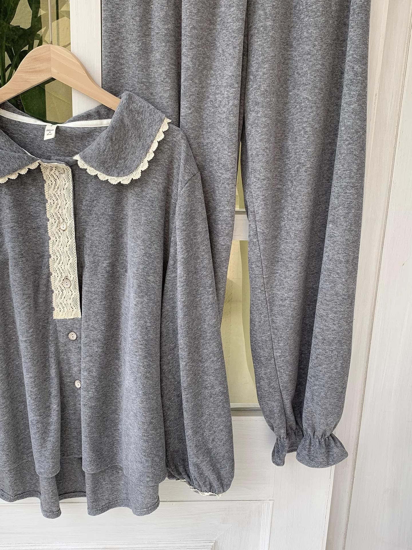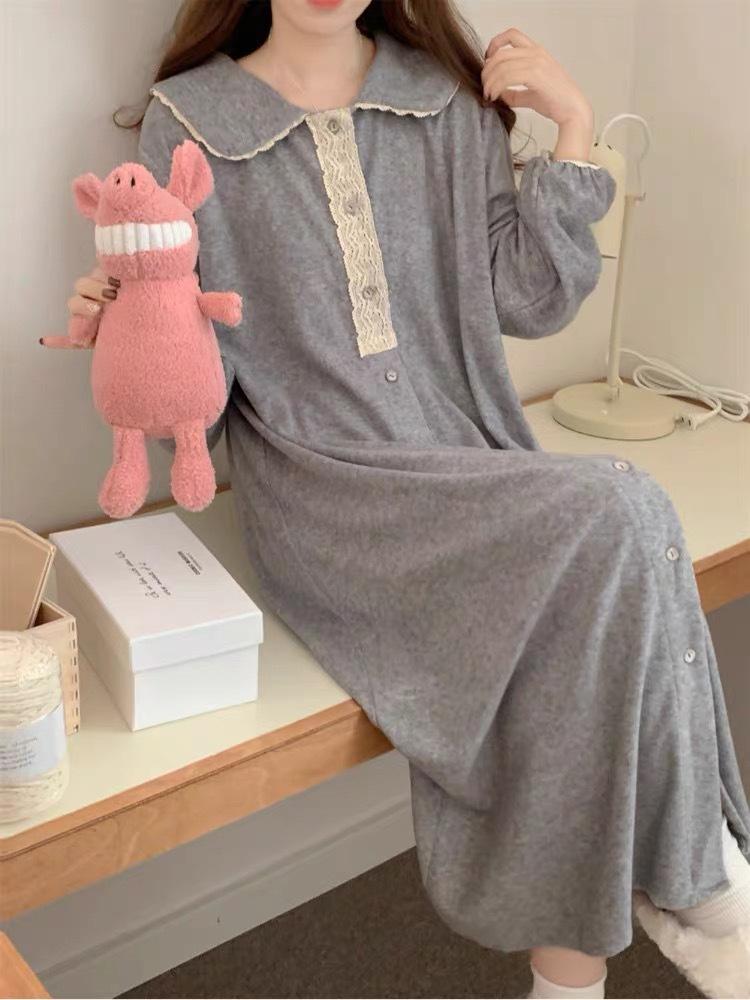 Pijama de estilo coreano para mujer, cuello de muñeca, borde de encaje, lindo para niña, manga larga, pantalones, cárdigan, algodón artificial engrosado, traje para estar en casa