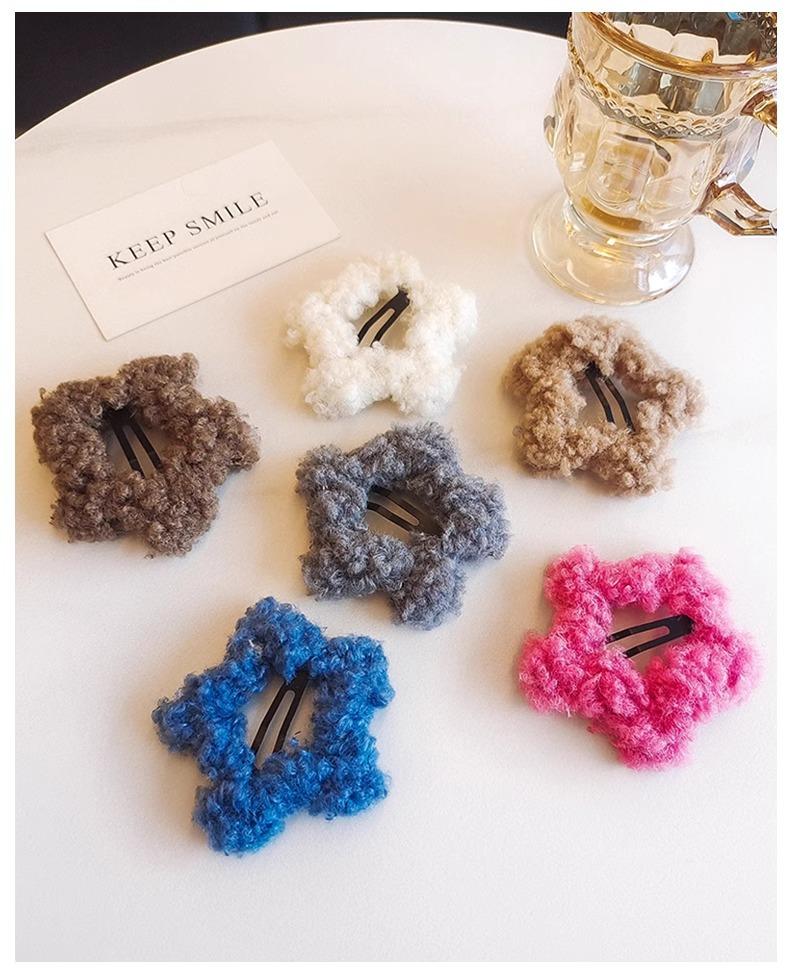 Horquilla de estrella de peluche para otoño e invierno, horquilla para niña, flequillo, pinza para la frente femenina, pinza para el pelo roto, pinza BB, lindo tocado con pinza lateral