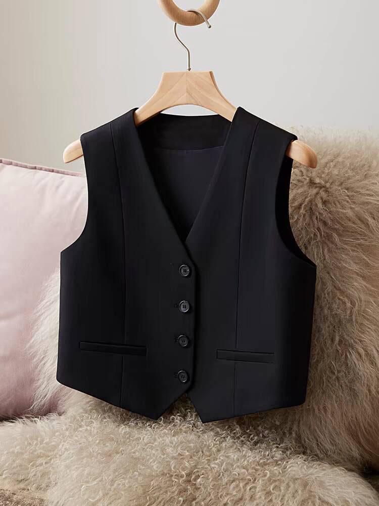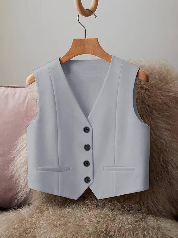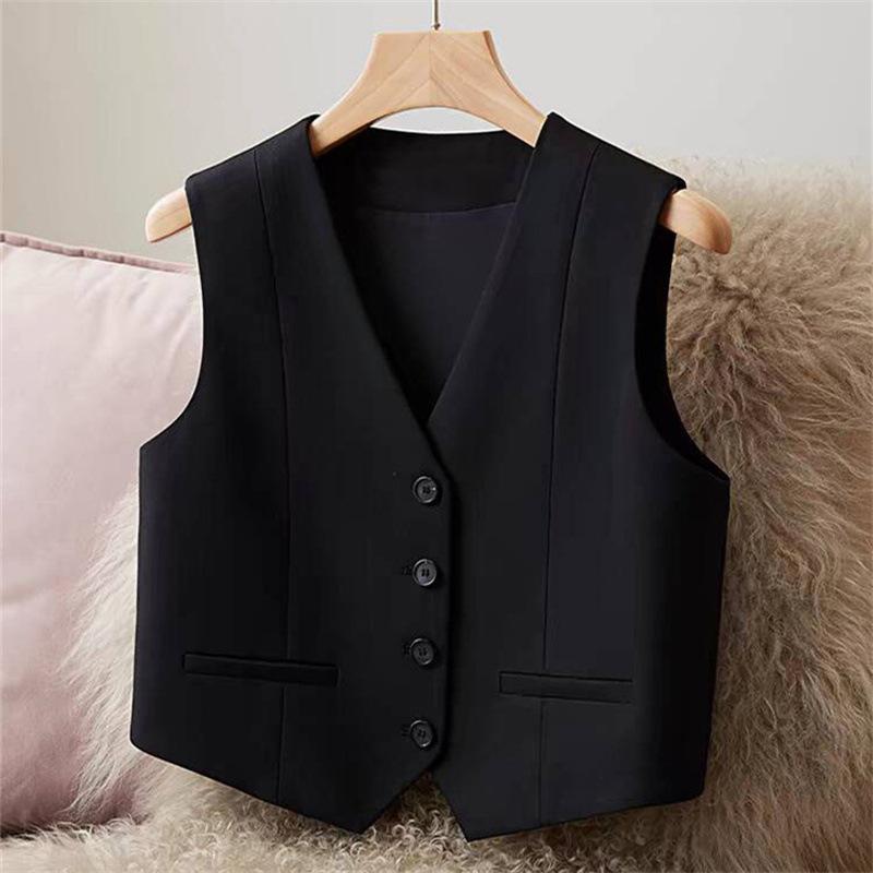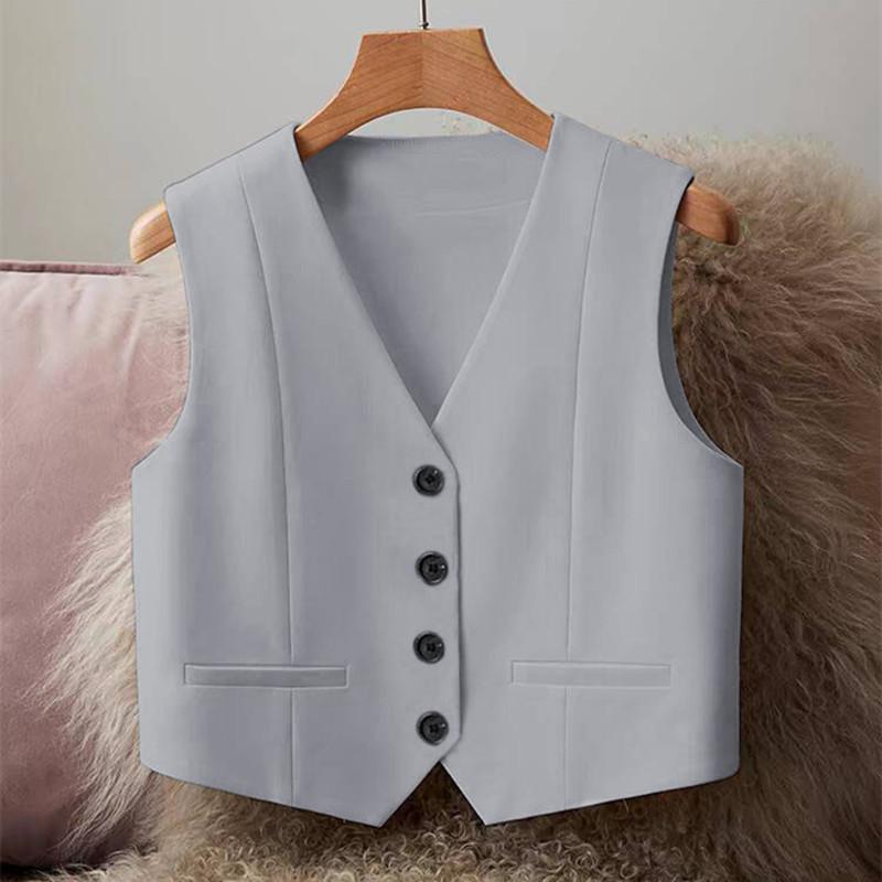 Chaleco de Traje Chaleco para Mujer Ropa Exterior 2025 Otoño Nuevo Rojo Gris Slim Sin Mangas Corto Cintura Chaqueta