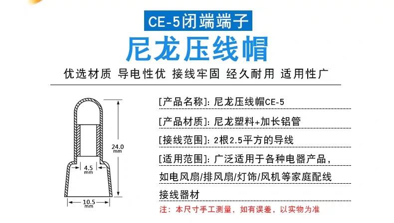Terminal de engarce de nailon retardante de llama CE-5X con envío gratuito, terminal de engarce rápido, cableado cerrado.