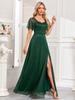 Vestido de noche elegante de tul brillante con cuello cuadrado y manga corta para mujer, de 24 calidades, con abertura lateral y corte en A.