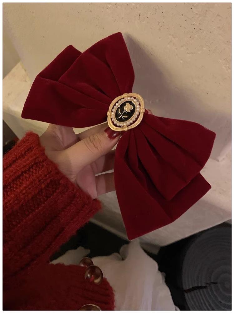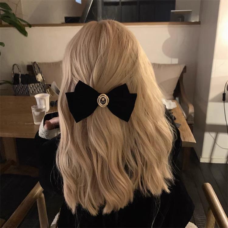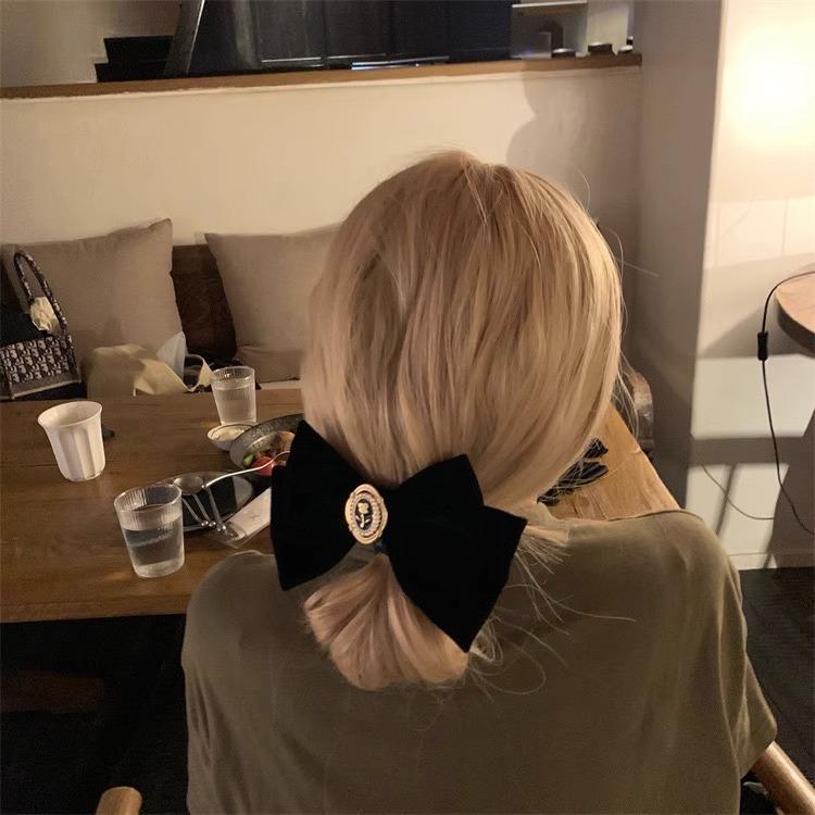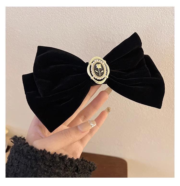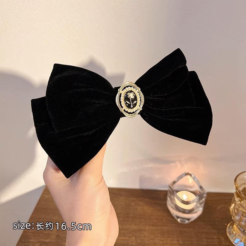 Pinza para el cabello de lazo Rosa de Terciopelo Negro pinza de resorte accesorios para el cabello lujo ligero pinza superior Alto Sentido parte trasera de la cabeza pinza para el cabello femenina