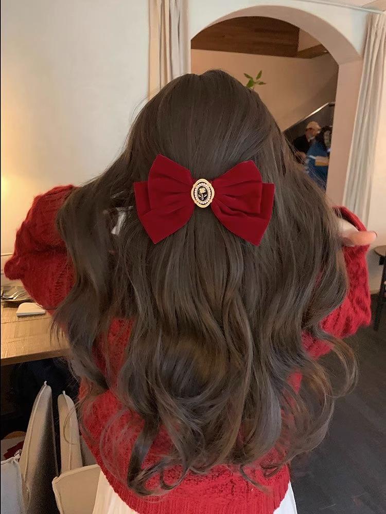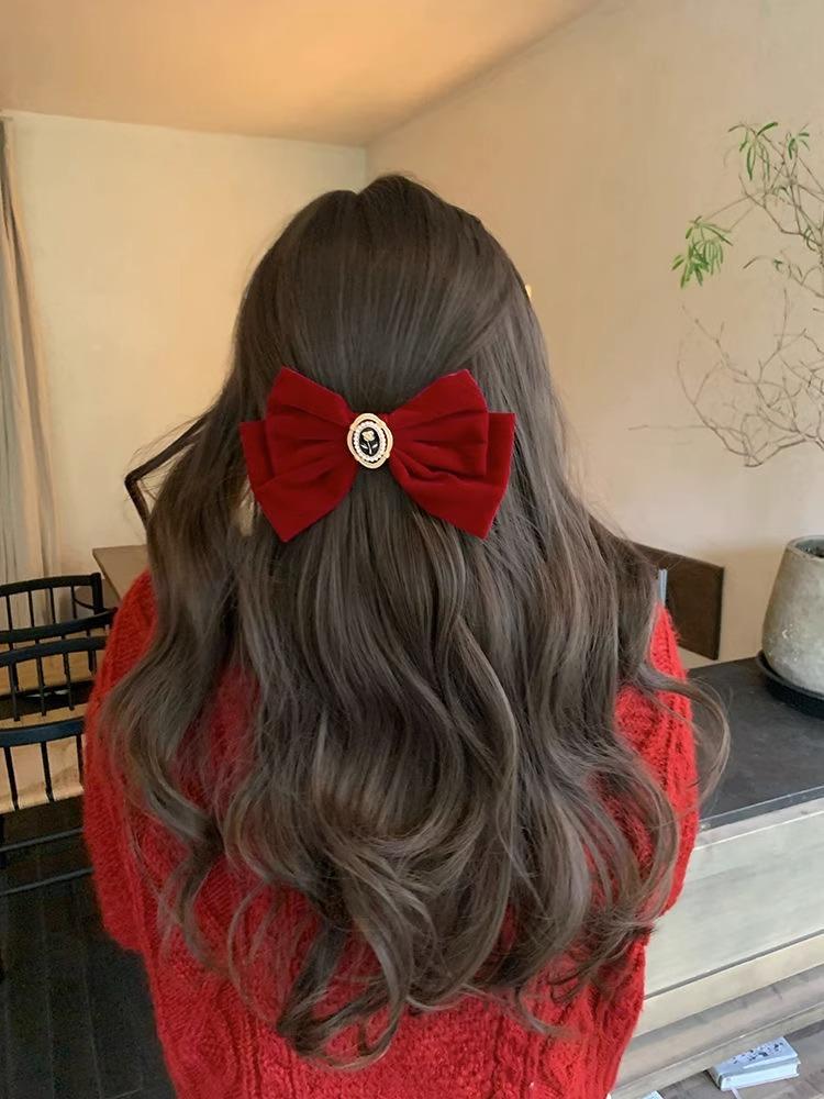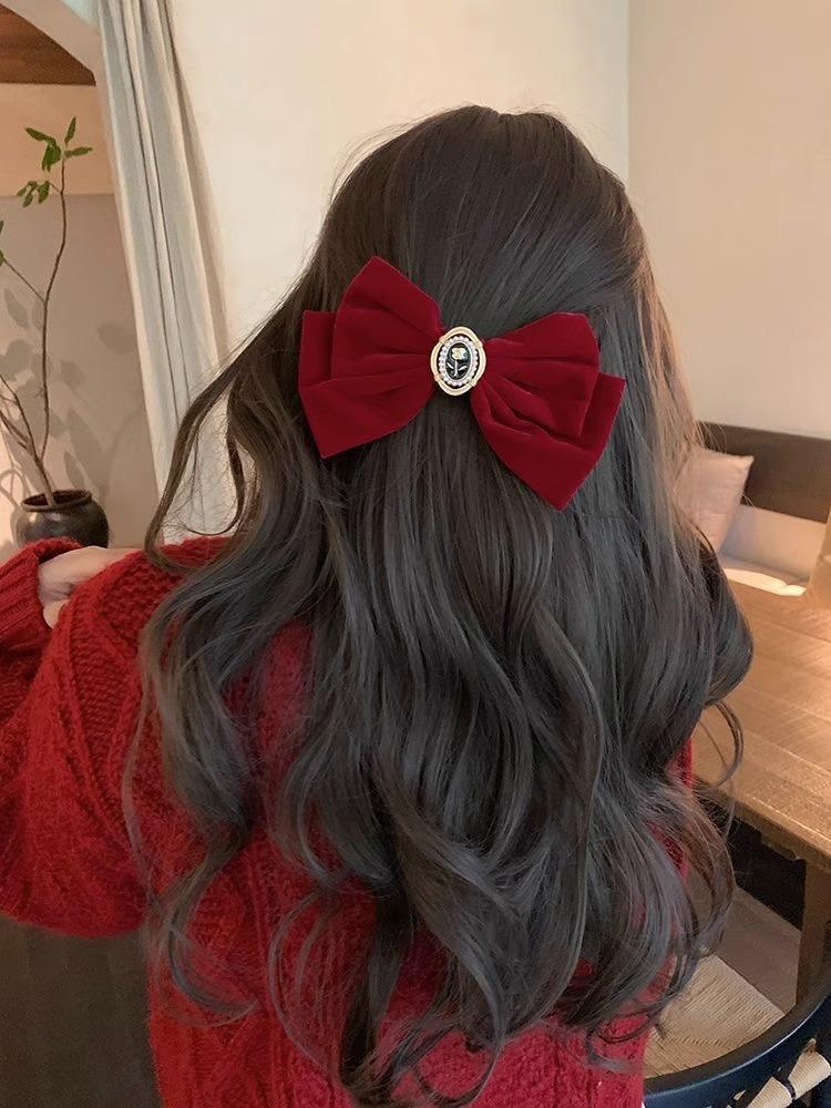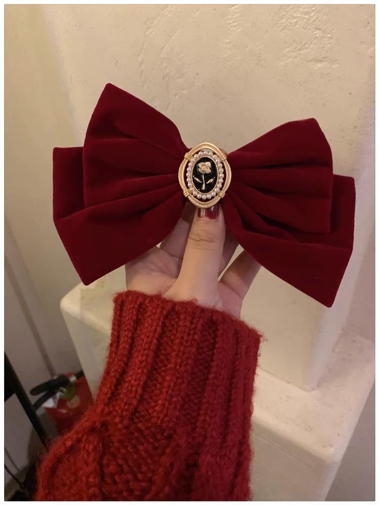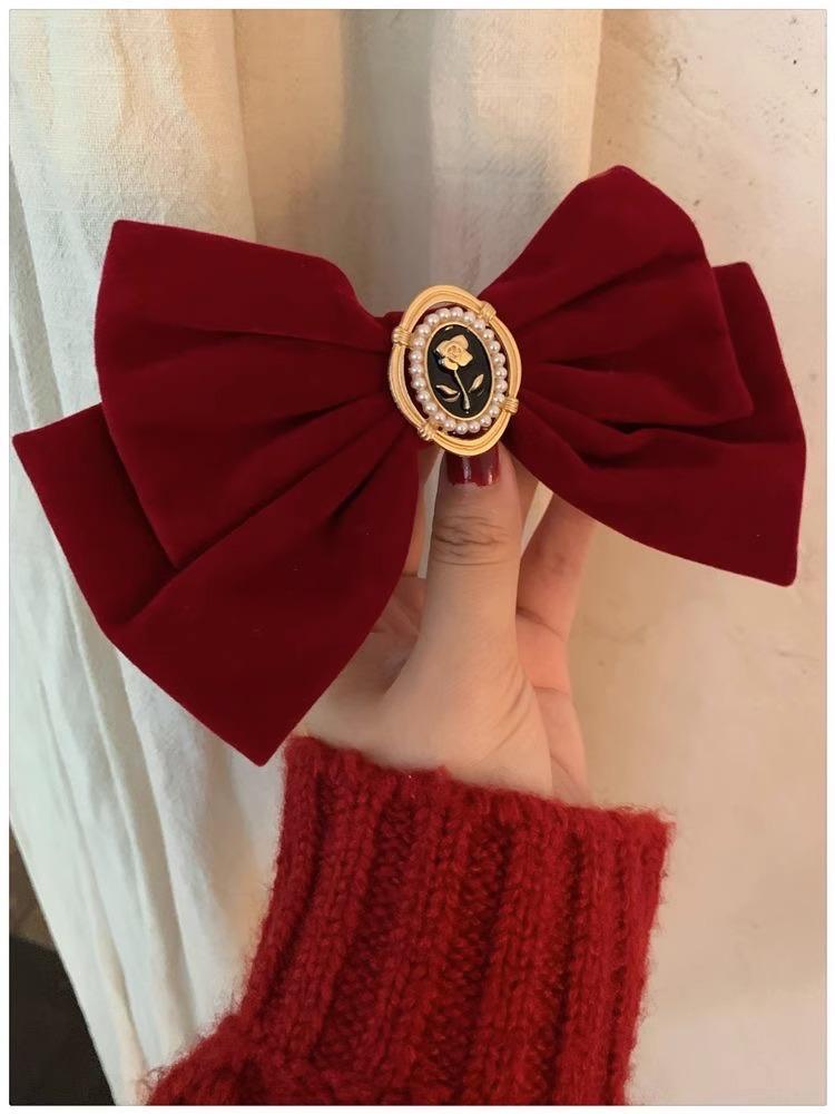 Pinza para el cabello de lazo Rosa de Terciopelo Negro pinza de resorte accesorios para el cabello lujo ligero pinza superior Alto Sentido parte trasera de la cabeza pinza para el cabello femenina