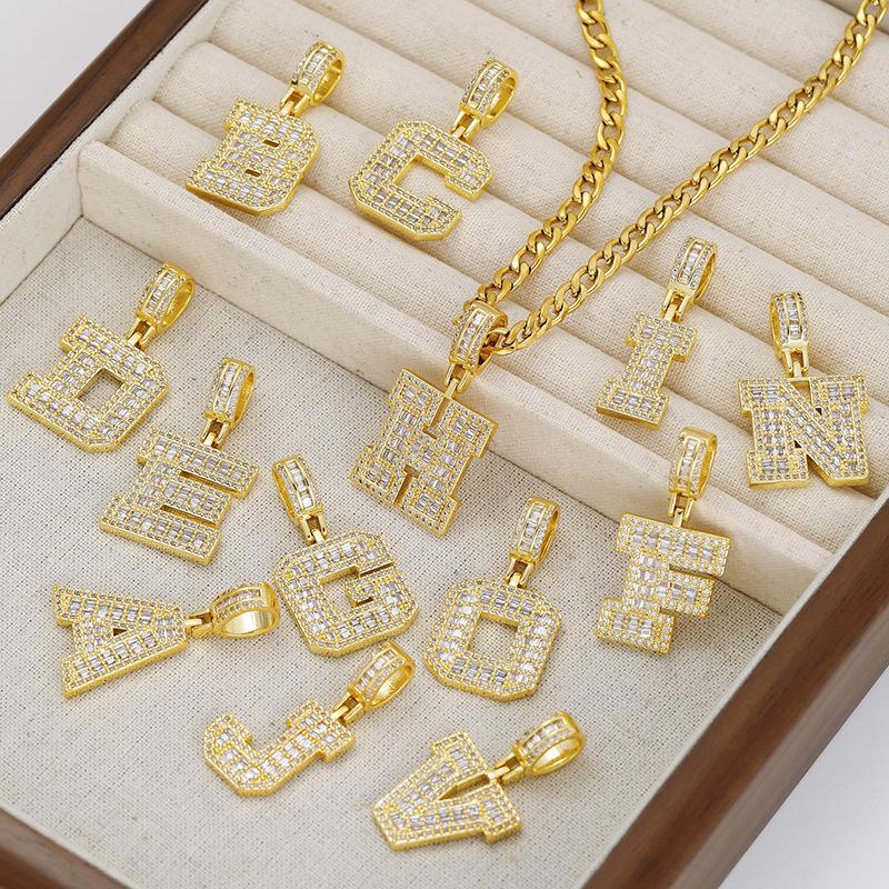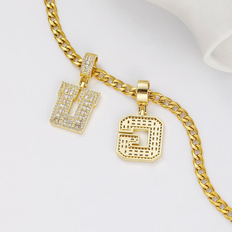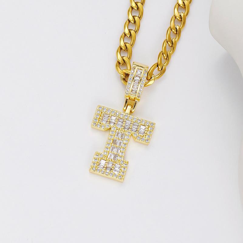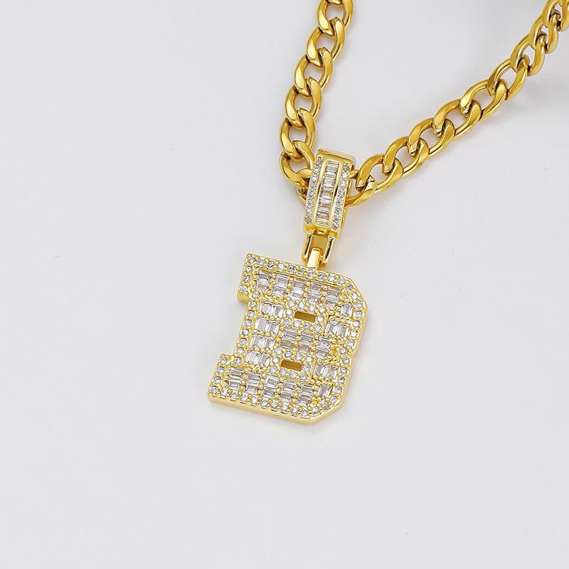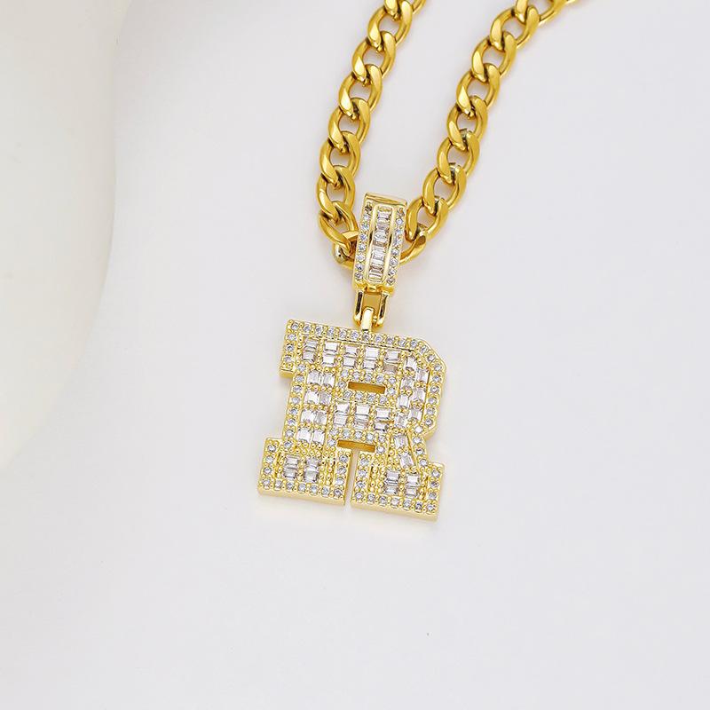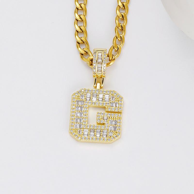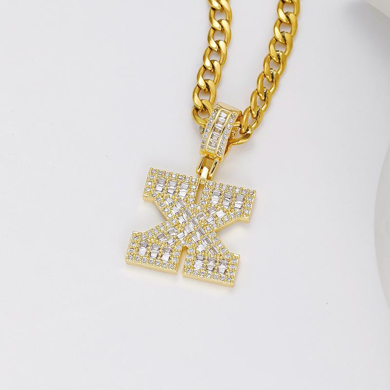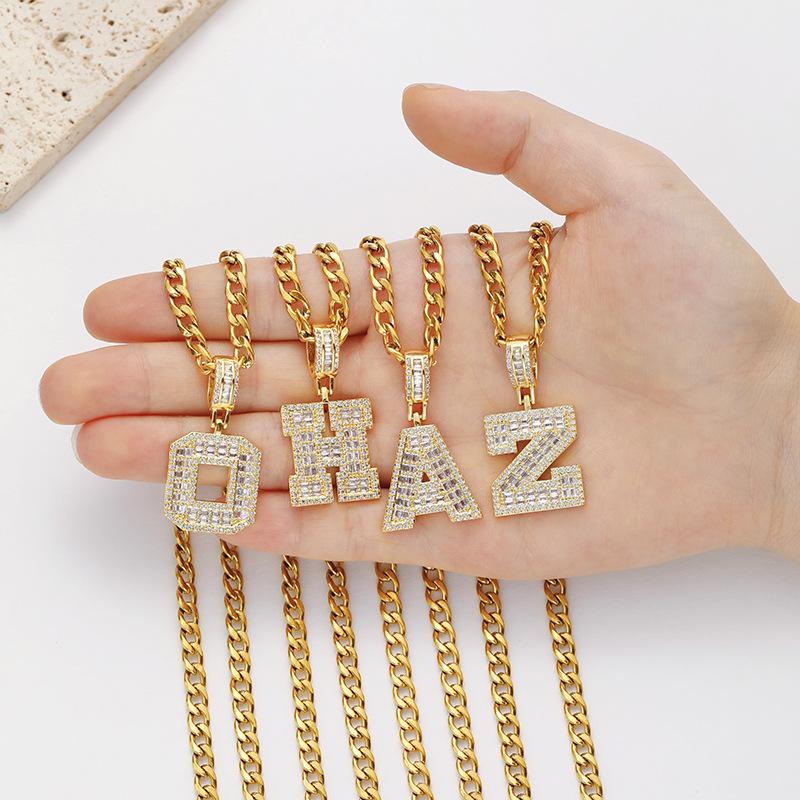 Collar Transfronterizo de Venta Caliente con Circonita Incrustada en Cobre Personalizado Hip-Hop t Colgante de 26 Letras Inglesas Cadena de Clavícula Ins