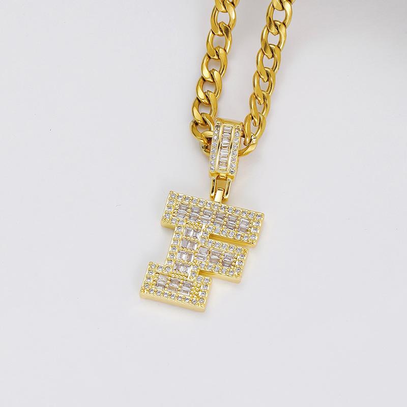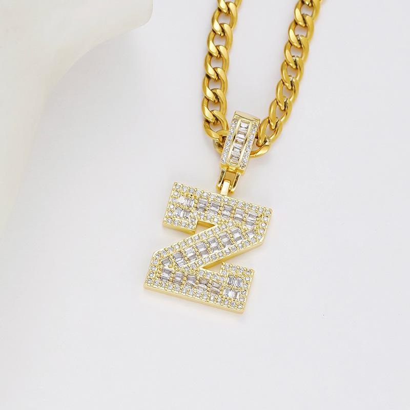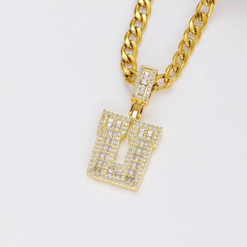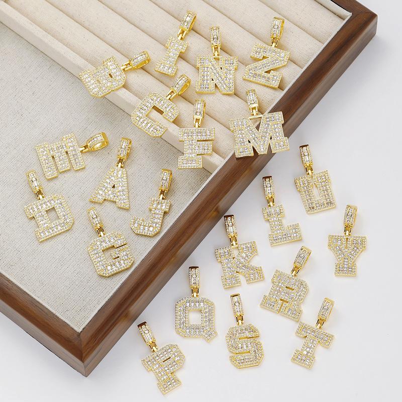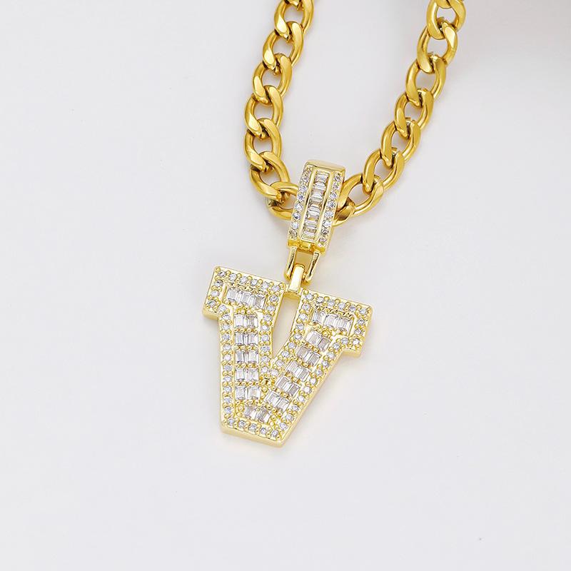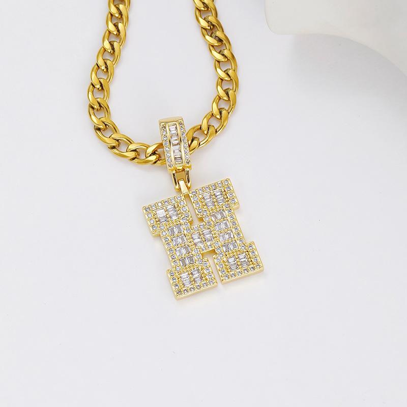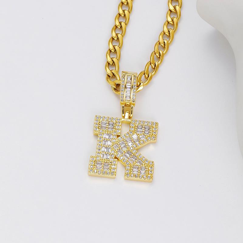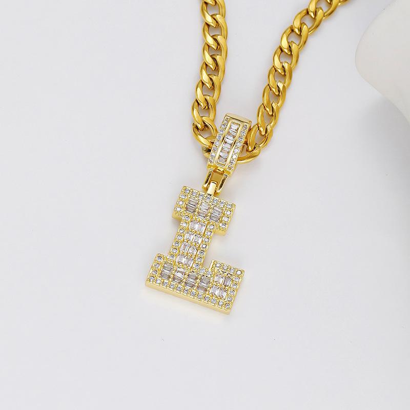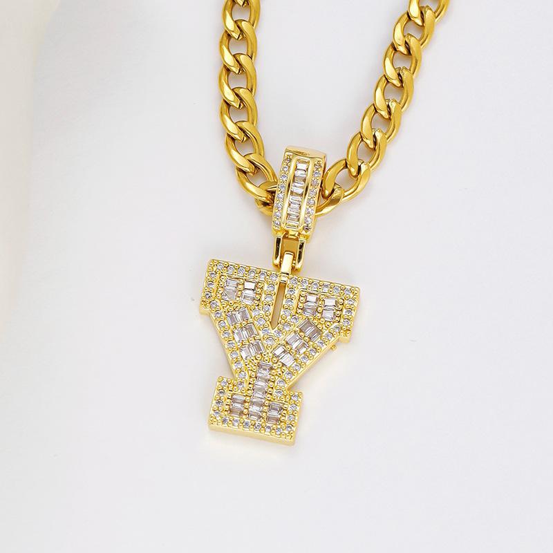 Collar Transfronterizo de Venta Caliente con Circonita Incrustada en Cobre Personalizado Hip-Hop t Colgante de 26 Letras Inglesas Cadena de Clavícula Ins