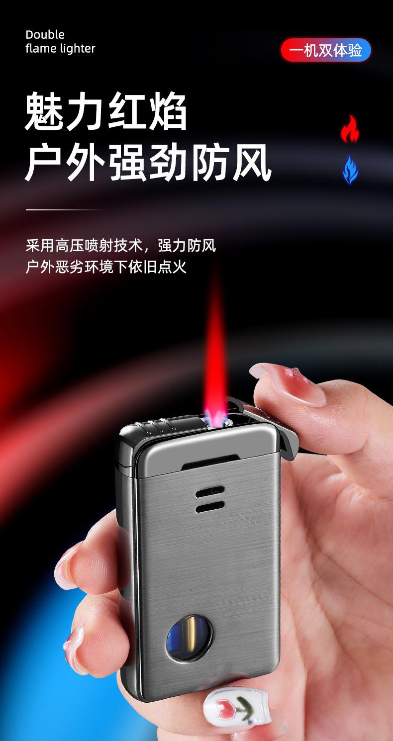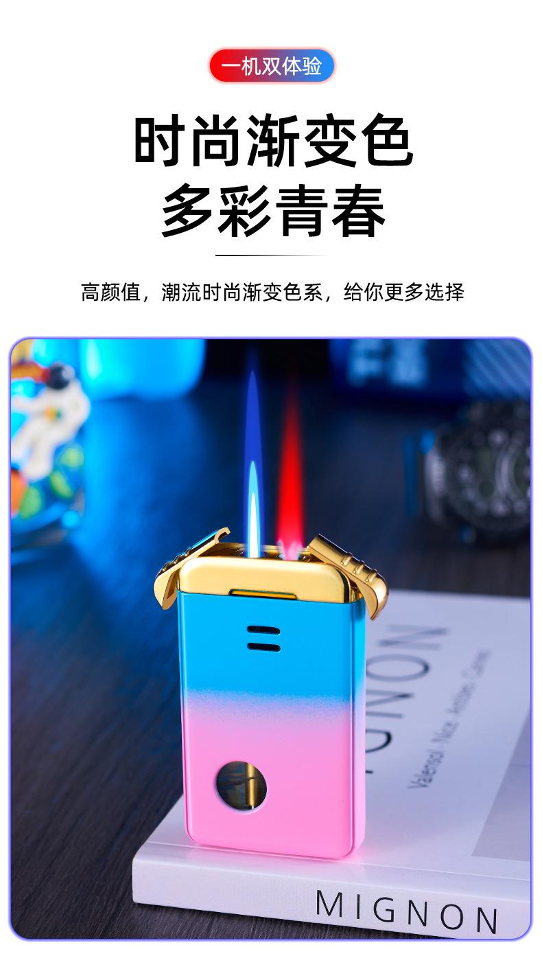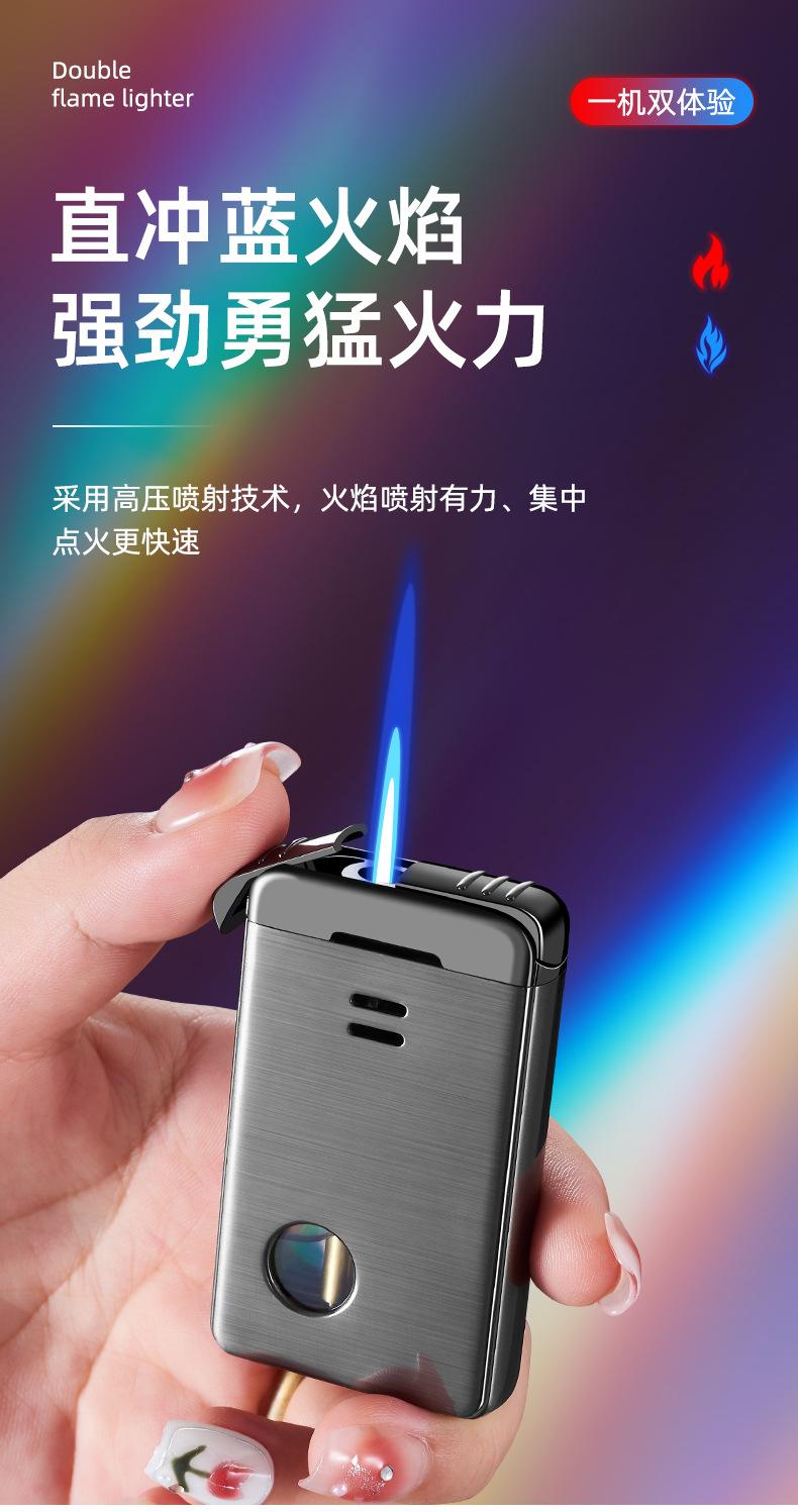 Encendedor inflable de metal transparente a prueba de viento y gas visual Tiktok Net Red, nuevo, de doble llama, regalo para novio