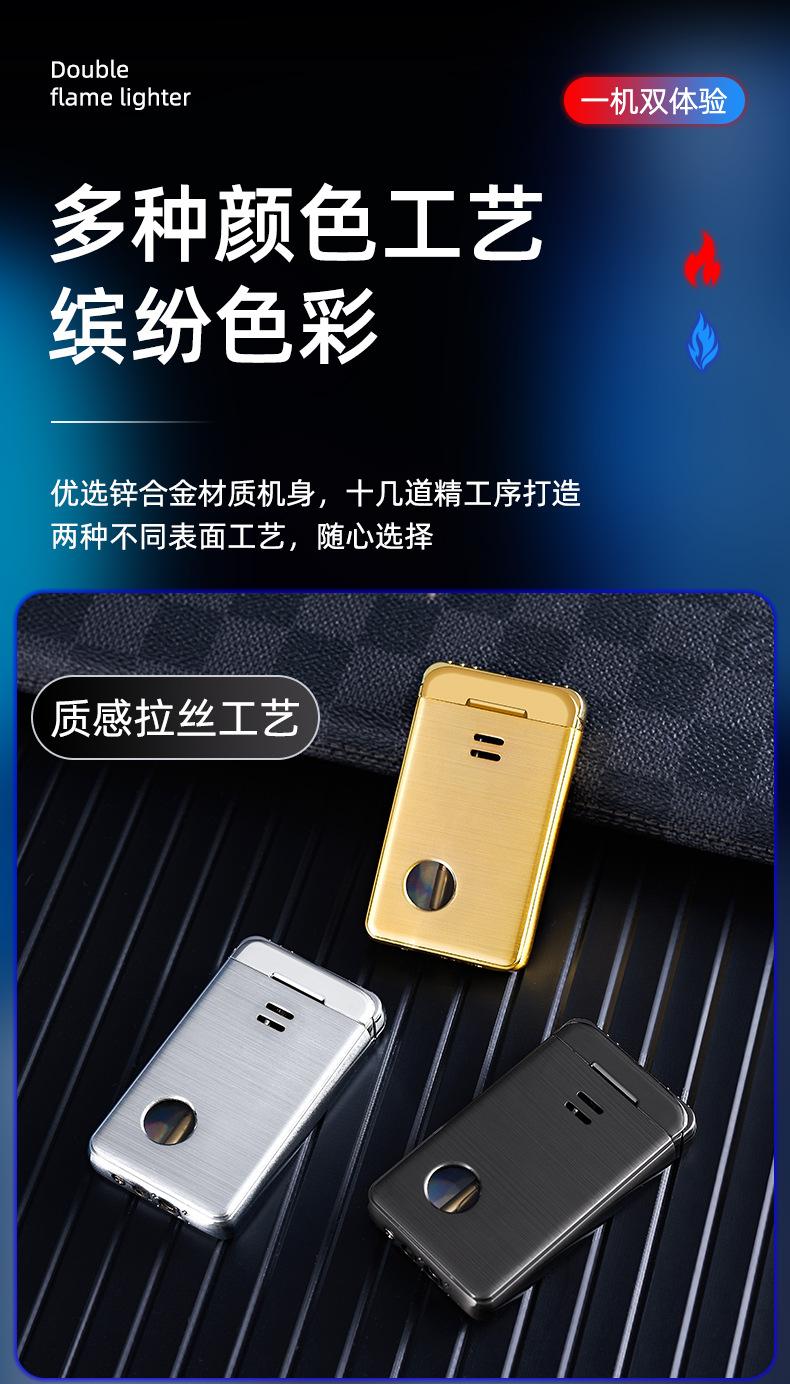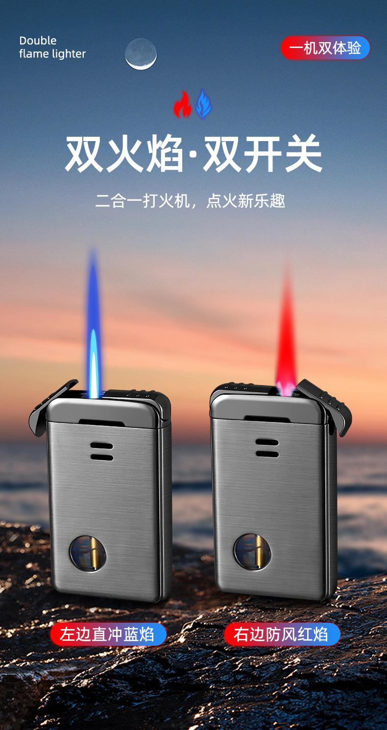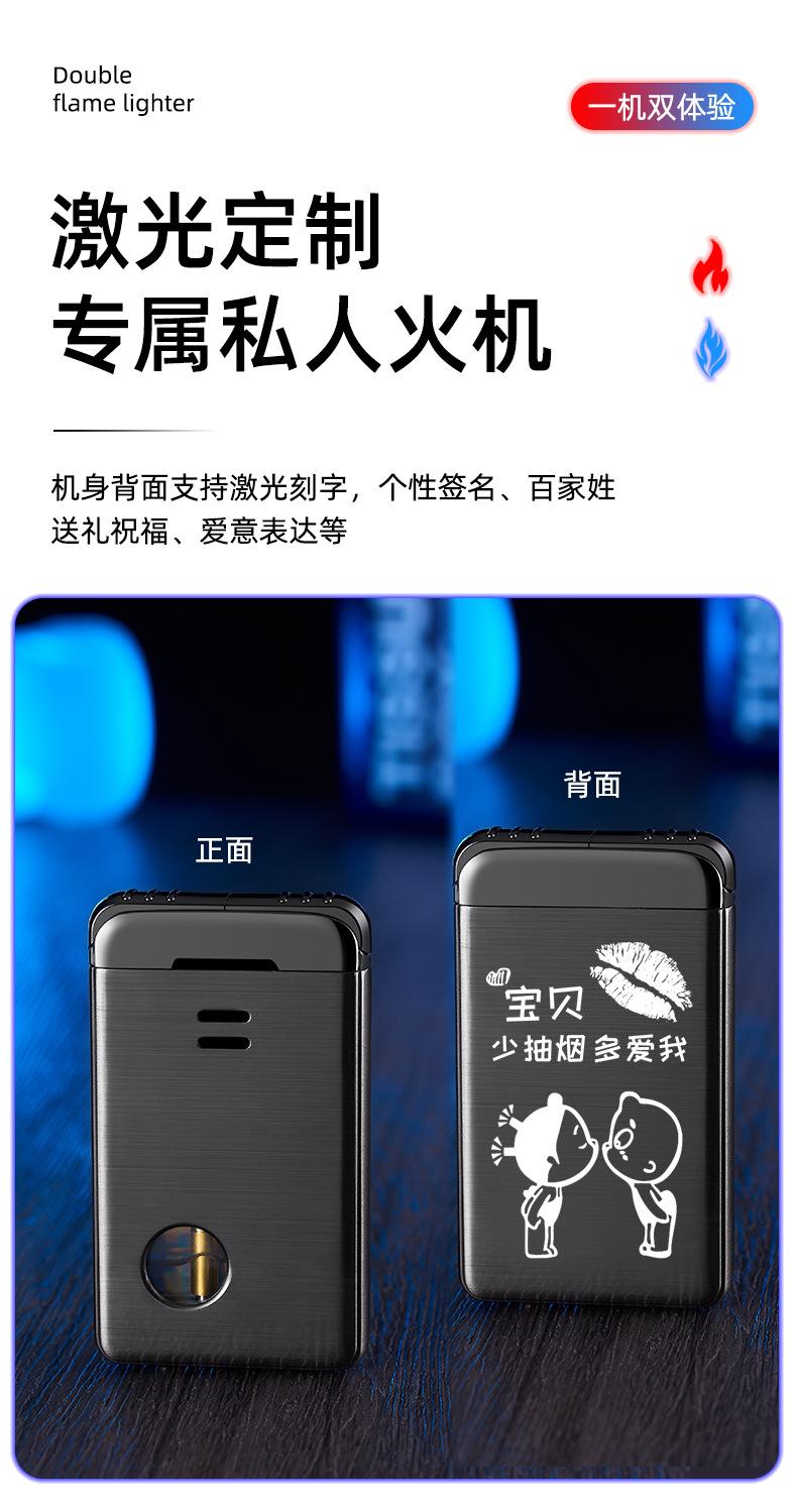 Encendedor inflable de metal transparente a prueba de viento y gas visual Tiktok Net Red, nuevo, de doble llama, regalo para novio
