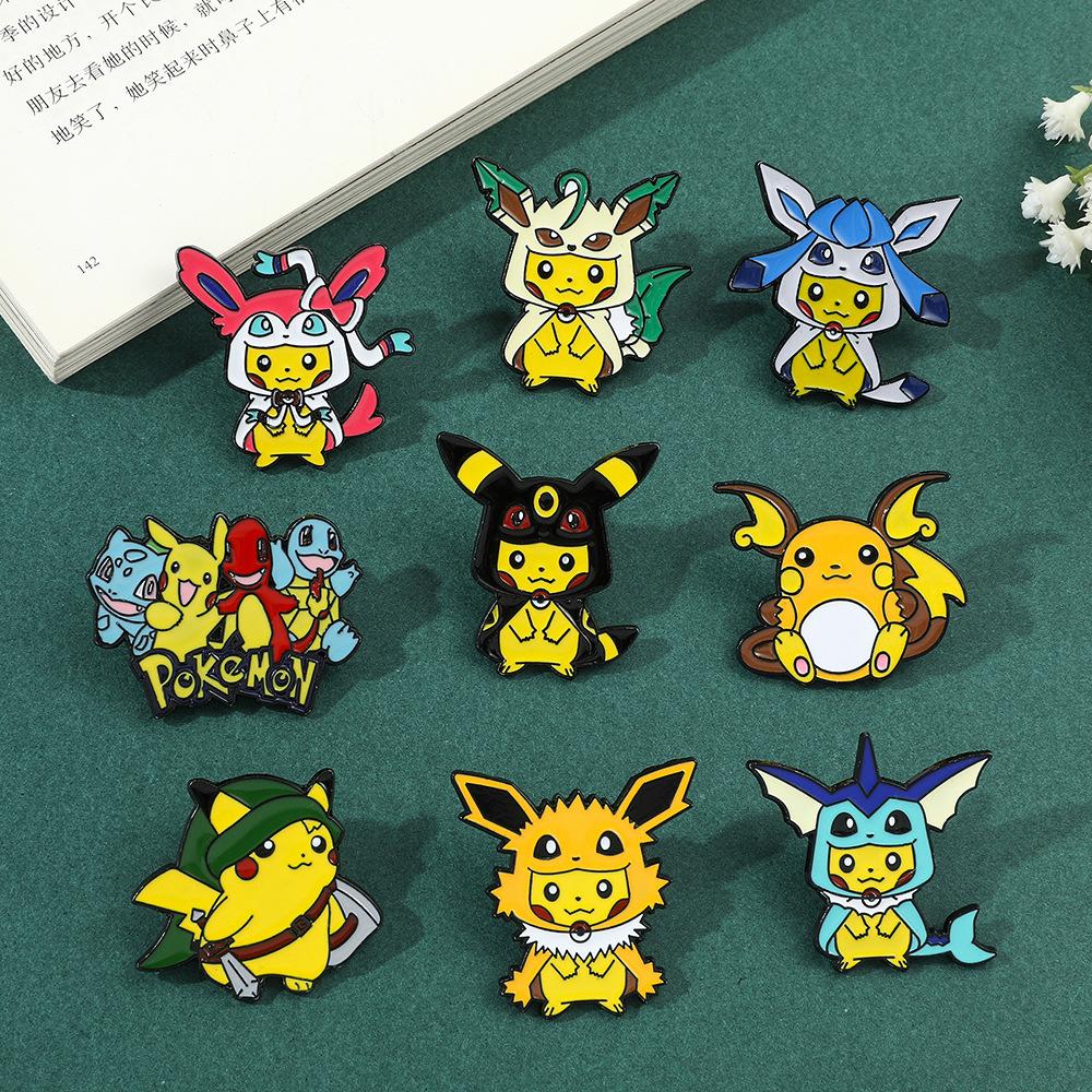 Lindo broche creativo de Pikachu de dibujos animados de Pokémon que rodea a Pokémon Accesorios de Pokémon