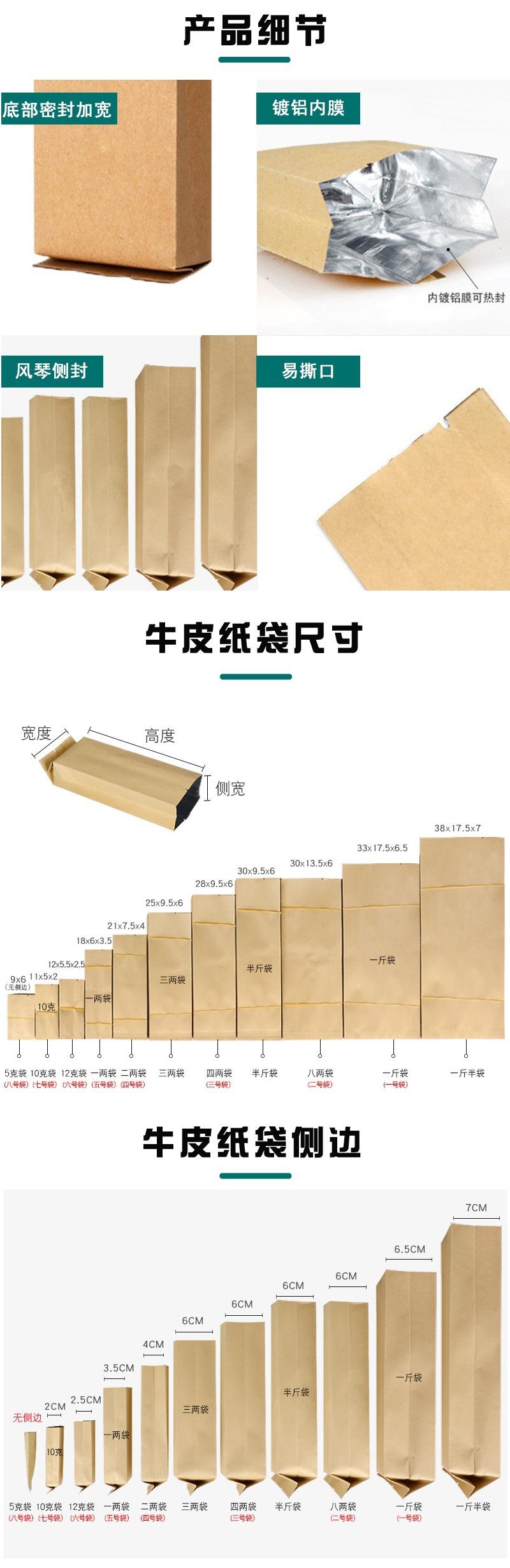 0.1kg cowhide bags 21*7.5*4cm 50 pieces, Thickened pure aluminum 15g cowhide bag l 13*5.5*2.5cm, 5g cowhide ba...