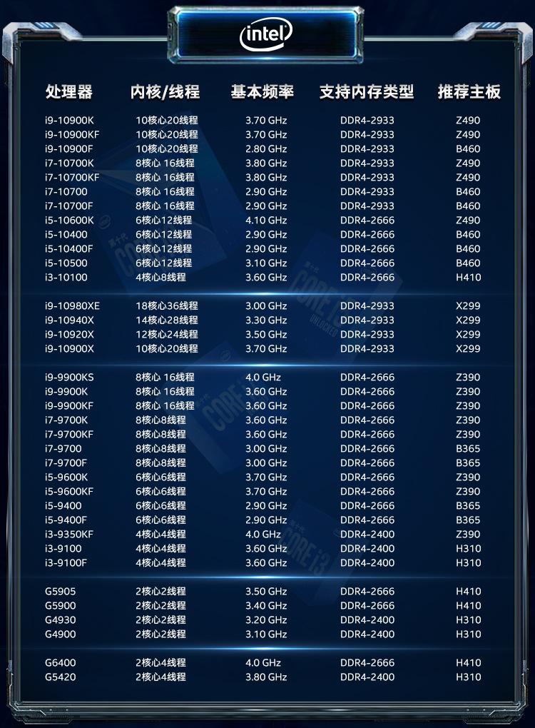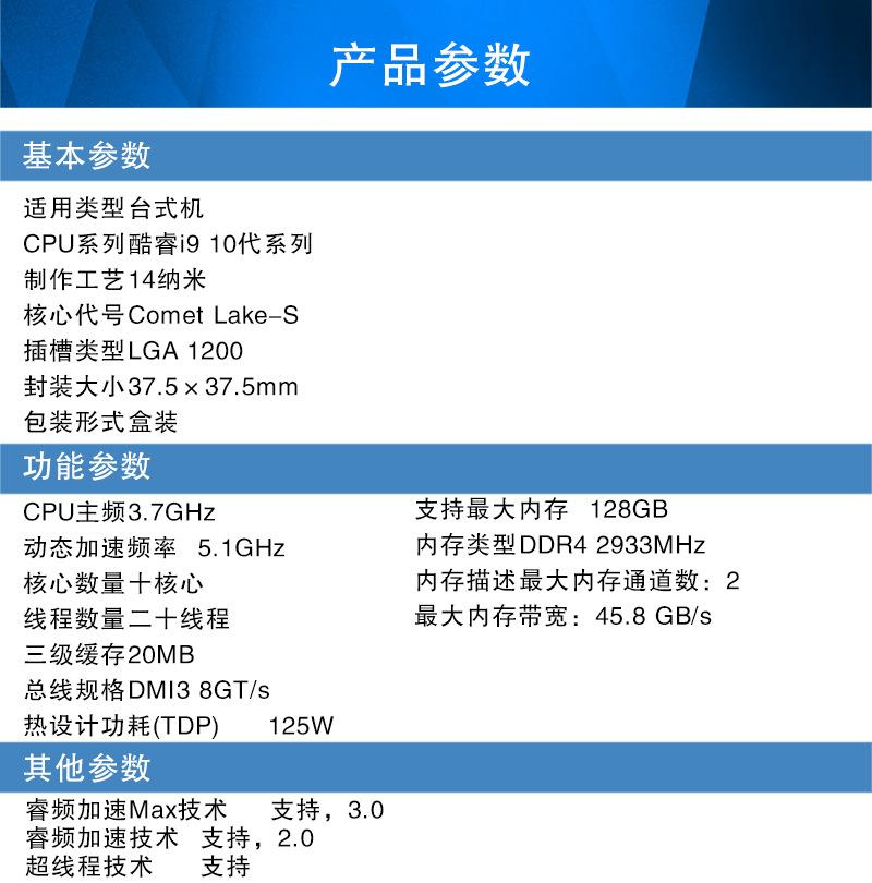 Aplicable al procesador de CPU de escritorio i9 10900KF con velocidad de reloj en caja de 2,9 G, 10 núcleos y 20 subprocesos.