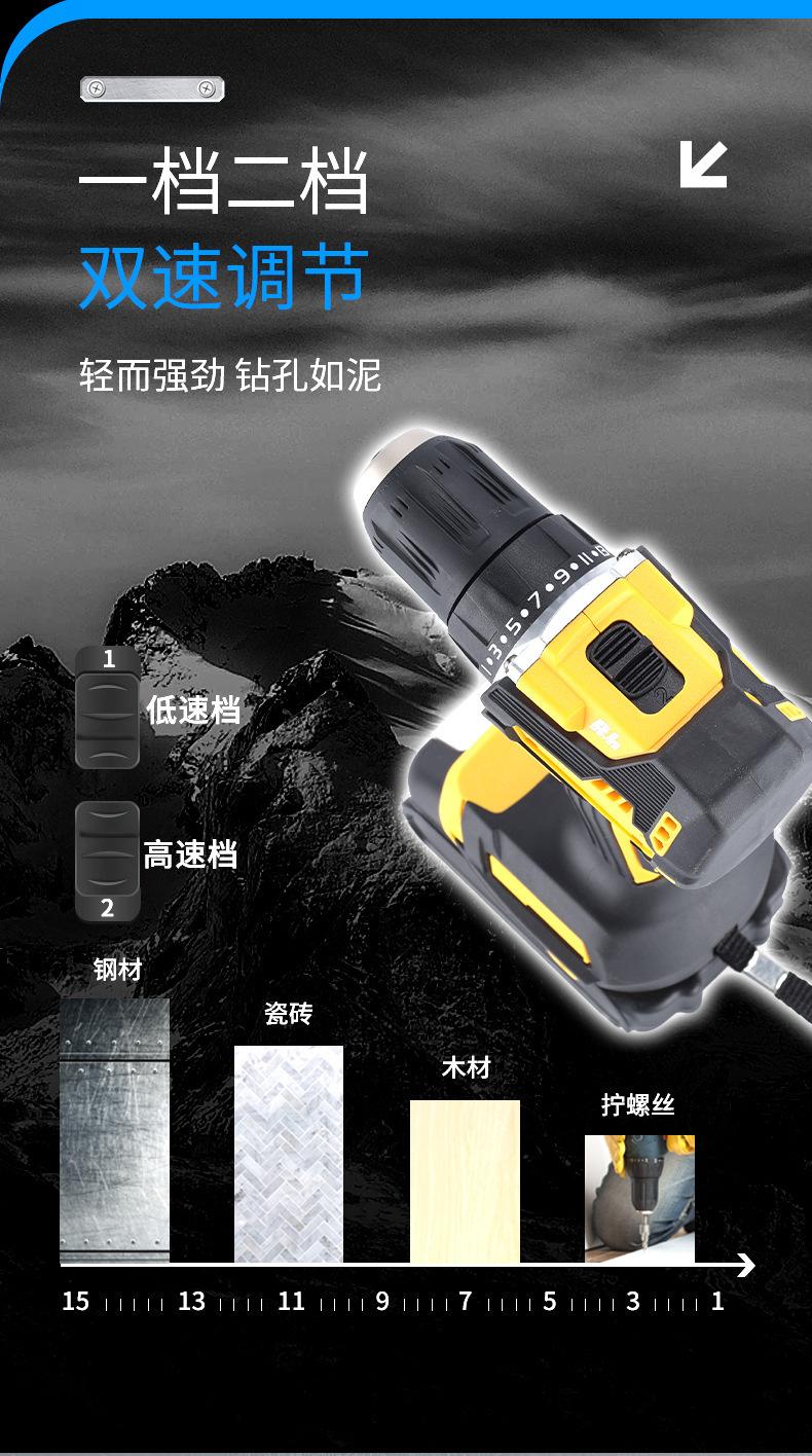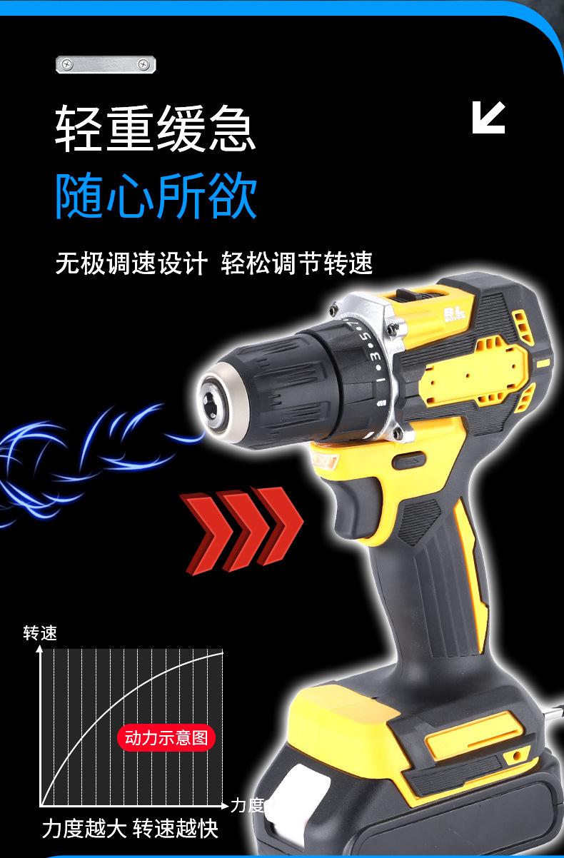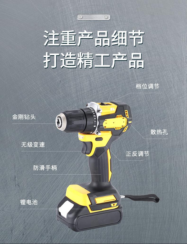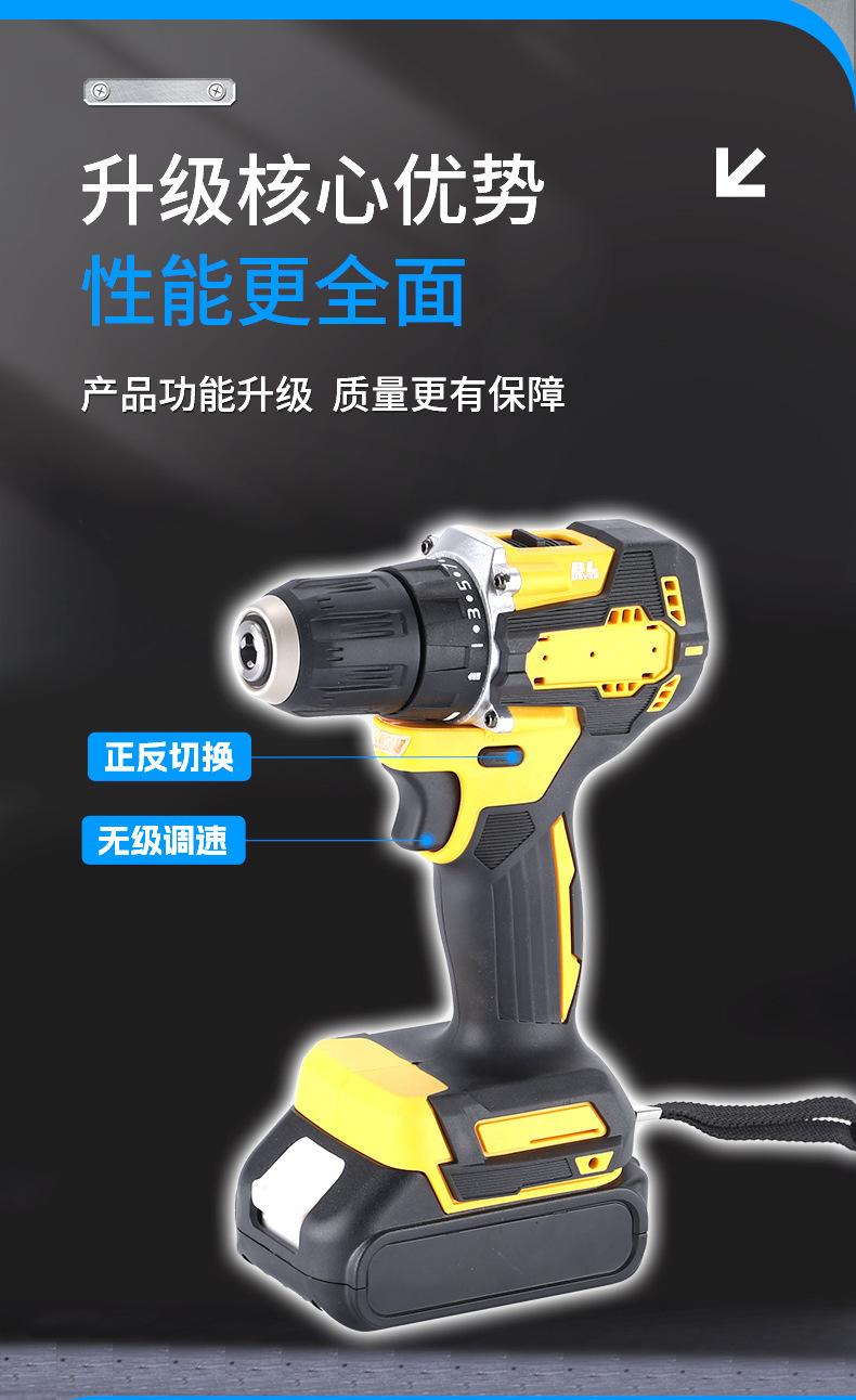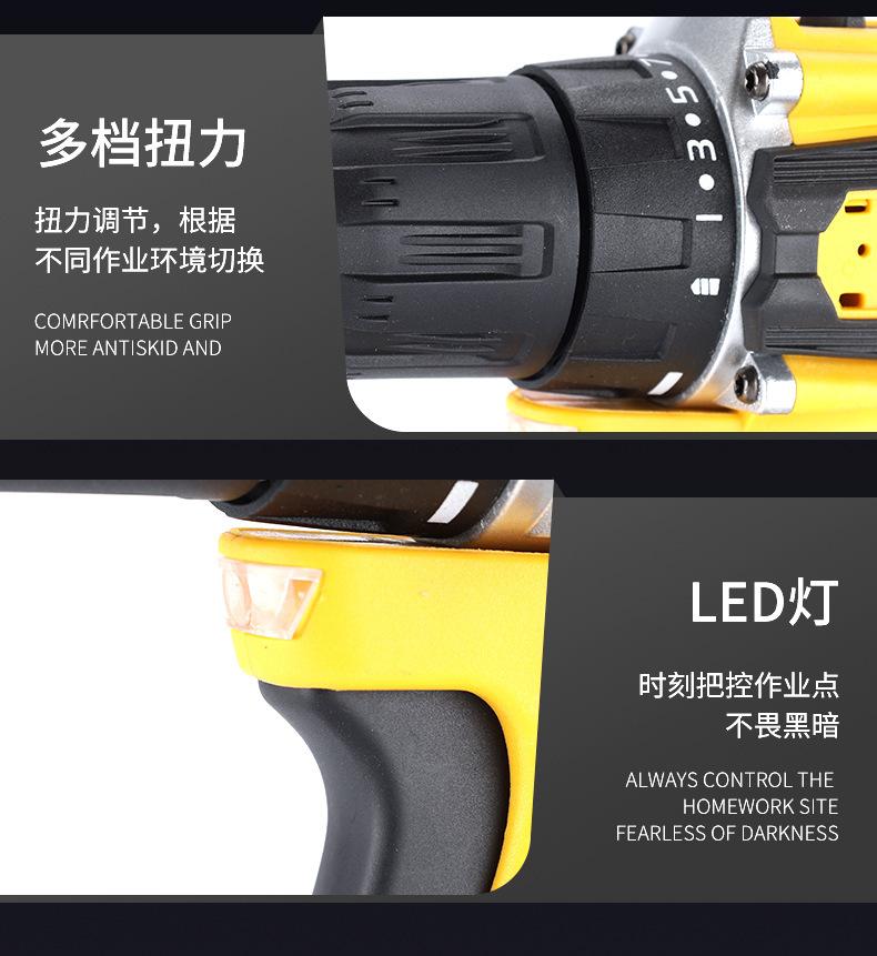 Taladro eléctrico de batería de litio sin escobillas de alta potencia para uso doméstico, venta al por mayor, taladro eléctrico manual de gran torque, destornillador de carga, herramientas eléctricas