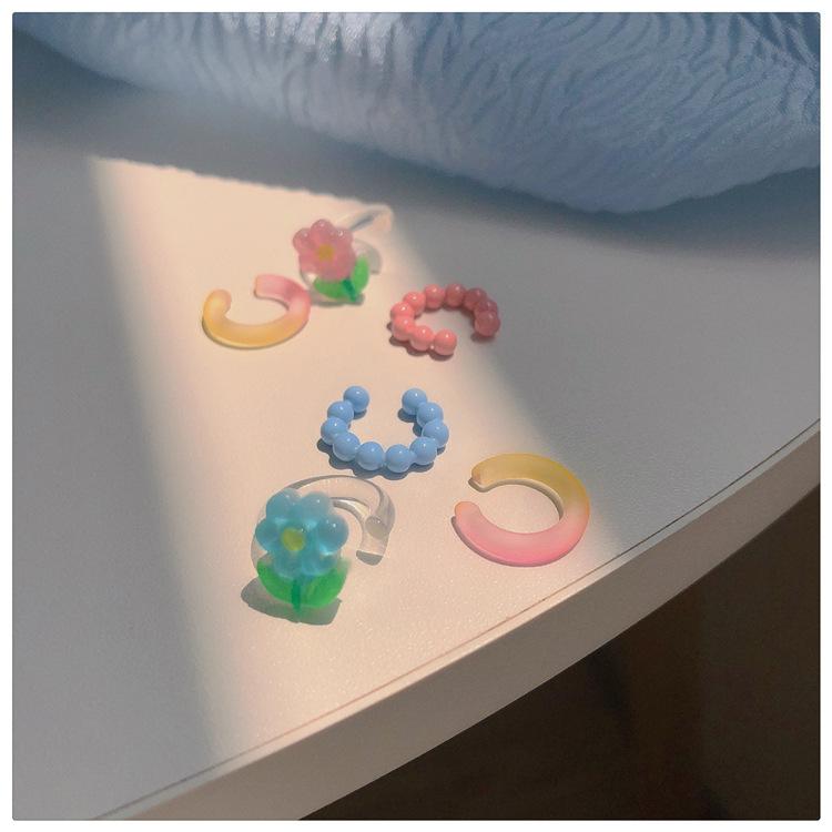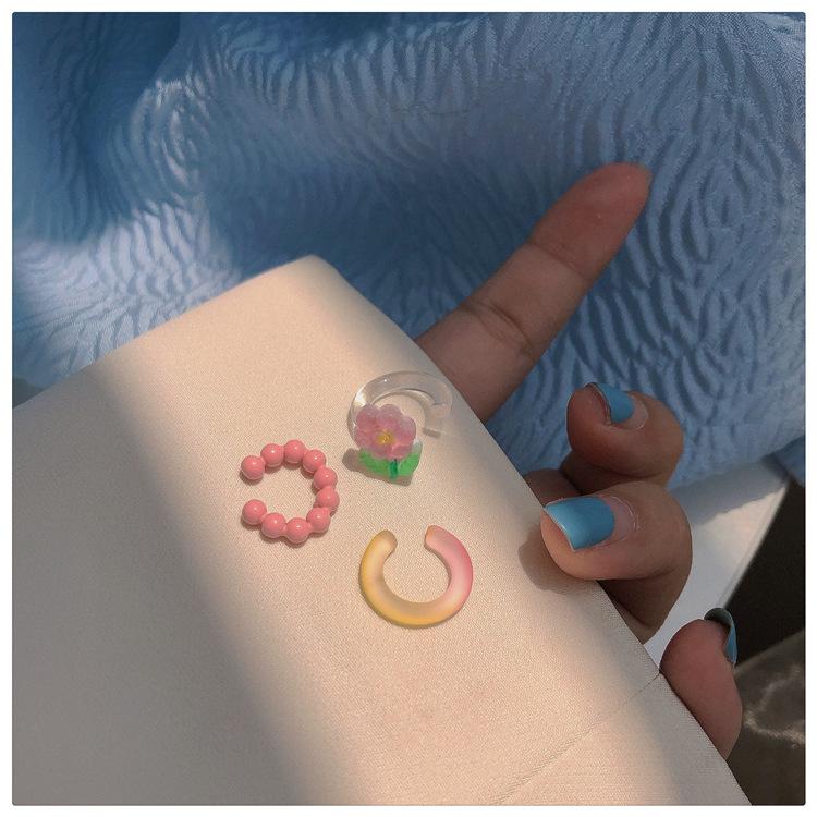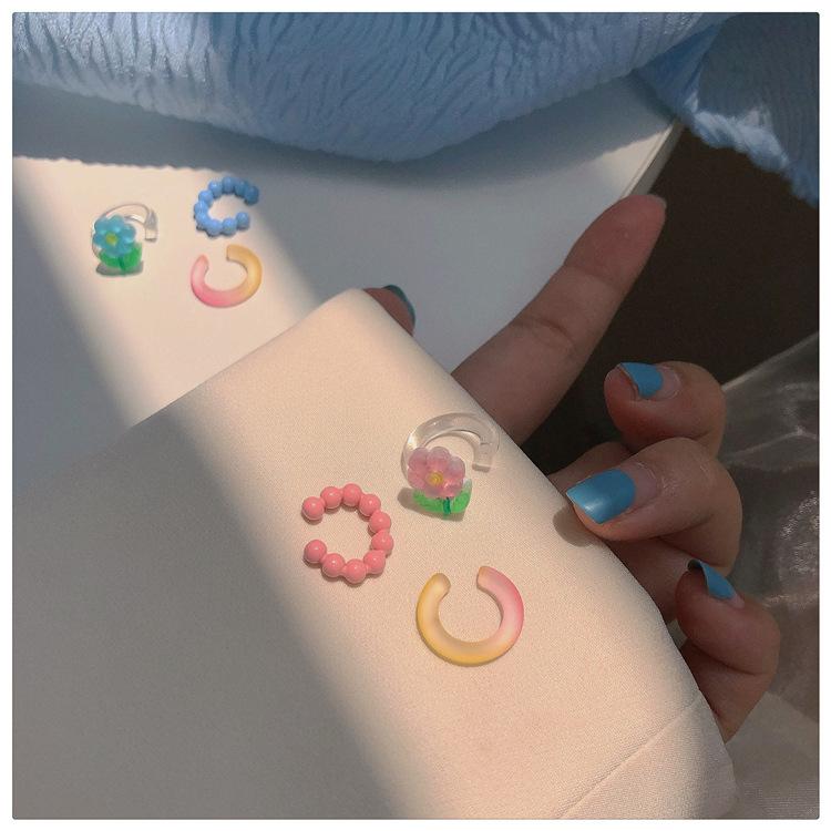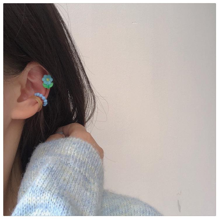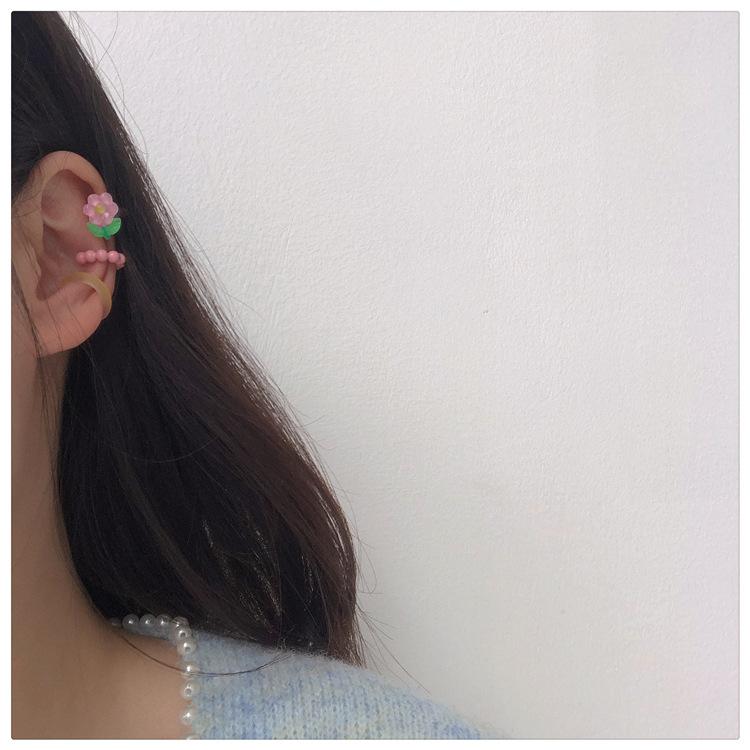 ¡Color primaveral! Clip para hueso de la oreja de flor dulce súper hada ~ diseño nicho ins moda clip para la oreja sin perforación pendientes para niña