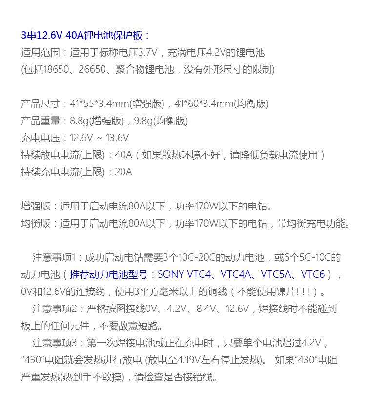 Placa de Protección para Batería de Litio 3S 11.1V 12.6V 18650 con Balanceo Puede Arrancar Taladro Eléctrico Corriente 40A