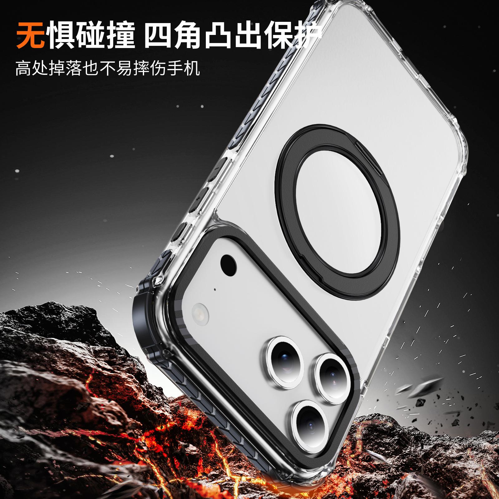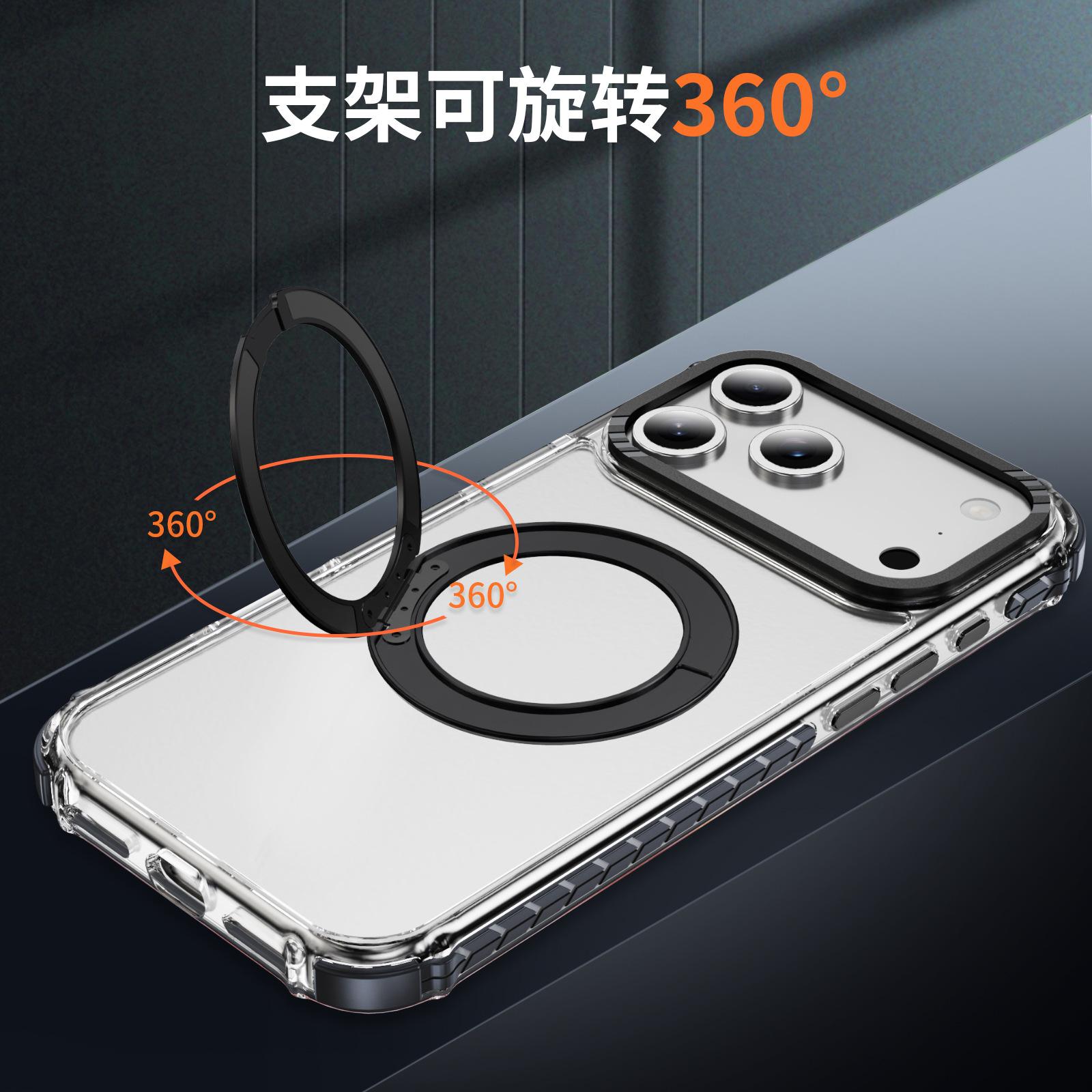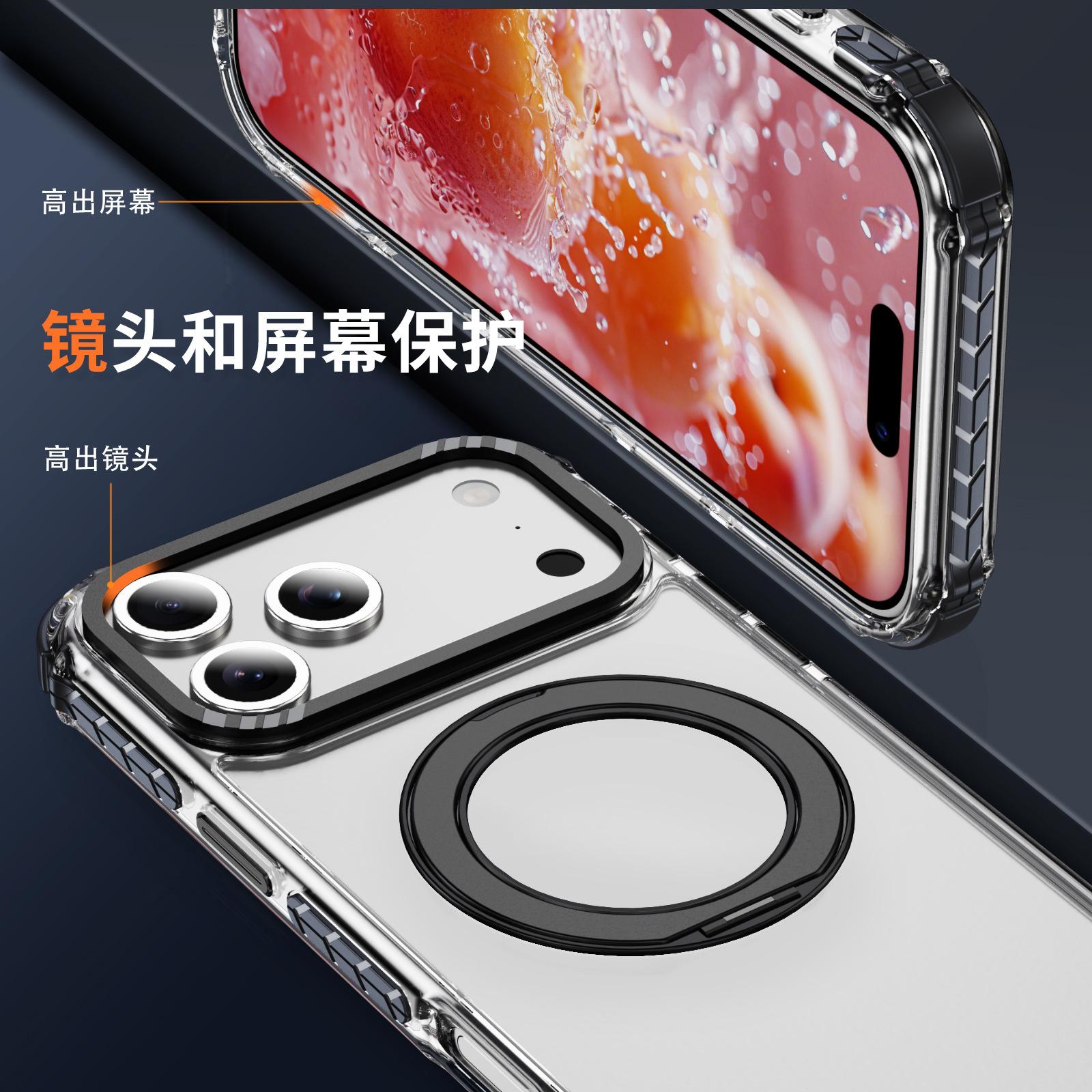 Adecuado para Iphone17Propmax Carcasa Magnética Arcoíris Transparente Apple 16Pro Cubierta con Soporte de Engranaje