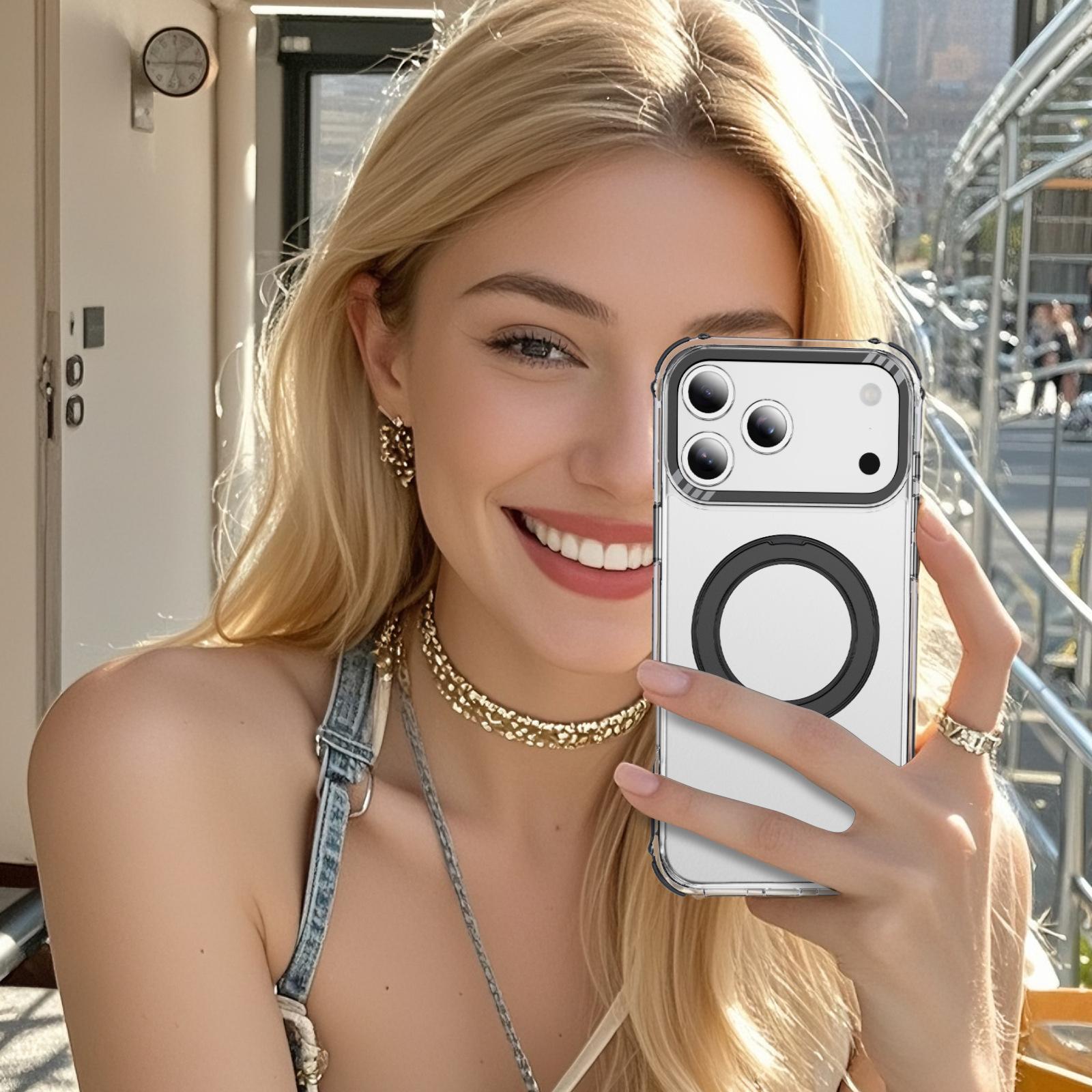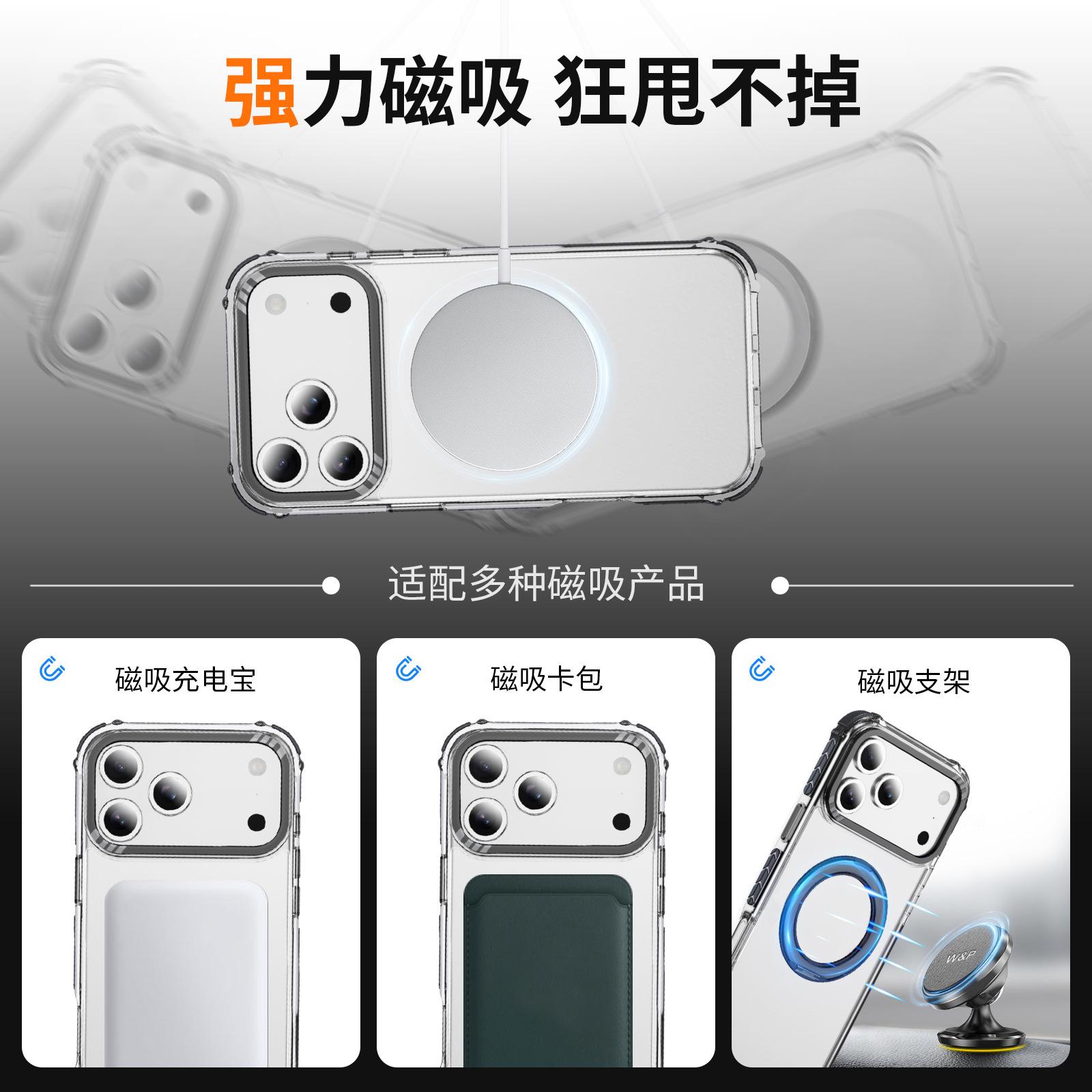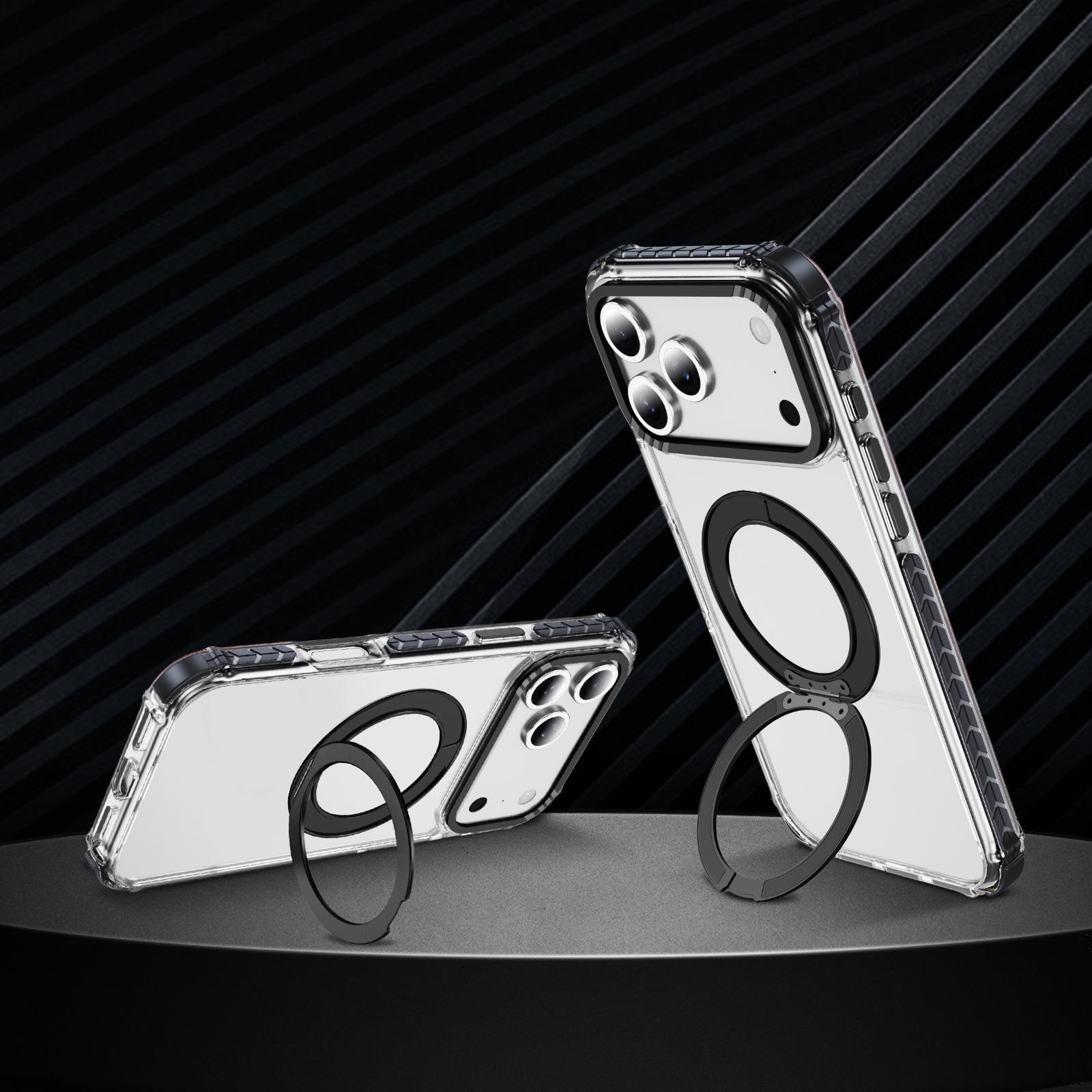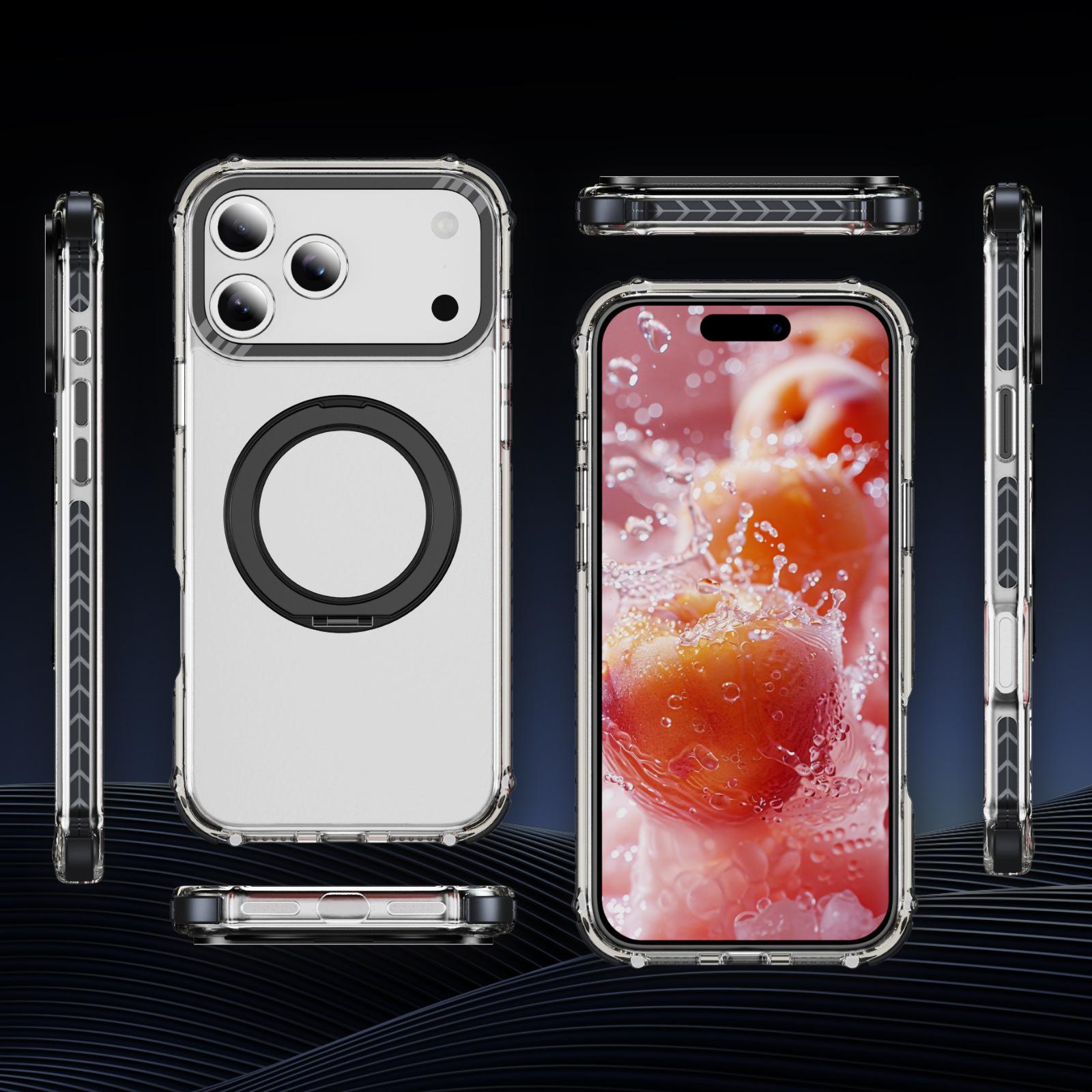 Adecuado para Iphone17Propmax Carcasa Magnética Arcoíris Transparente Apple 16Pro Cubierta con Soporte de Engranaje