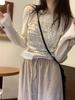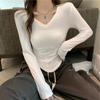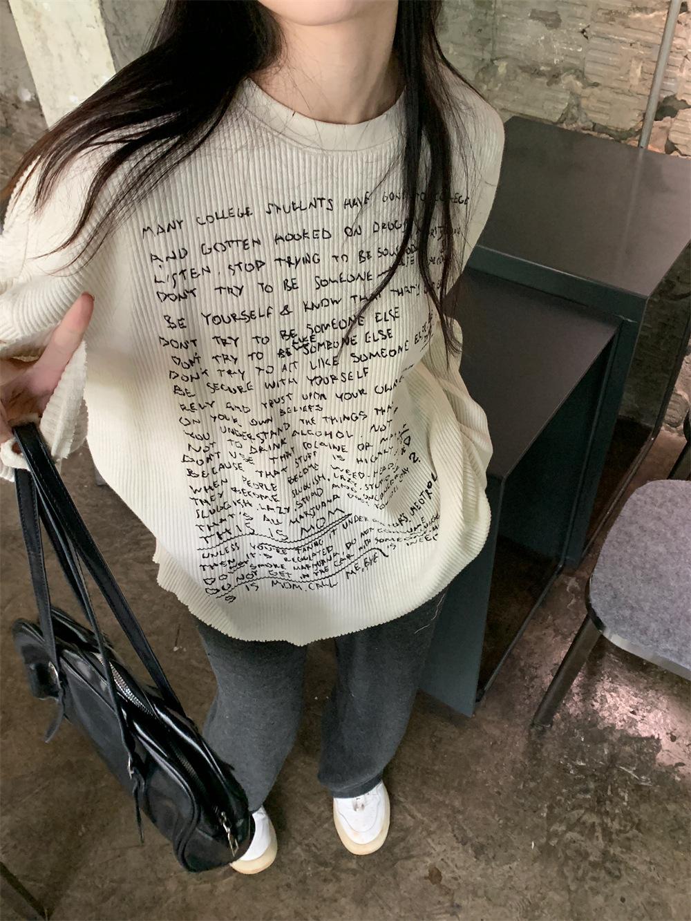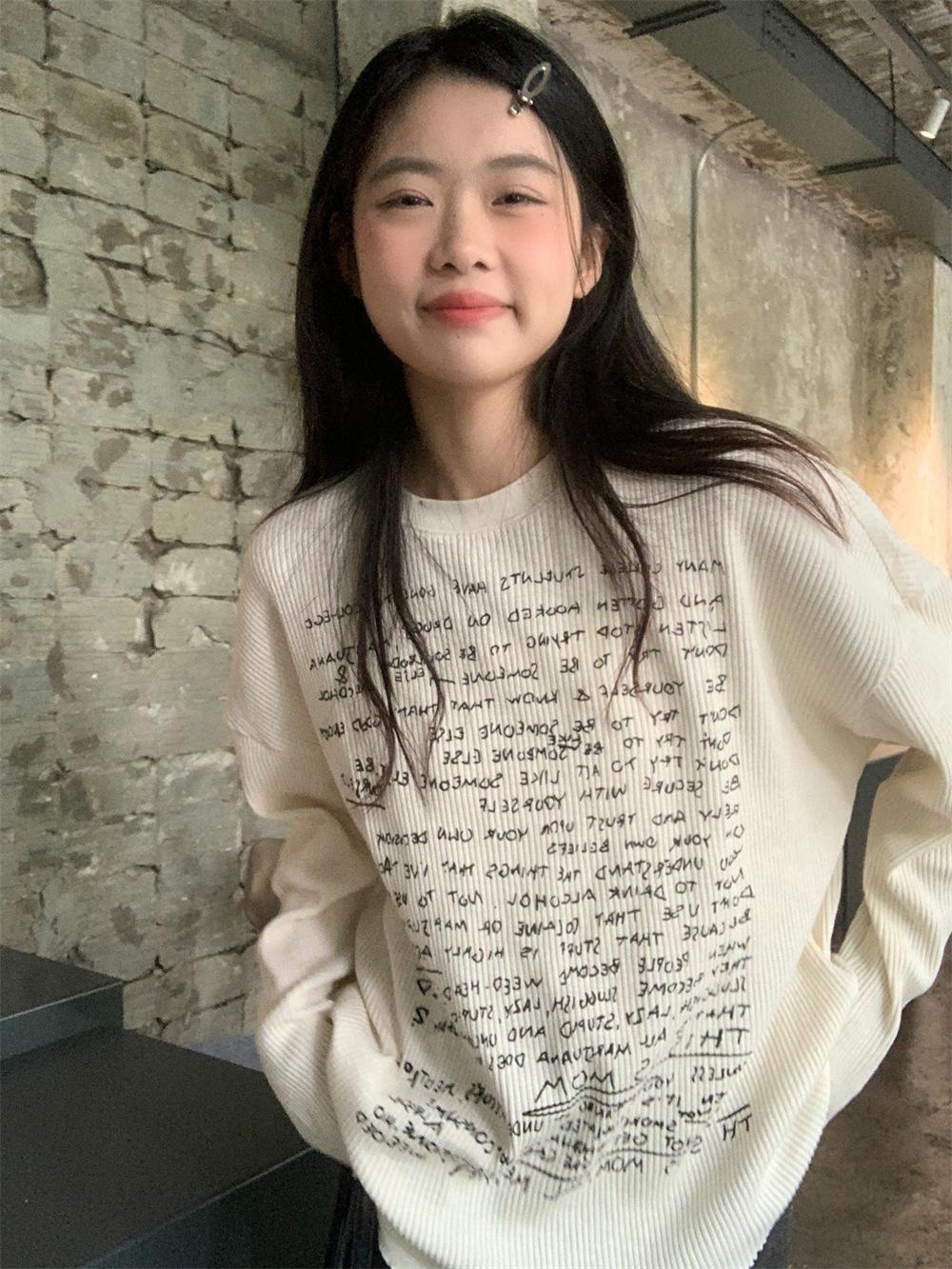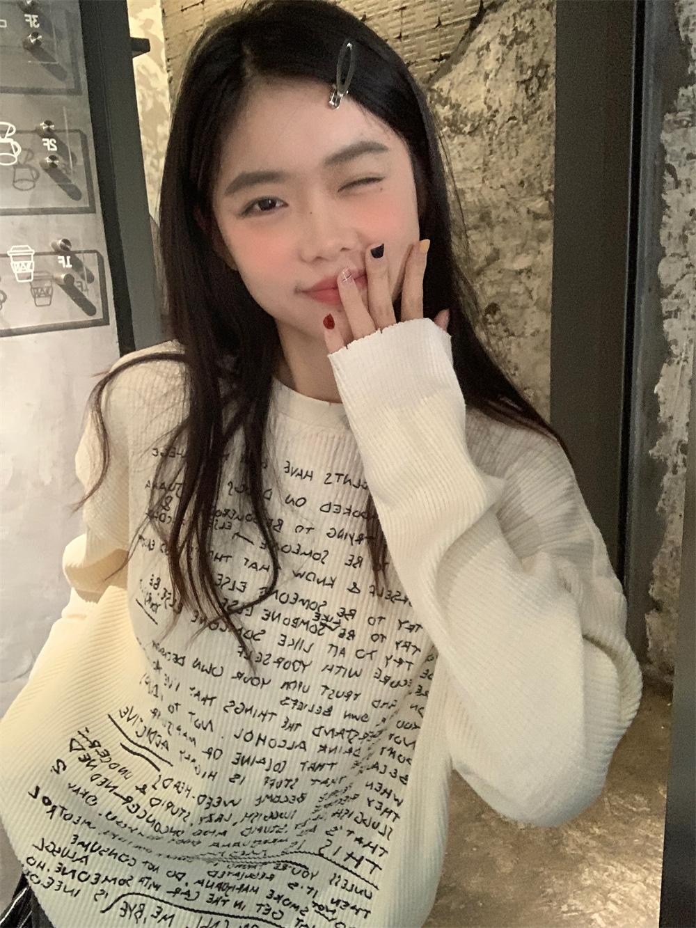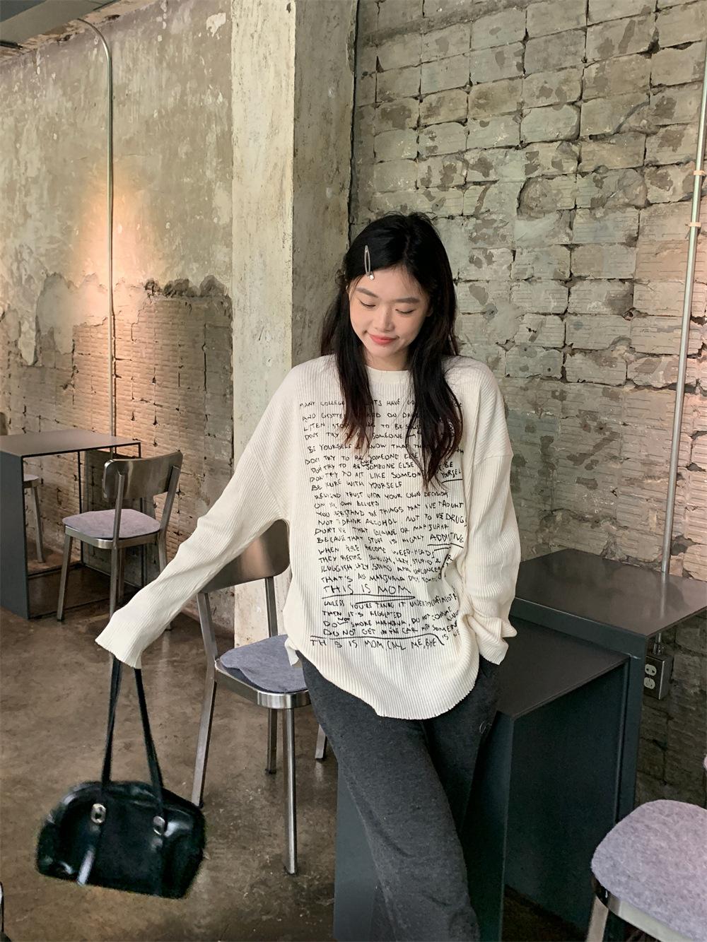 Camiseta de estilo dulce y picante de manga larga con hombros descubiertos y estampado de letras para mujer, top básico corto blanco ajustado adelgazante de nicho para primavera y otoño