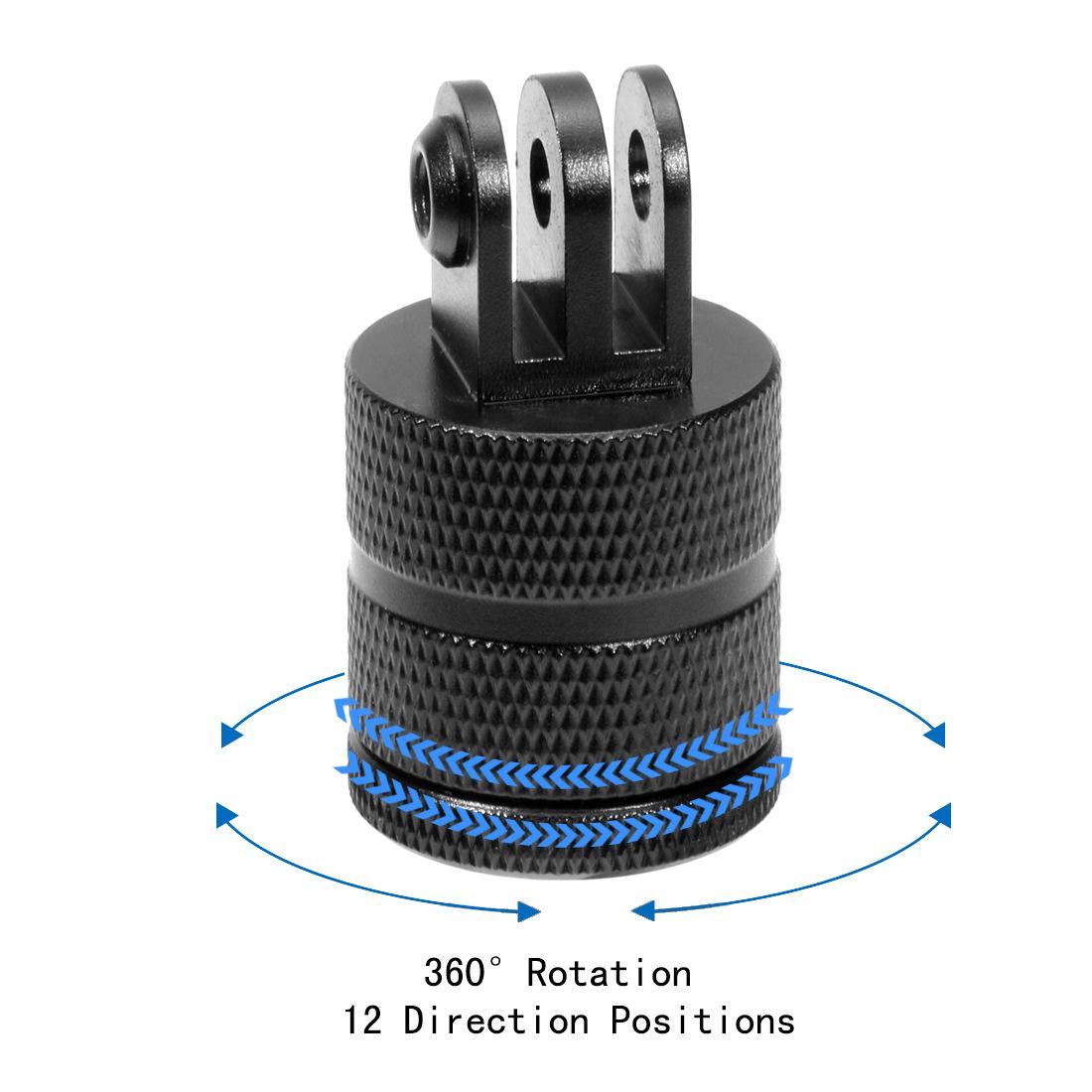 El bloque de conexión giratorio de 360 grados utiliza un orificio roscado estándar de 1/4 y se puede usar en cámaras grandes como cámaras Gopro hero/universal/bicicleta/moto/Canon/nikon/SONY. El producto es práctico y conveniente, y se puede girar 360 grados a voluntad.