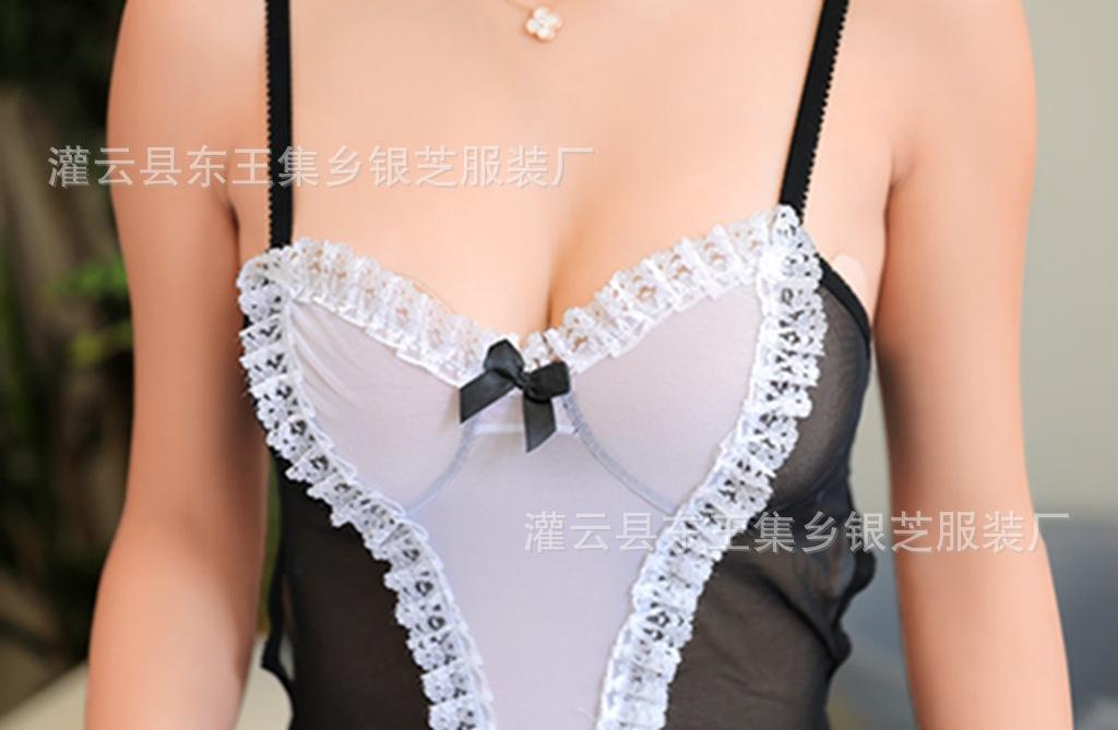 Lencería sexy de encaje sexy conjunto de sirvienta de rol de malla sin espalda hermosa sirvienta pequeña una generación de cabello