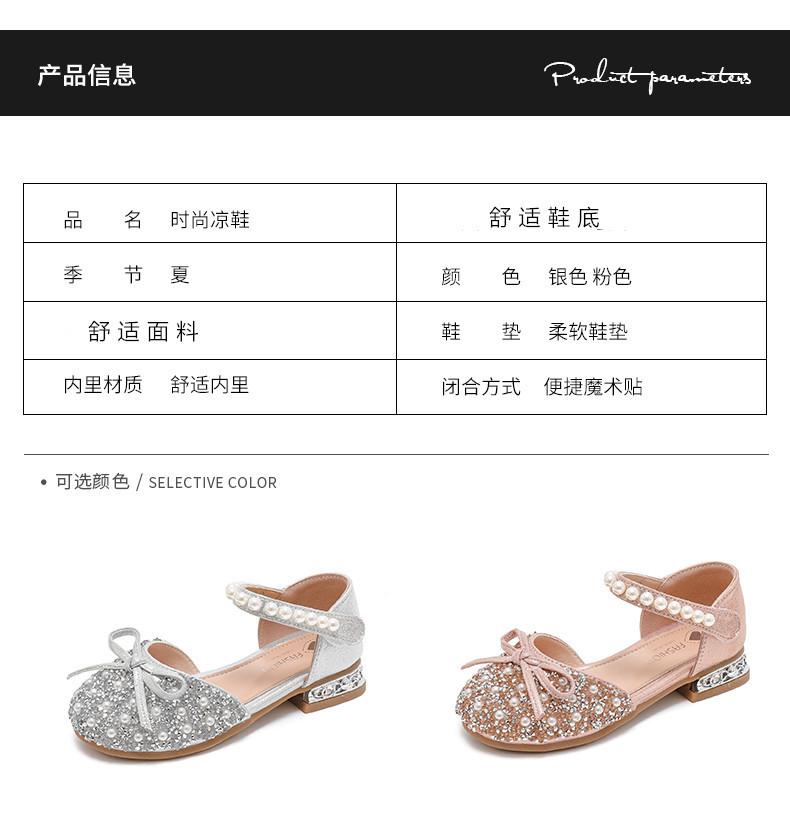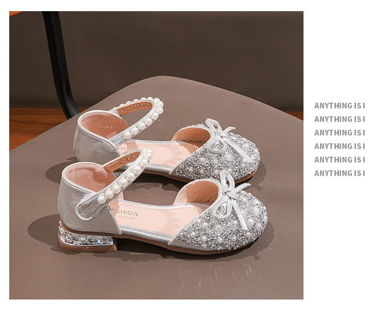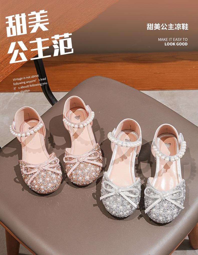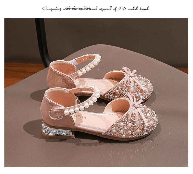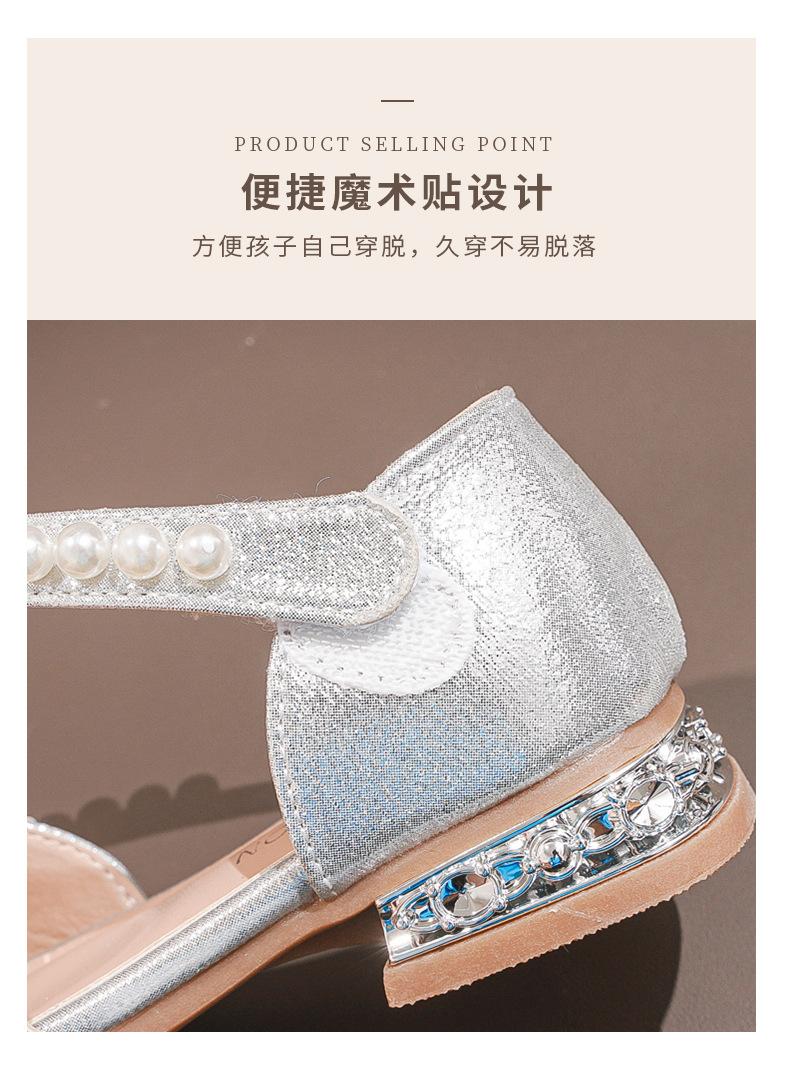 Sandalias para niñas, verano 2024, nuevo estilo coreano, suela suave, zapatos de princesa con punta, zapatos grandes para niñas pequeñas, tacones altos para niñas.