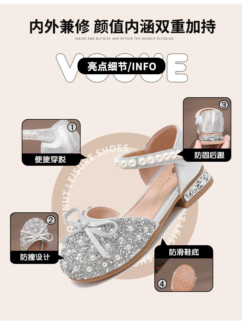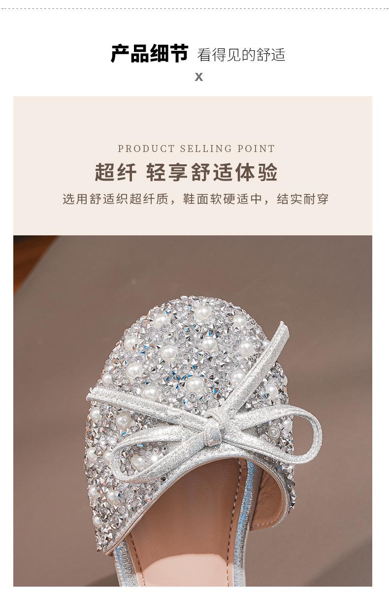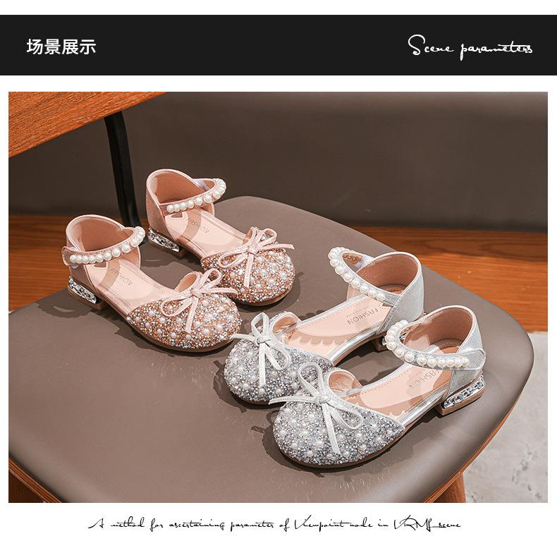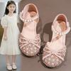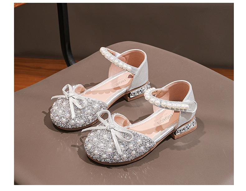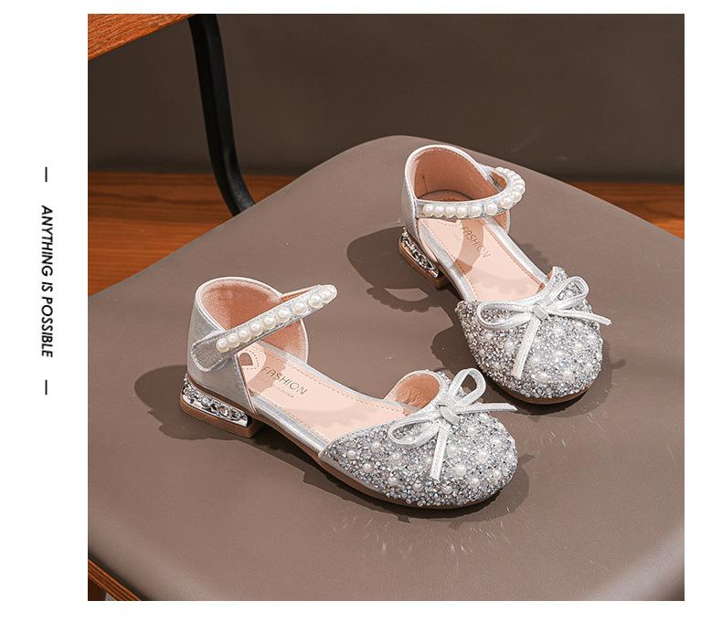 Sandalias para niñas, verano 2024, nuevo estilo coreano, suela suave, zapatos de princesa con punta, zapatos grandes para niñas pequeñas, tacones altos para niñas.
