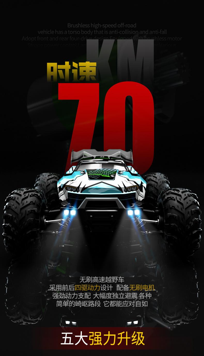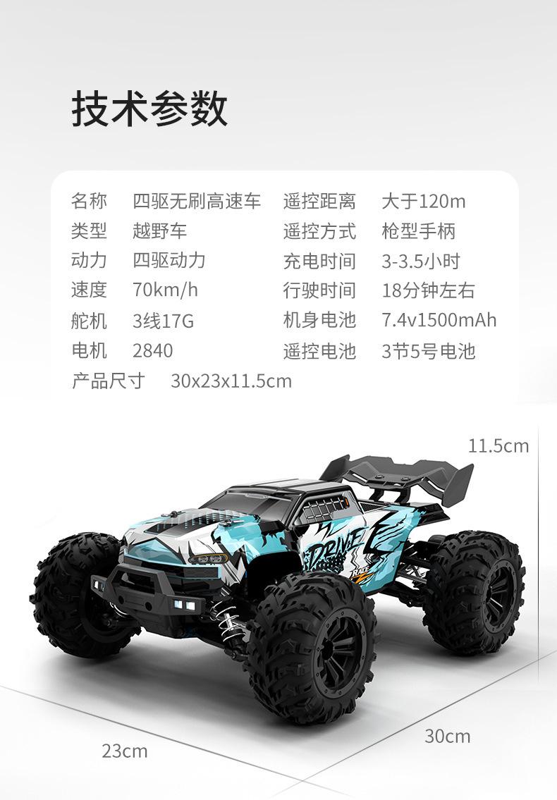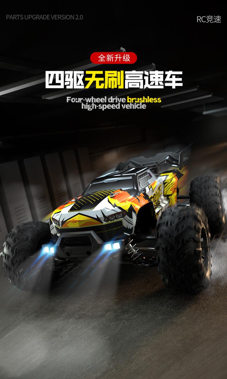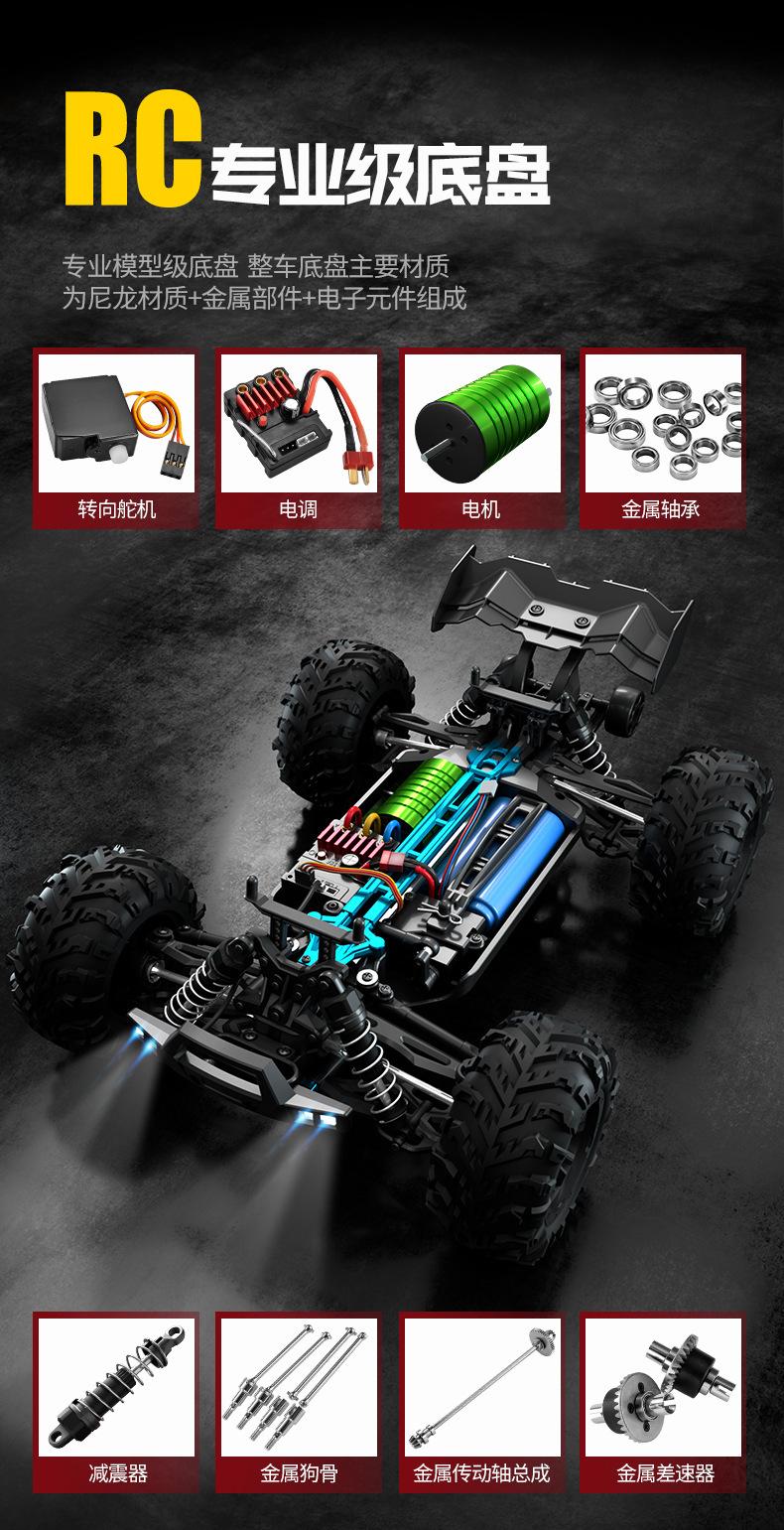 Coche de control remoto de alta velocidad con tracción en las cuatro ruedas, motor sin escobillas a escala real, diferencial de metal, modelo de carreras todoterreno profesional