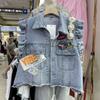 Chaleco de mezclilla nuevo para mujer de comercio exterior transfronterizo 2023 estilo europeo y americano cuello en V mezclilla Spice Girl chaleco top chaleco mujer