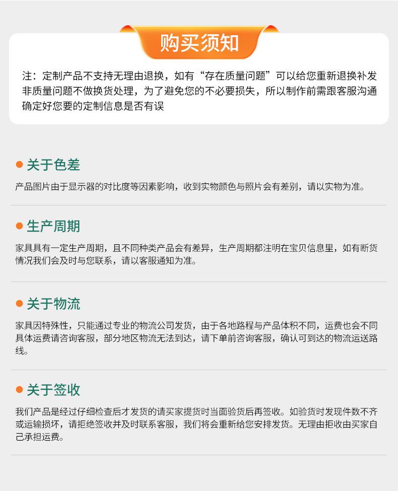 Ventas directas de fábrica, todos los productos tienen un pedido mínimo de 5 piezas, no al por menor. La producción de muebles tiene un ciclo de producción determinado, generalmente se envían dentro de 2 a 7 días después del pago, consulte al servicio de atención al cliente al realizar el pedido.