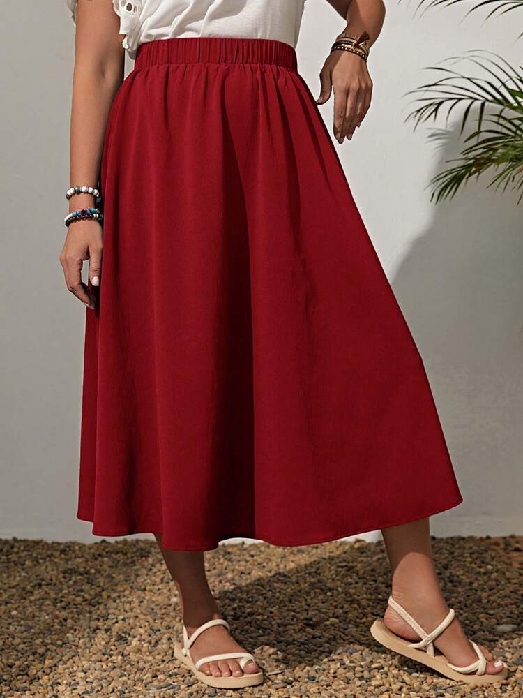 Falda de talla grande de color sólido de cintura simple para mujer, nueva moda de primavera y verano 2024, transfronteriza de Amazon Europa y Estados Unidos