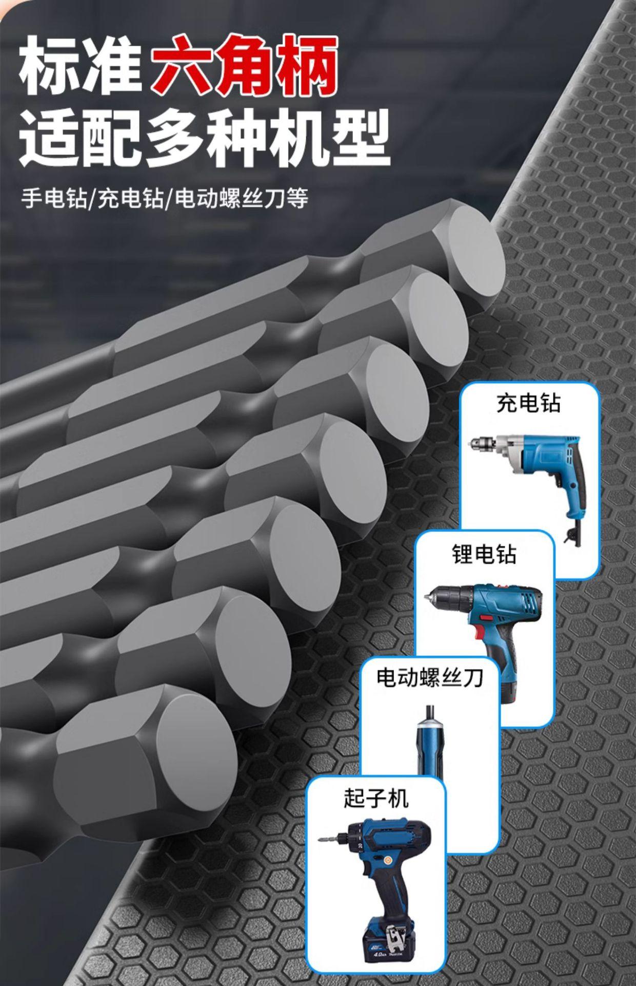 Destornillador eléctrico de acero de tungsteno con cabeza hueca hexagonal, llave de pico con mango hexagonal, apto para taladro eléctrico manual de fuerte impacto magnético.