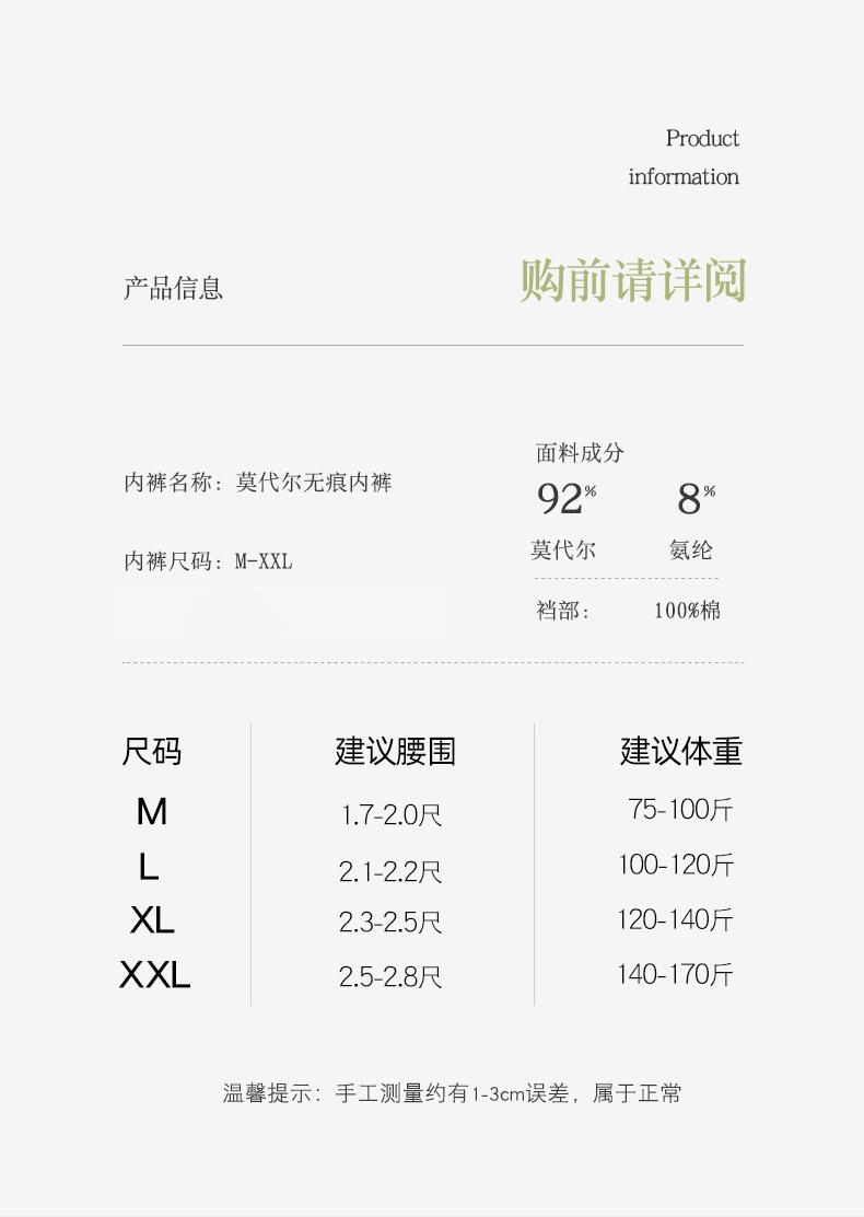 92% Modal + 8% Spandex Entrepierna 100% Algodón