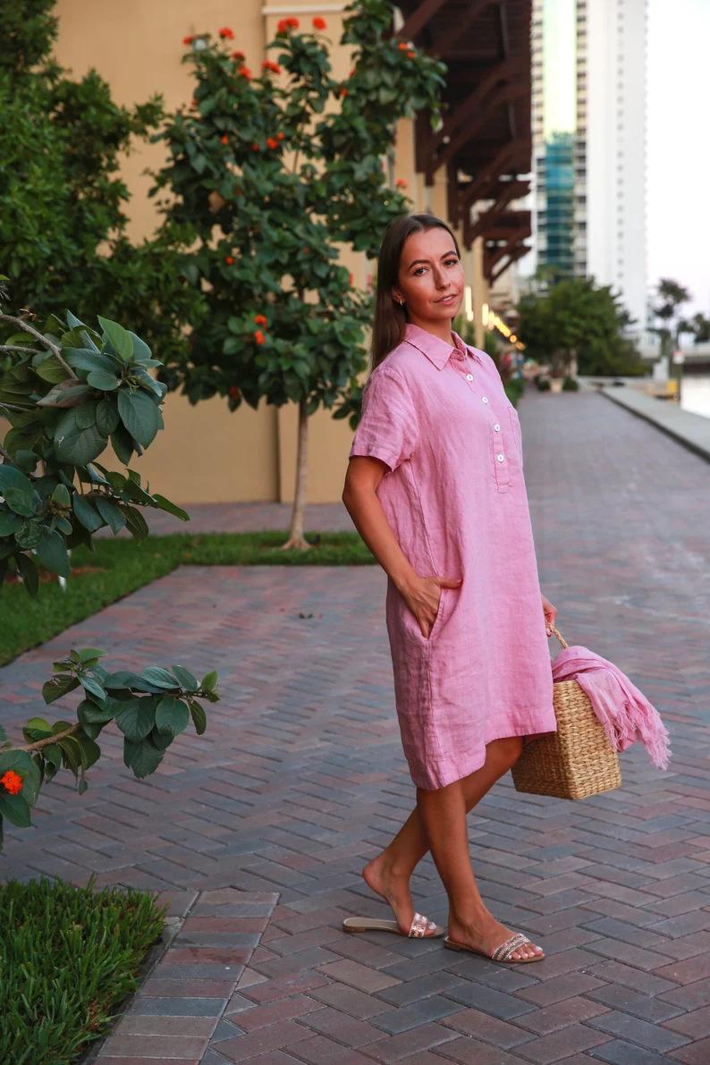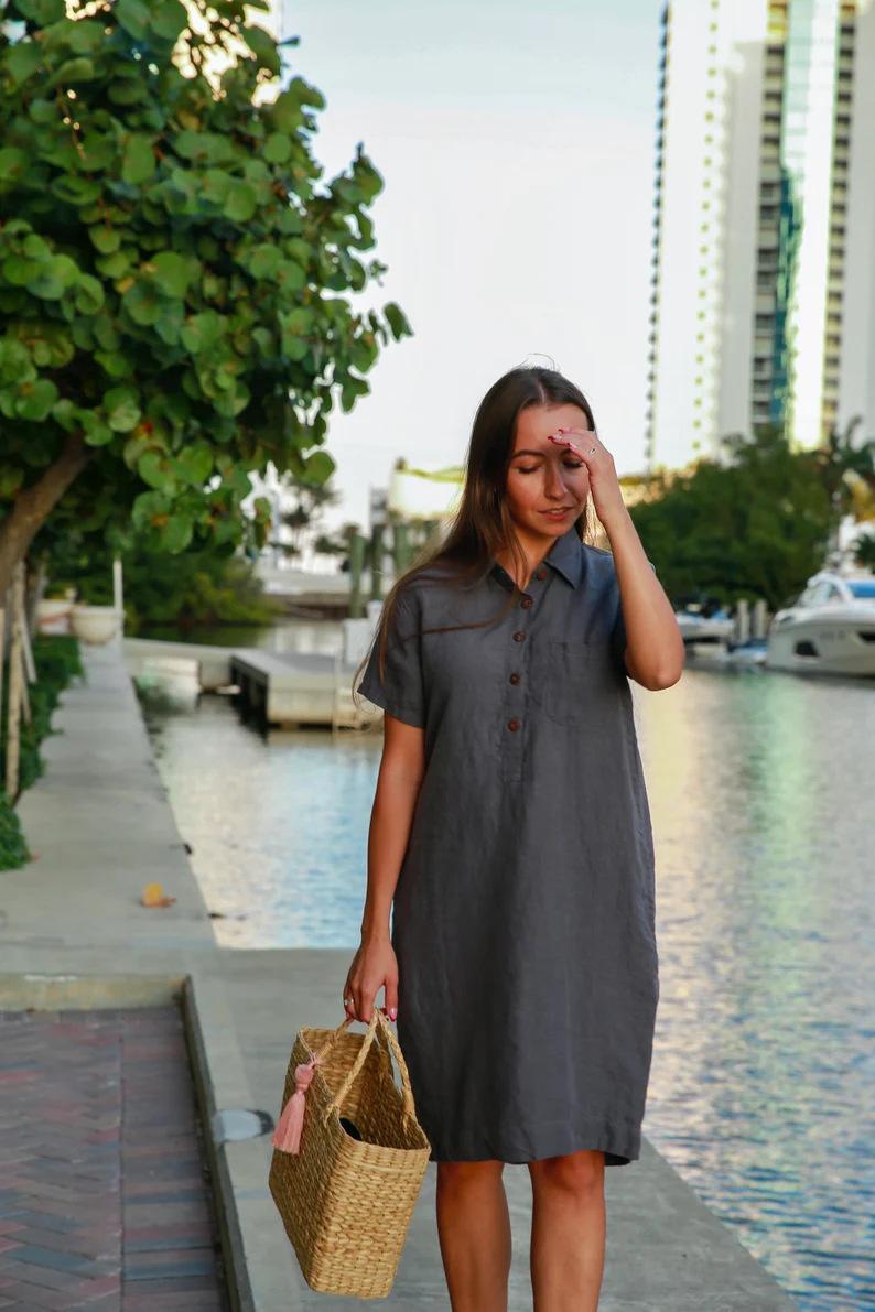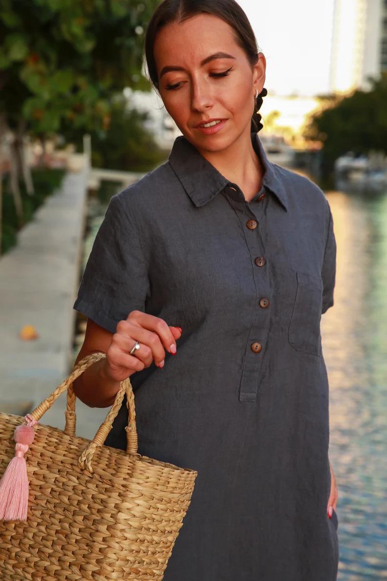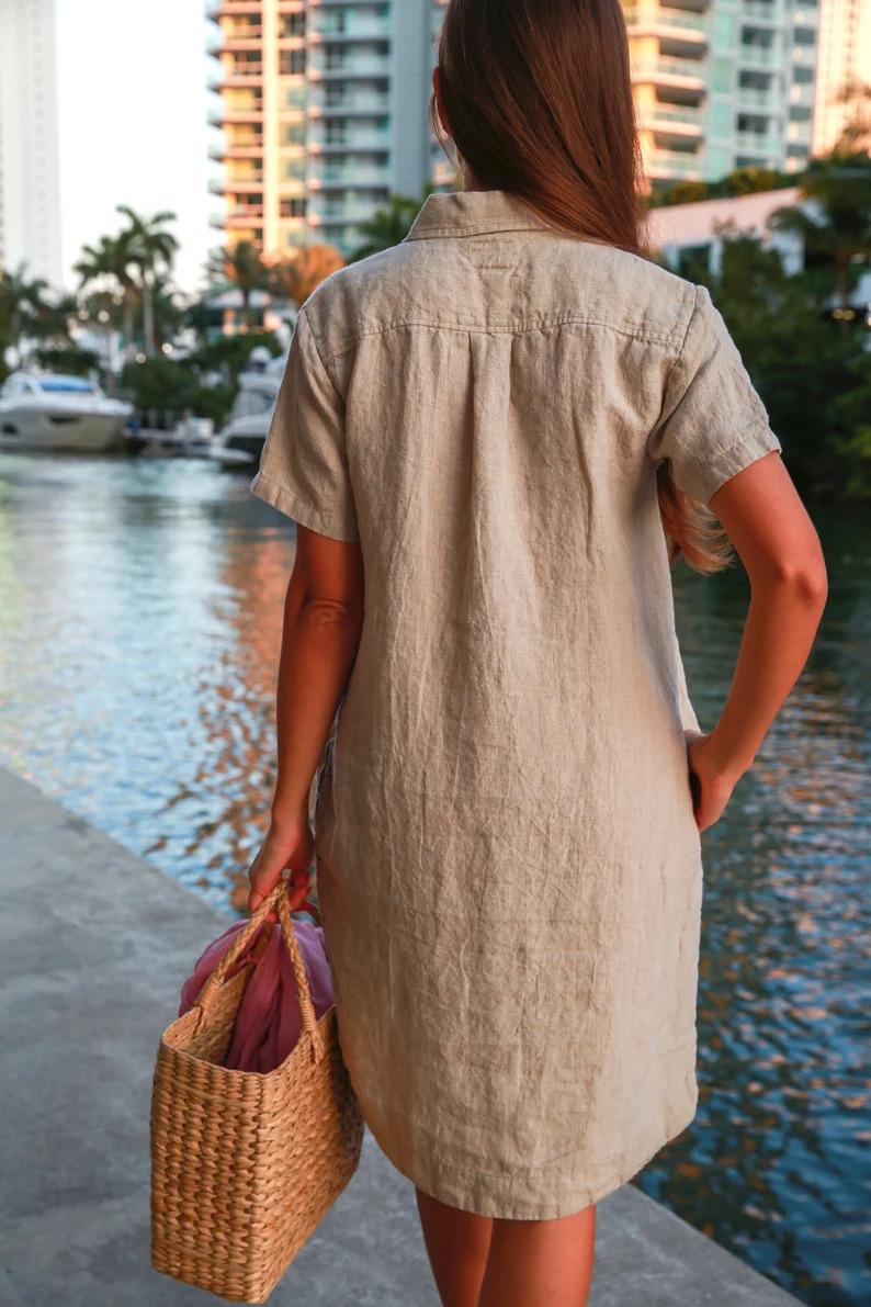 2023 Comercio exterior europeo y americano nuevo vestido camisero de algodón y lino vestido de bolsillo botón falda casual