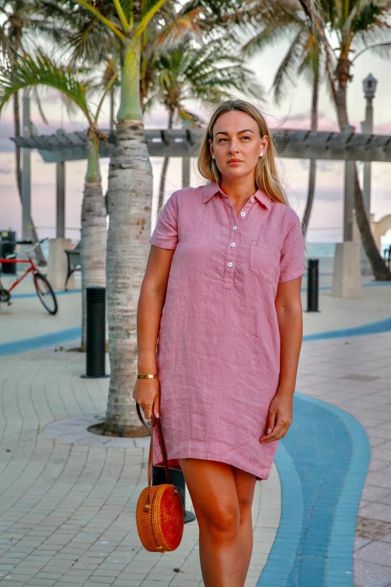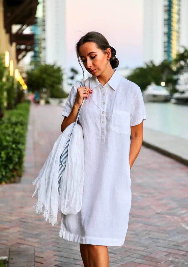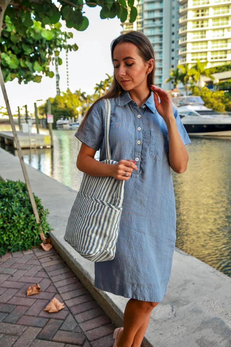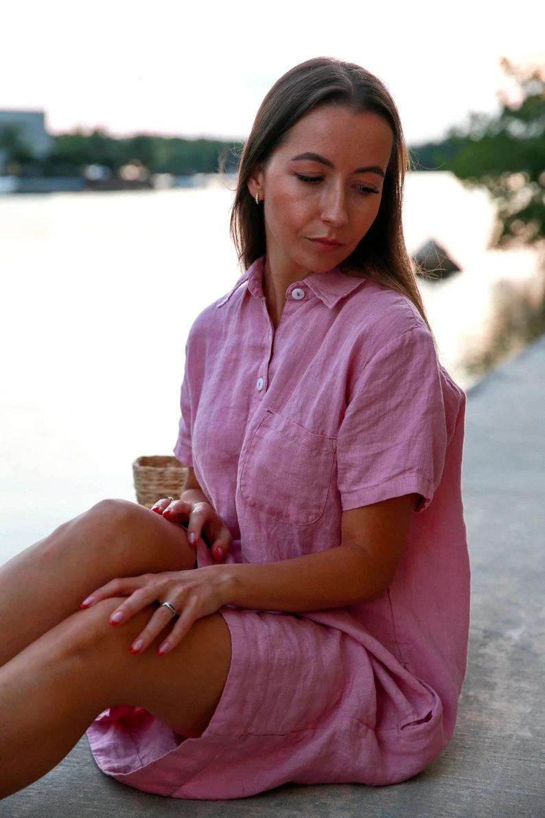2023 Comercio exterior europeo y americano nuevo vestido camisero de algodón y lino vestido de bolsillo botón falda casual
