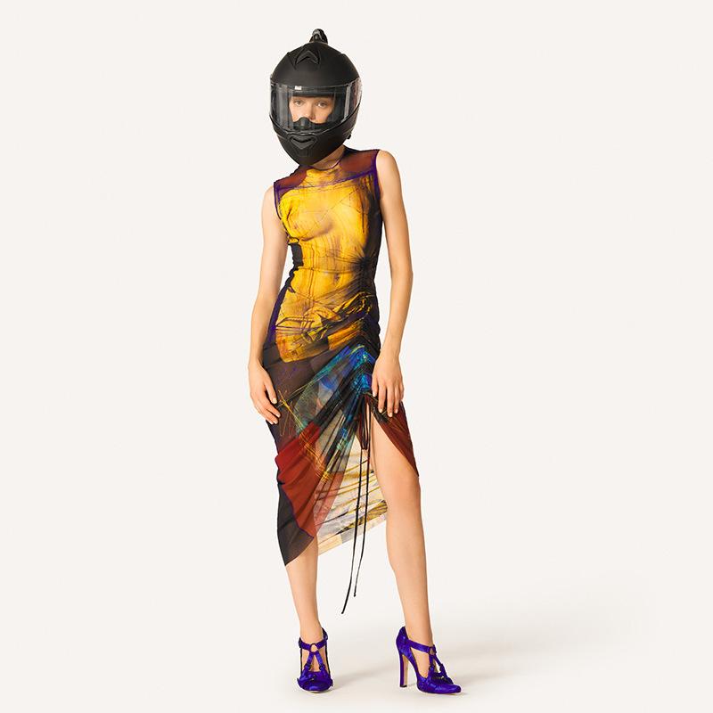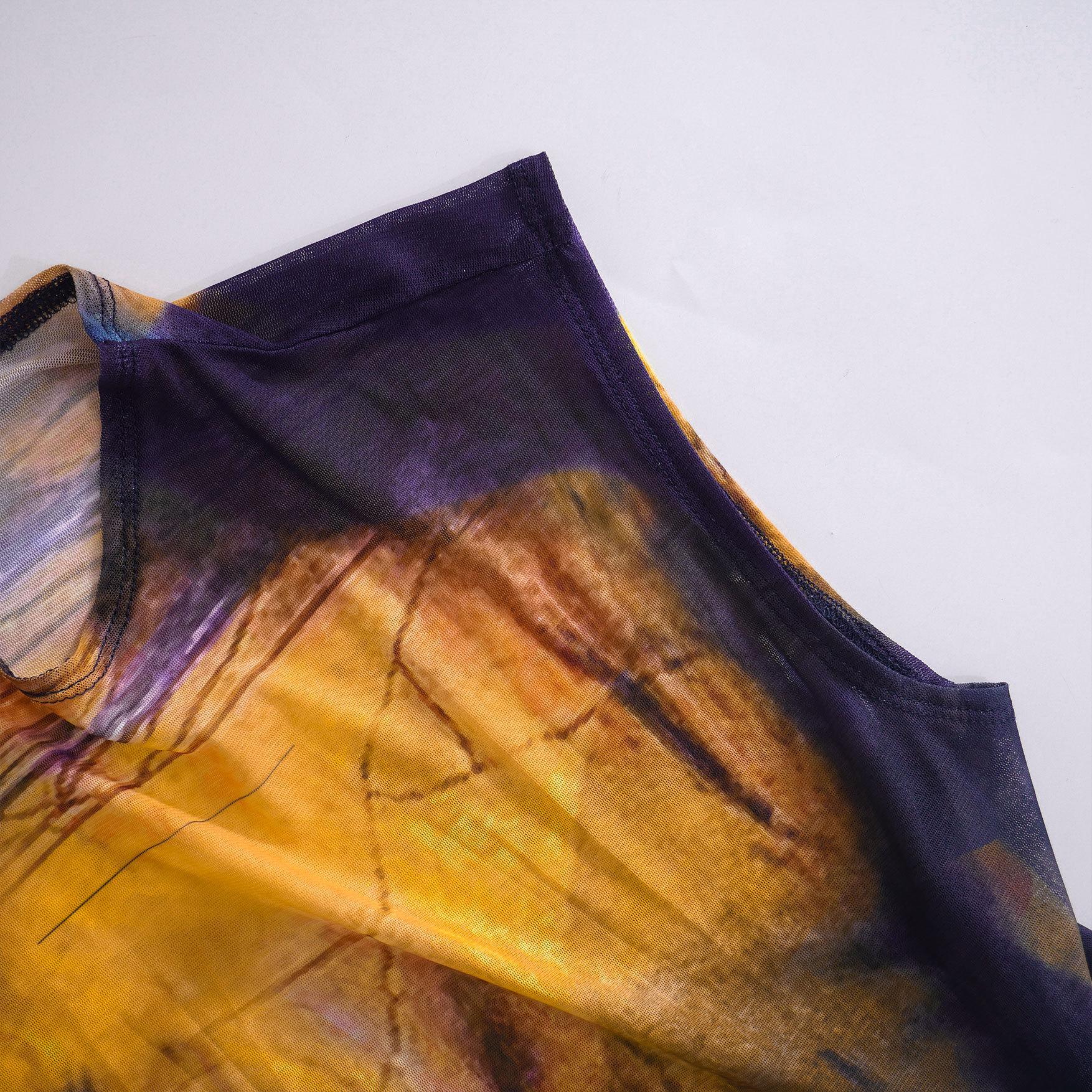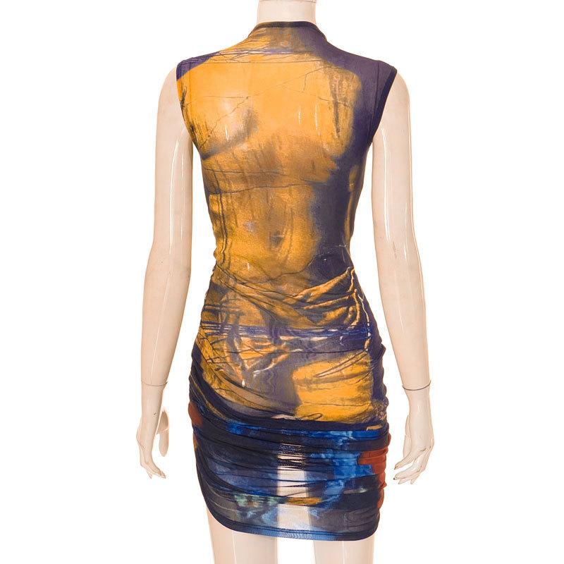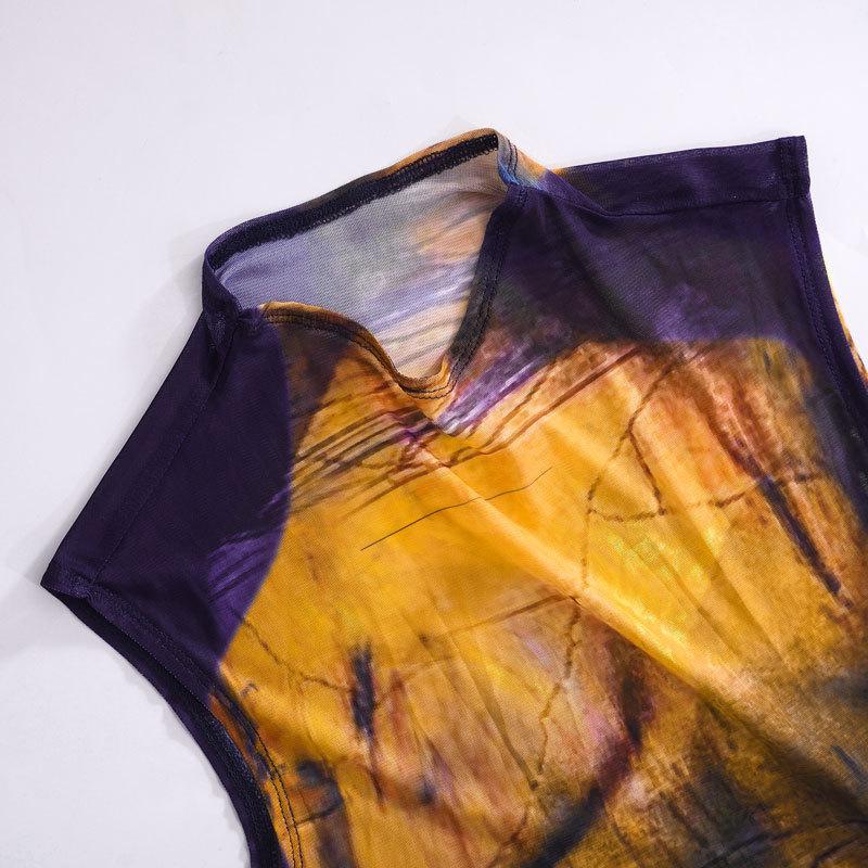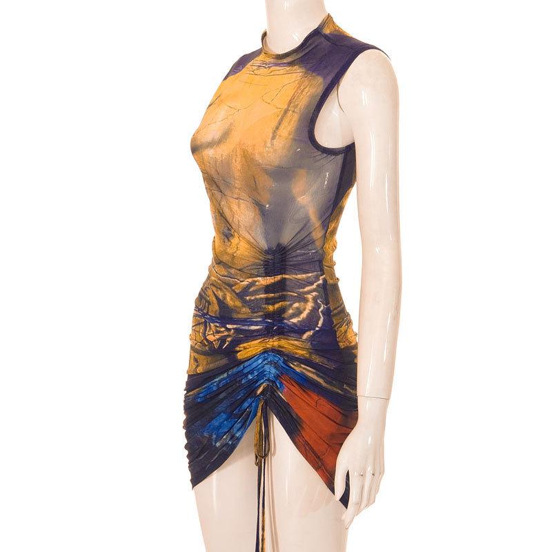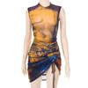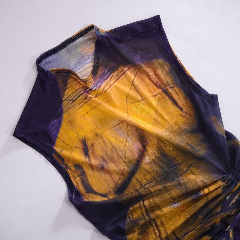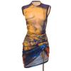 L23DS045 Ropa de mujer europea y americana verano nuevo estampado corporal sexy sin mangas malla plisada corte ajustado vestido corto