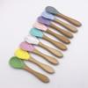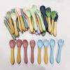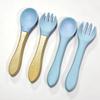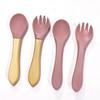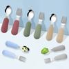 Tenedor y cuchara de silicona con mango de madera para niños, suave y resistente a caídas, para alimentación infantil, complemento alimenticio para bebés, para el hogar