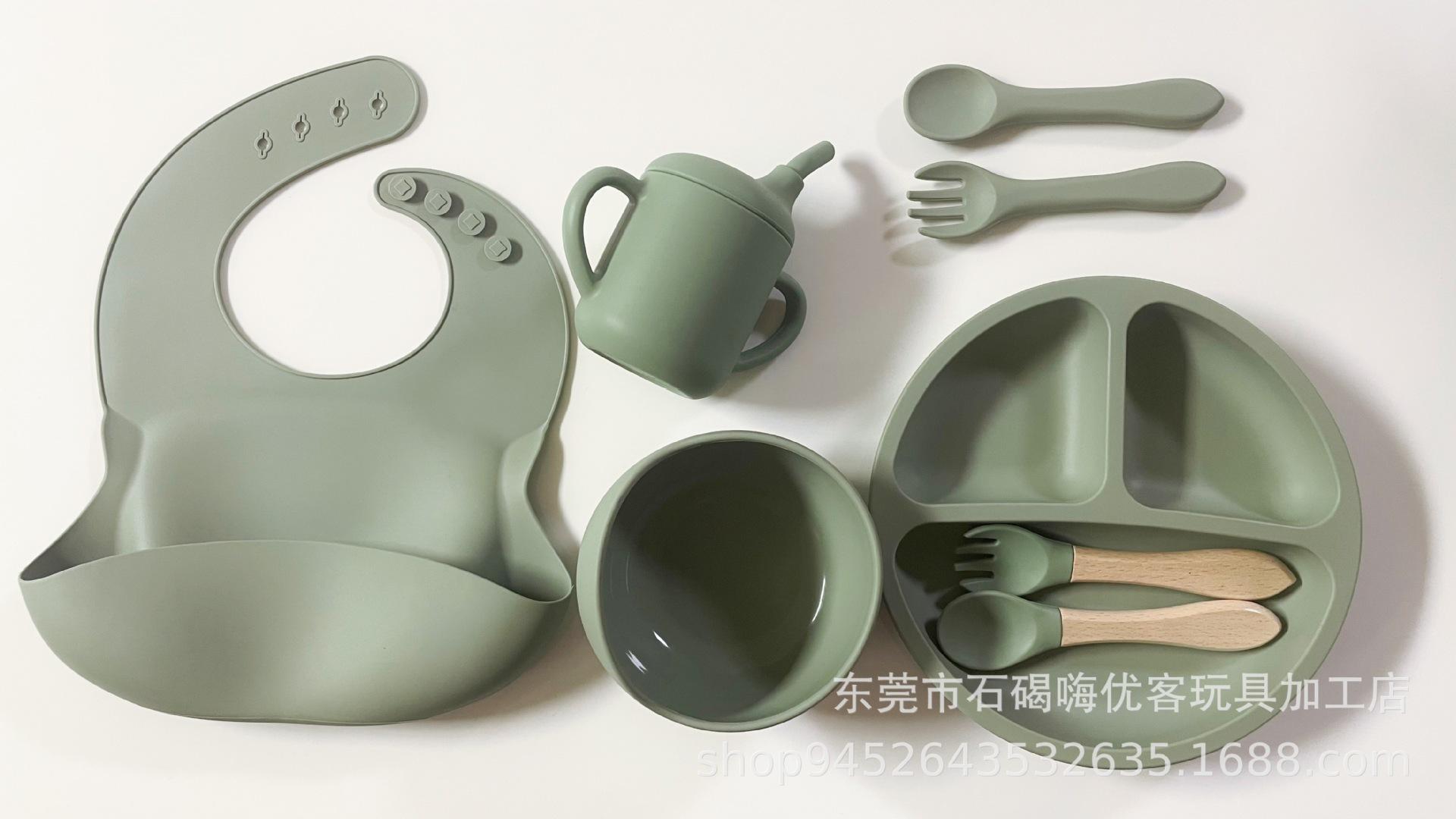 Army Green Rose Red (Cup No. 2 Bib Plate Bowl Wooden Handle Fork Wooden Handle Spoon)