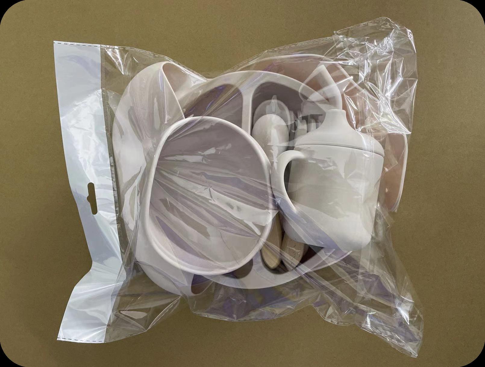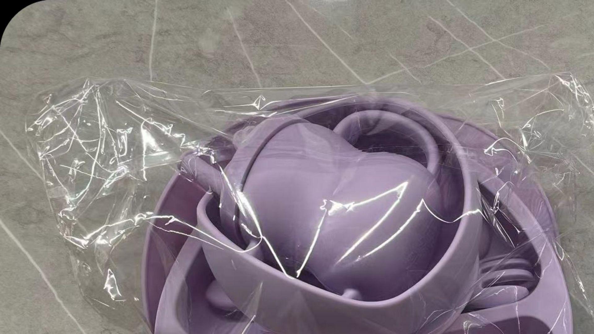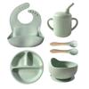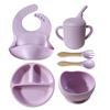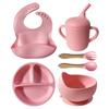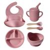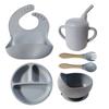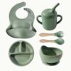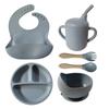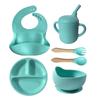 Plato de silicona para la cena, tazón, taza, tenedor, cuchara, vajilla de silicona, vajilla de alimentación para bebés de seis piezas, libre de BPA