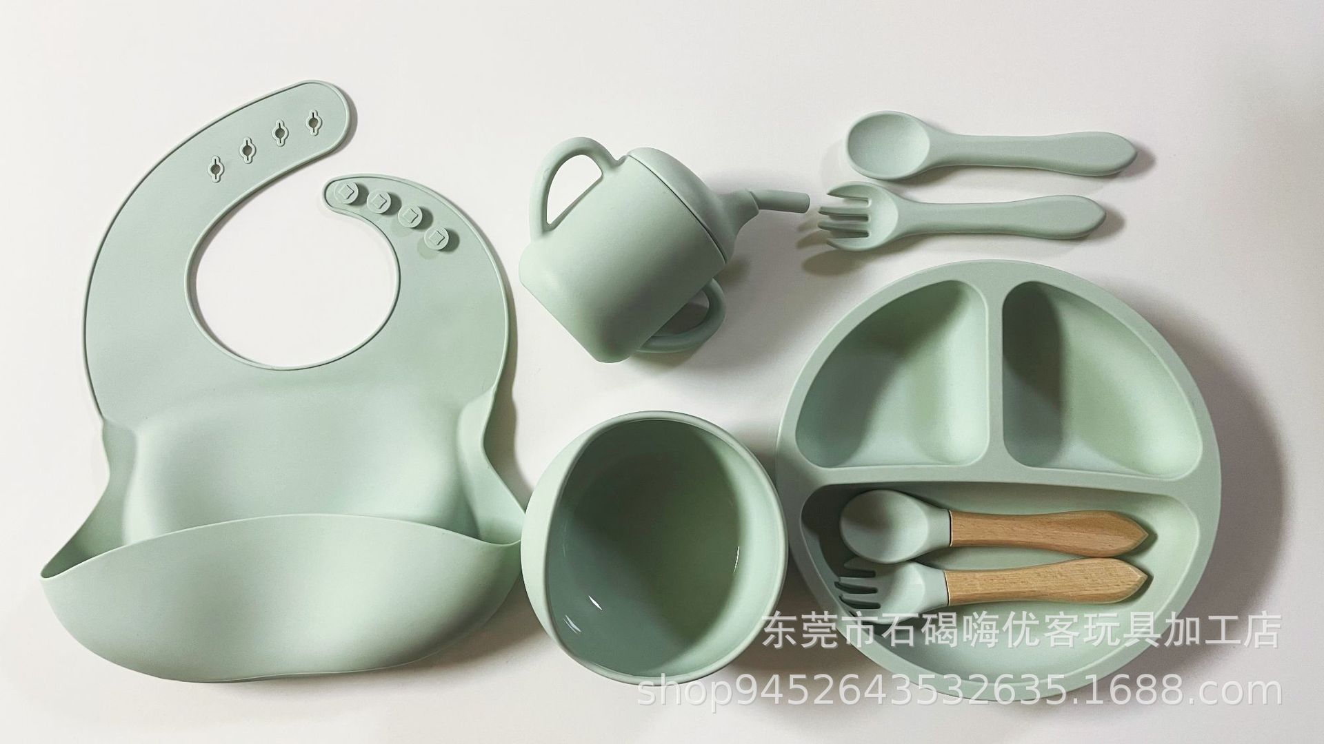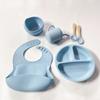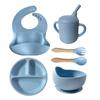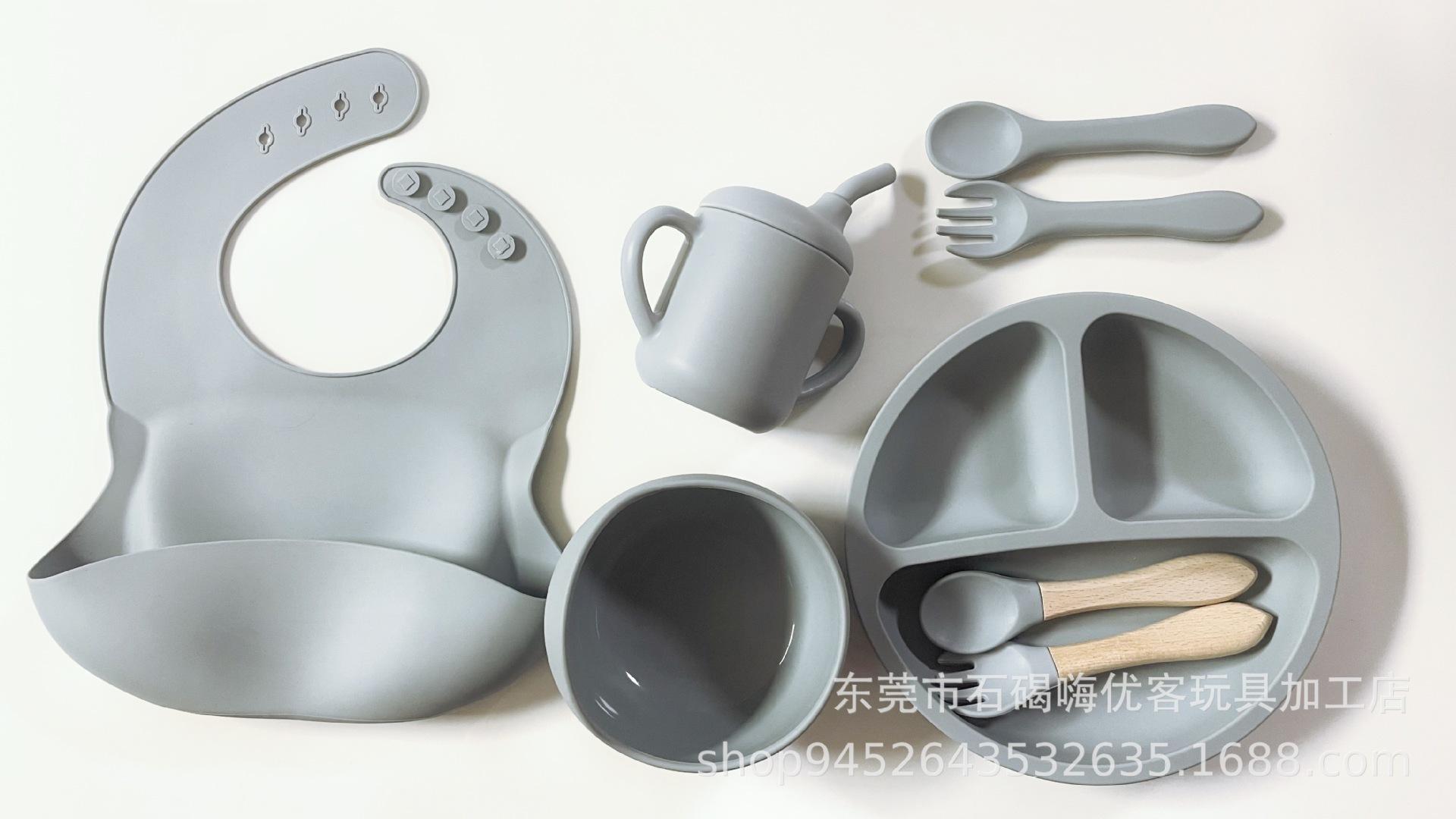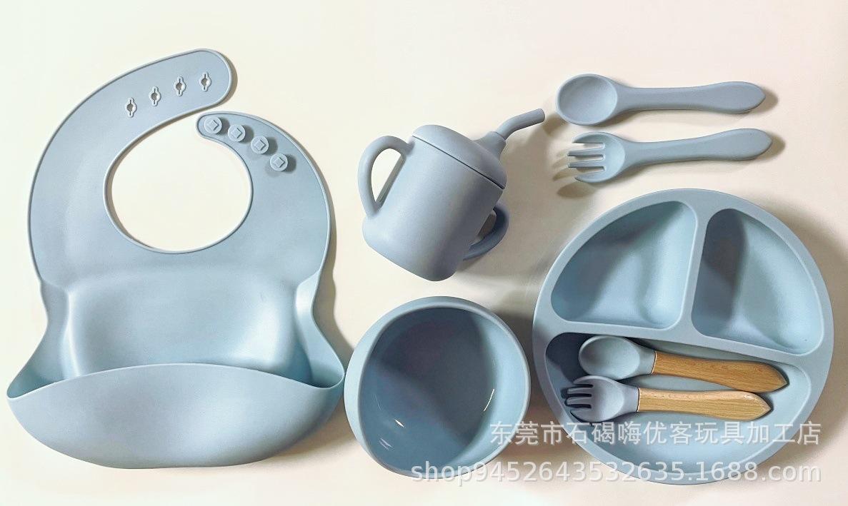 Gray Blue (Cup No. 2 Bib Plate Bowl Wooden Handle Fork Wooden Handle Spoon)