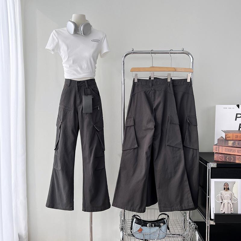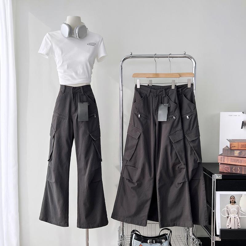 Pantalones Rectos de Cintura Alta Dulces y Cool Estilo Americano para Mujer Nuevo Diseño Sentido 150 Look Delgado Pequeño Estilo Spice Girl Pantalones Casuales