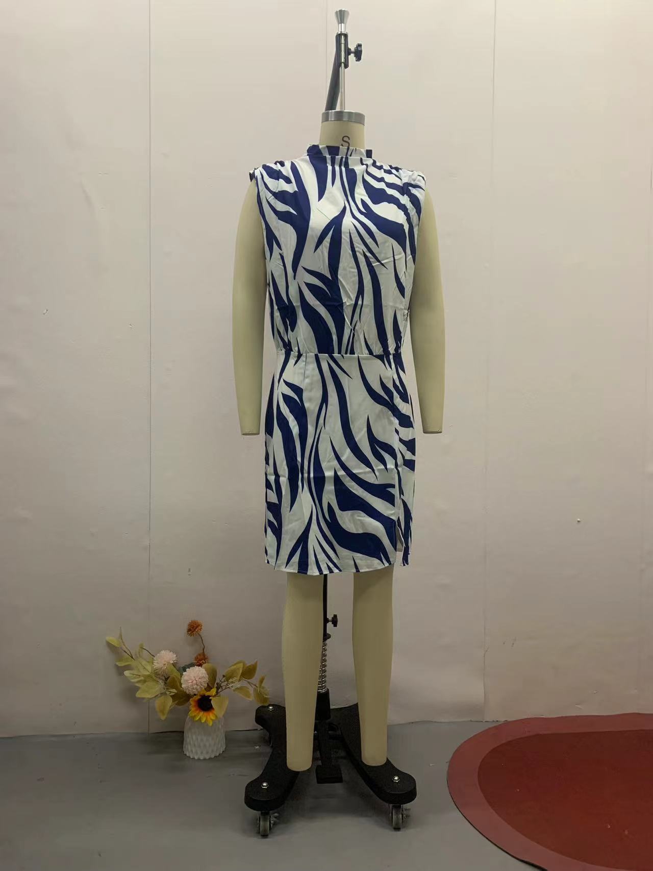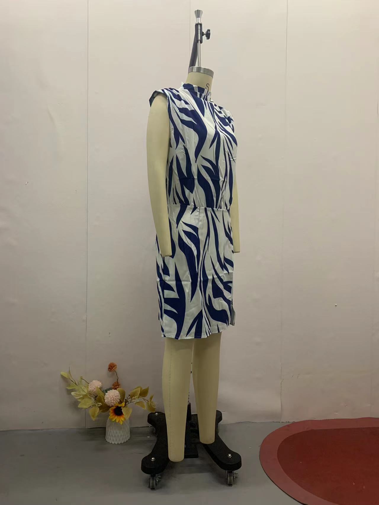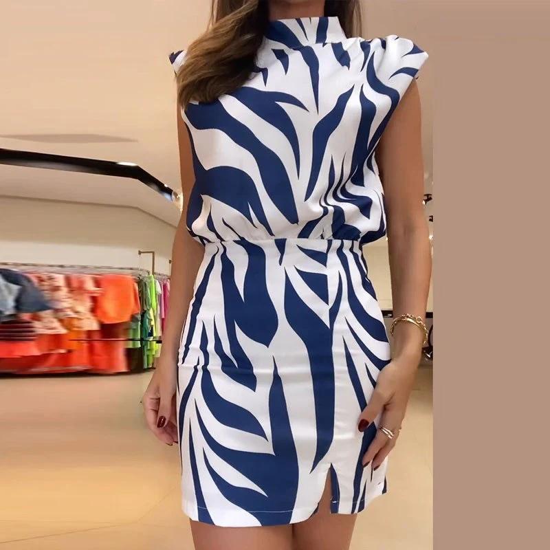Vestido tubo estampado con cuello redondo, sexy, estilo europeo y americano, ajustado, sin mangas, novedad de 2023.