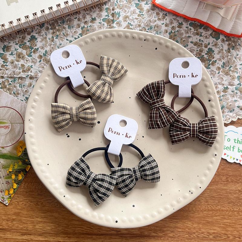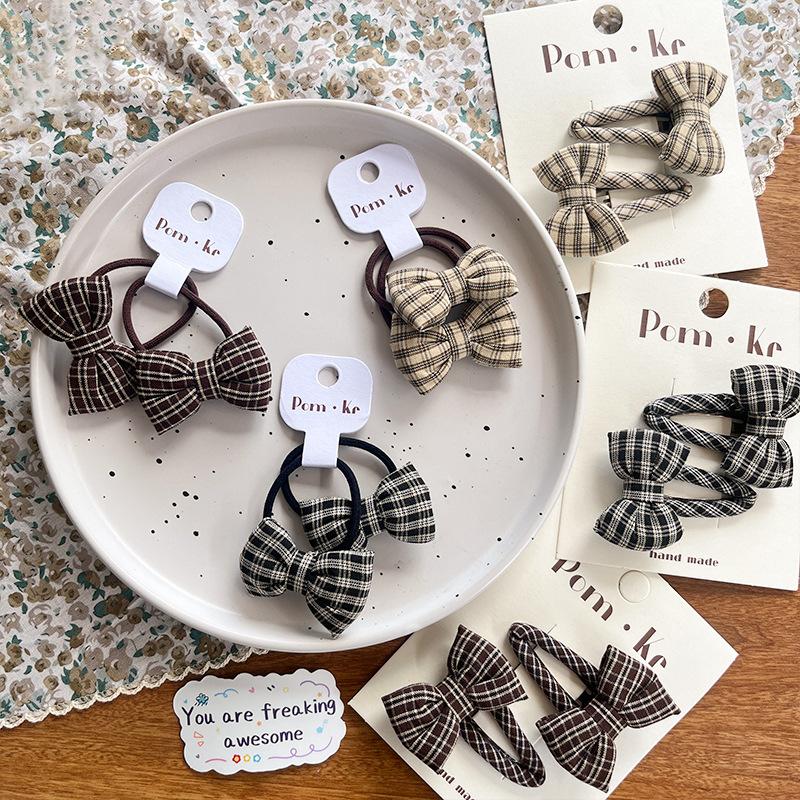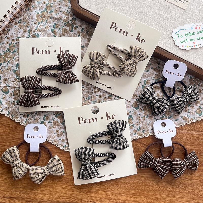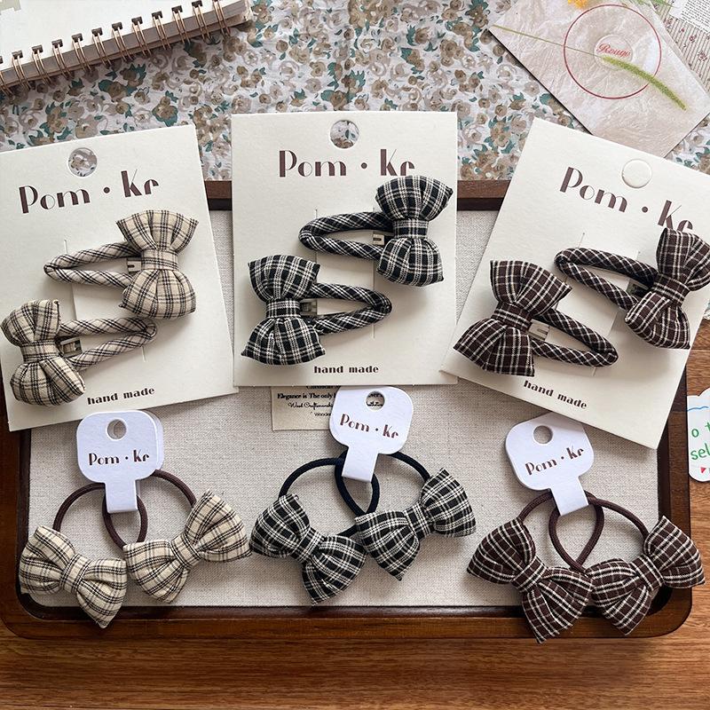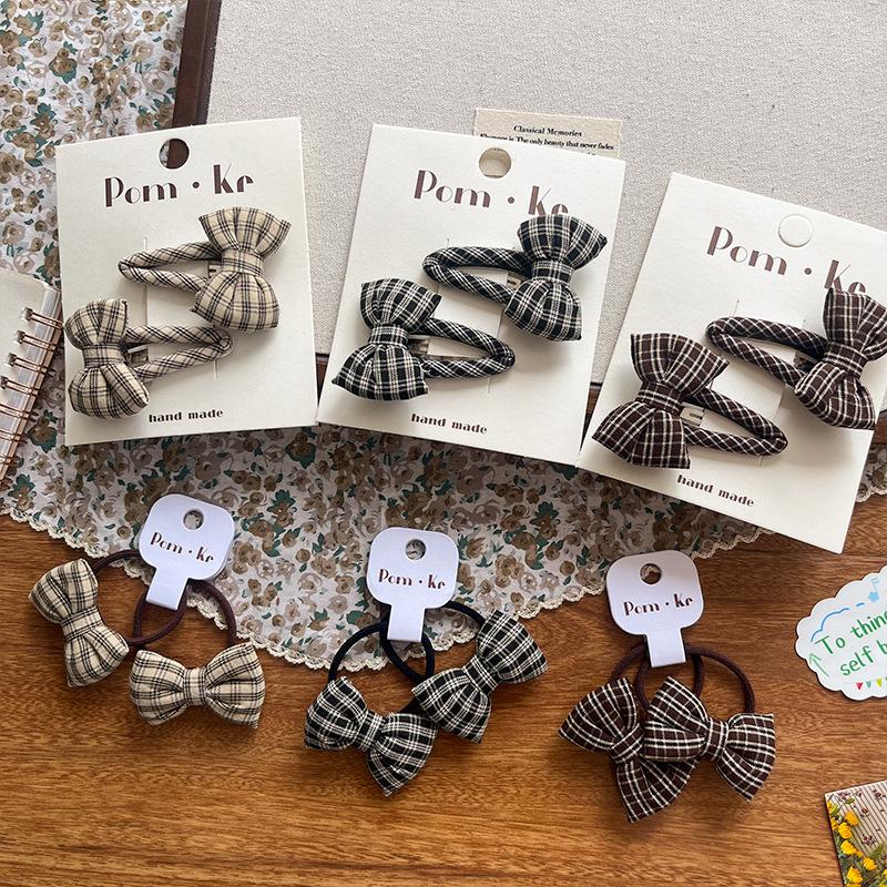 【1】Apricot plaid hair tie, 【2】Coffee plaid hair tie, 【3】Black plaid hair tie, 【4】Apricot plaid hairpin, 【5】Bro...