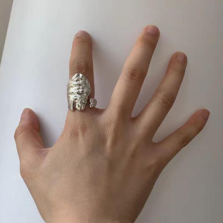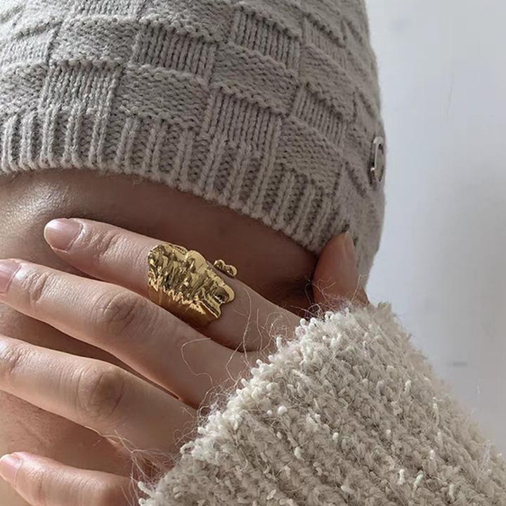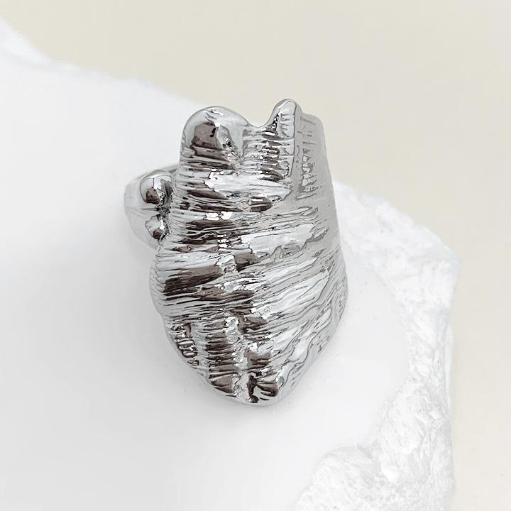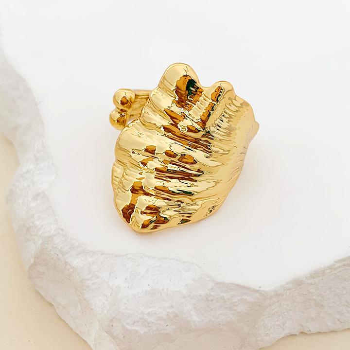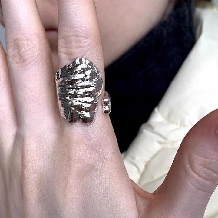 Anillo cóncavo-convexo irregular estilo Ins de estilo coreano para mujer, retro, elegante, de ala ancha, plisado, simple, abierto.